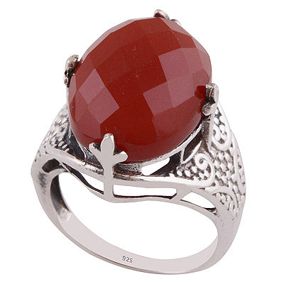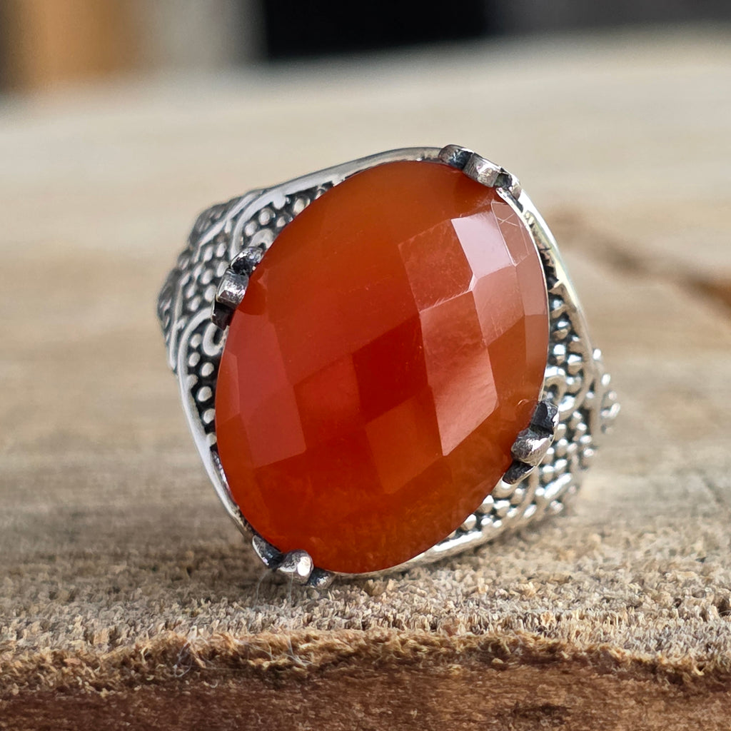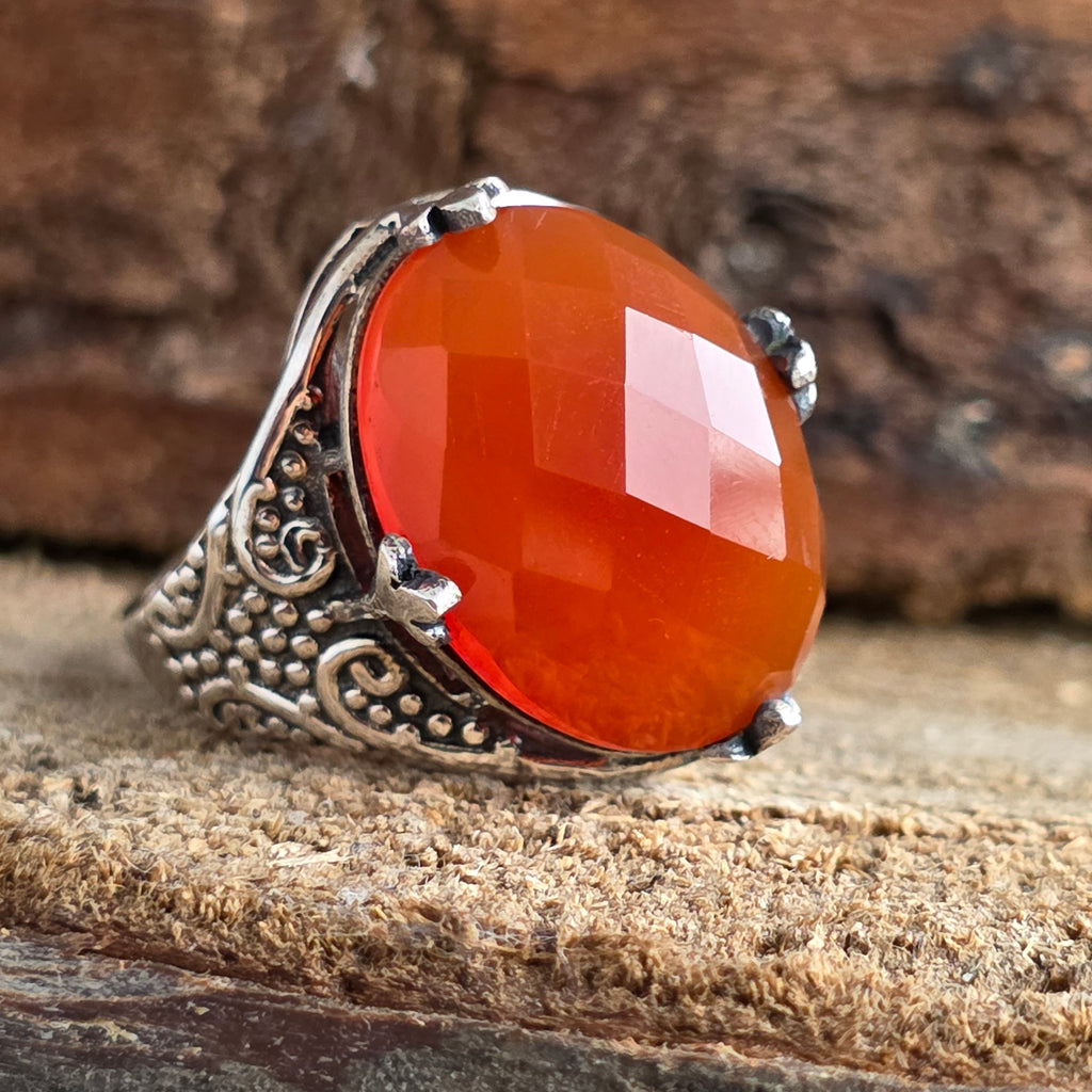 Reflexele roșu-aprins ale pietrei emană pasiune și forță interioară, fiind un simbol al determinării și al încrederii în sine.