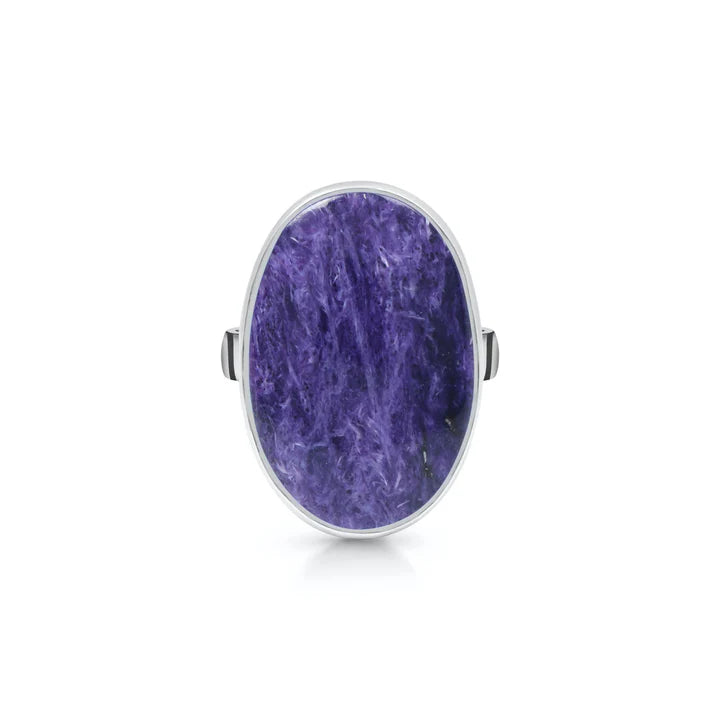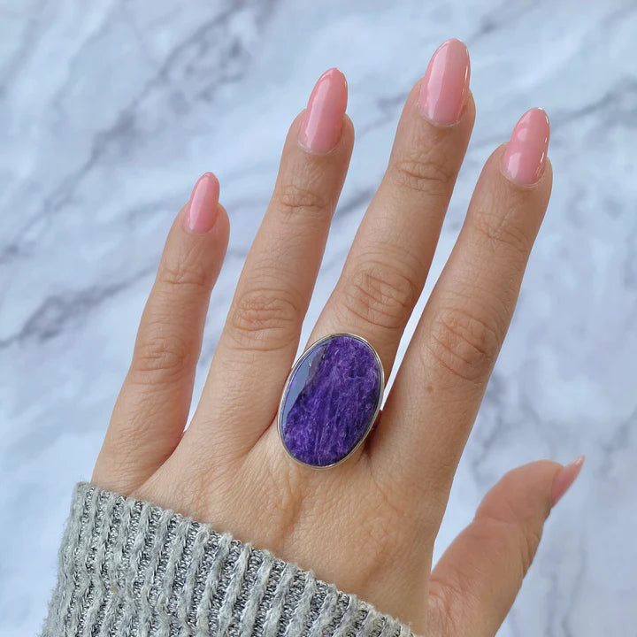 Alege acest inel din argint cu charoit natural, o piesă cu un aspect inconfundabil, remarcată prin nuanțele sale vibrante de mov și texturile unice. Montat în argint 925, acest inel evidențiază frumusețea naturală a pietrei și adaugă o notă sofisticată oricărei ținute.
