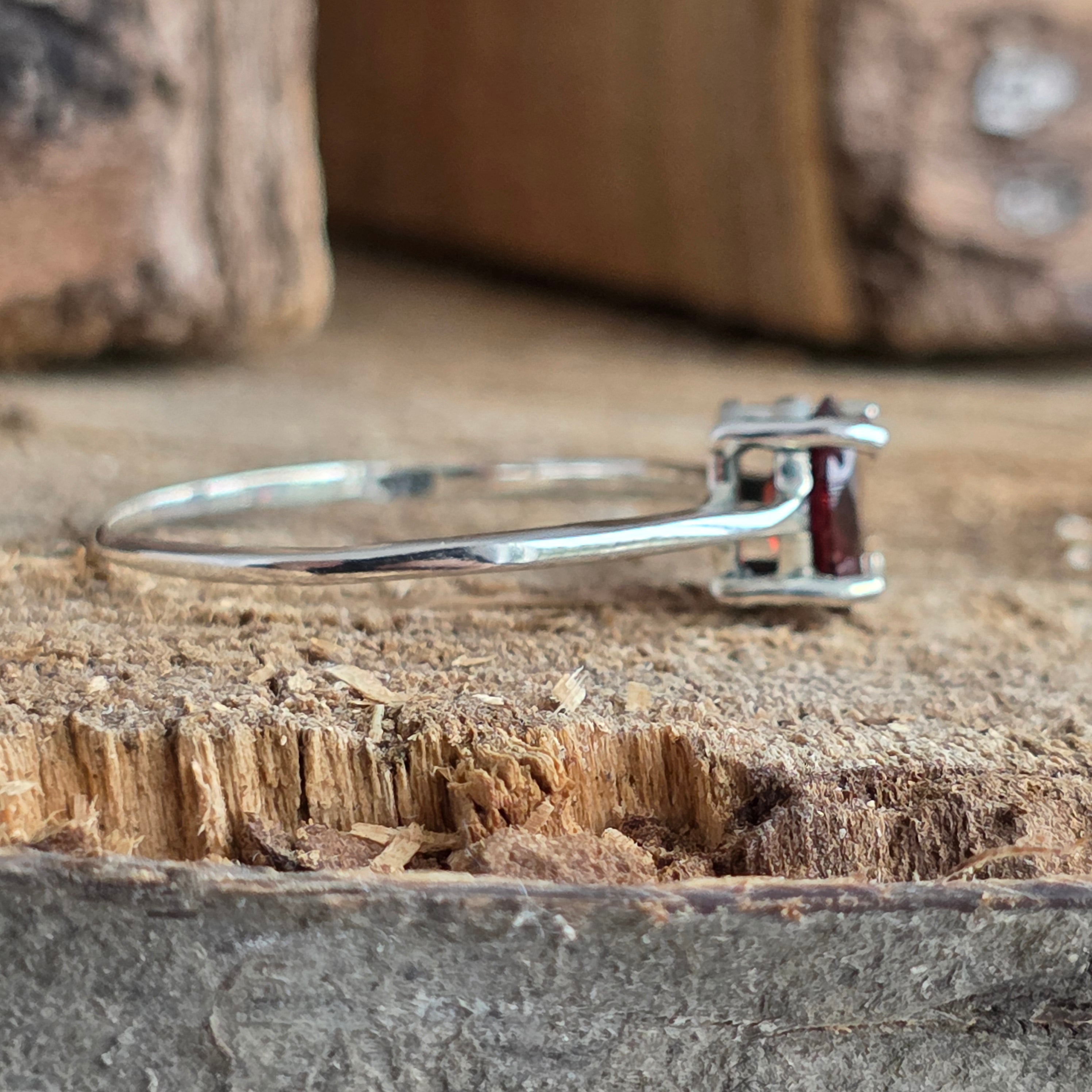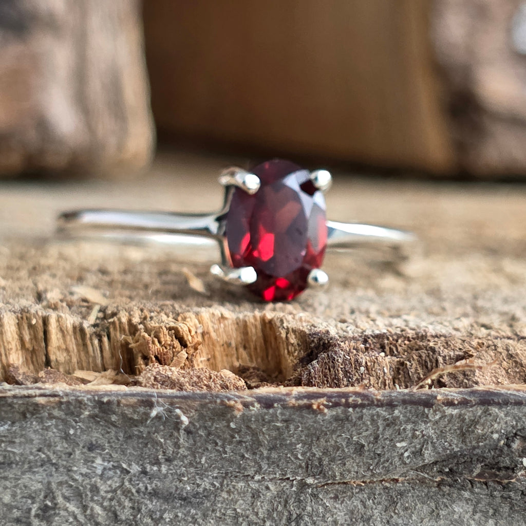 Cu o strălucire rubinie și o energie caldă, acest inel din argint 925 scoate în evidență intensitatea granatului natural, piatra pasiunii și a vitalității.