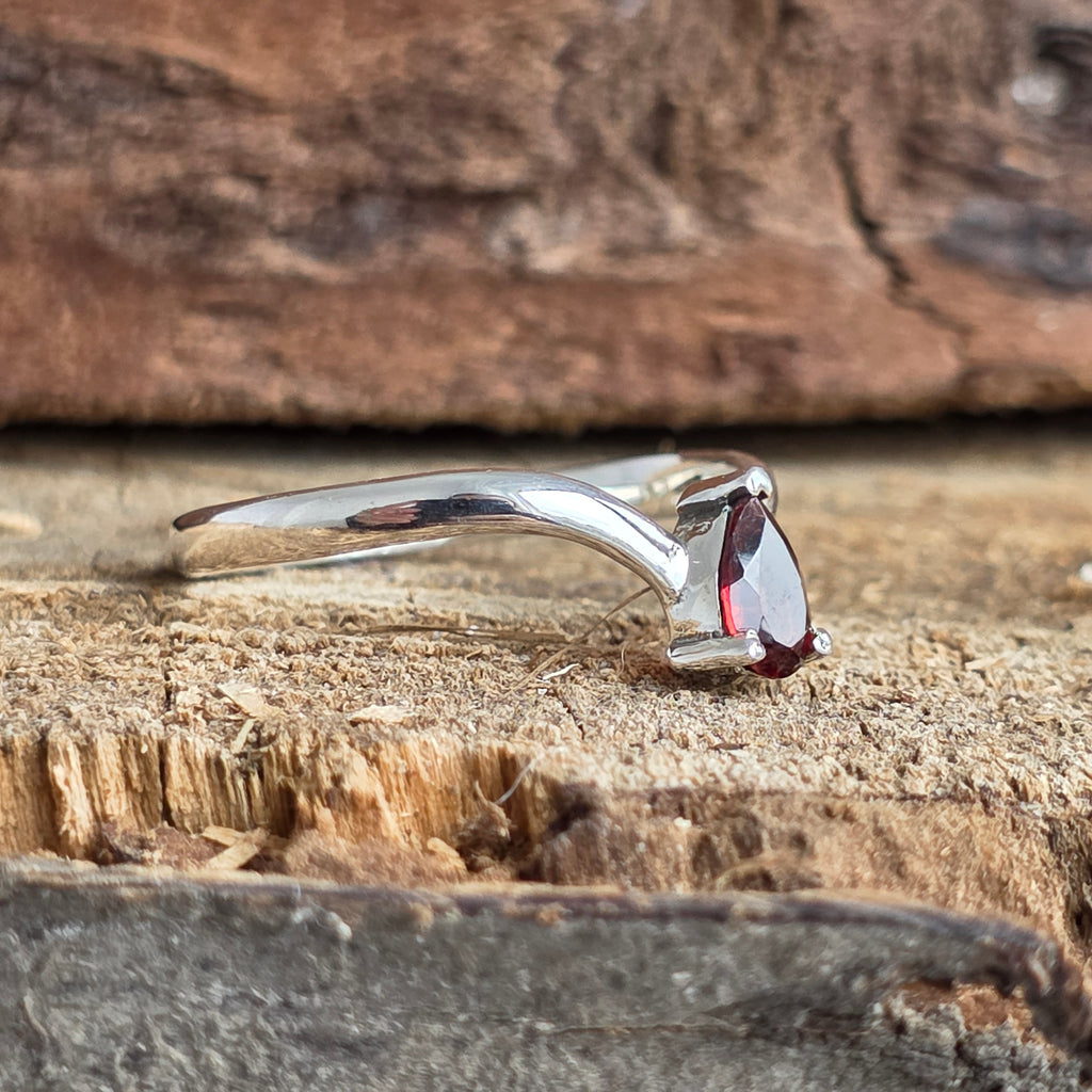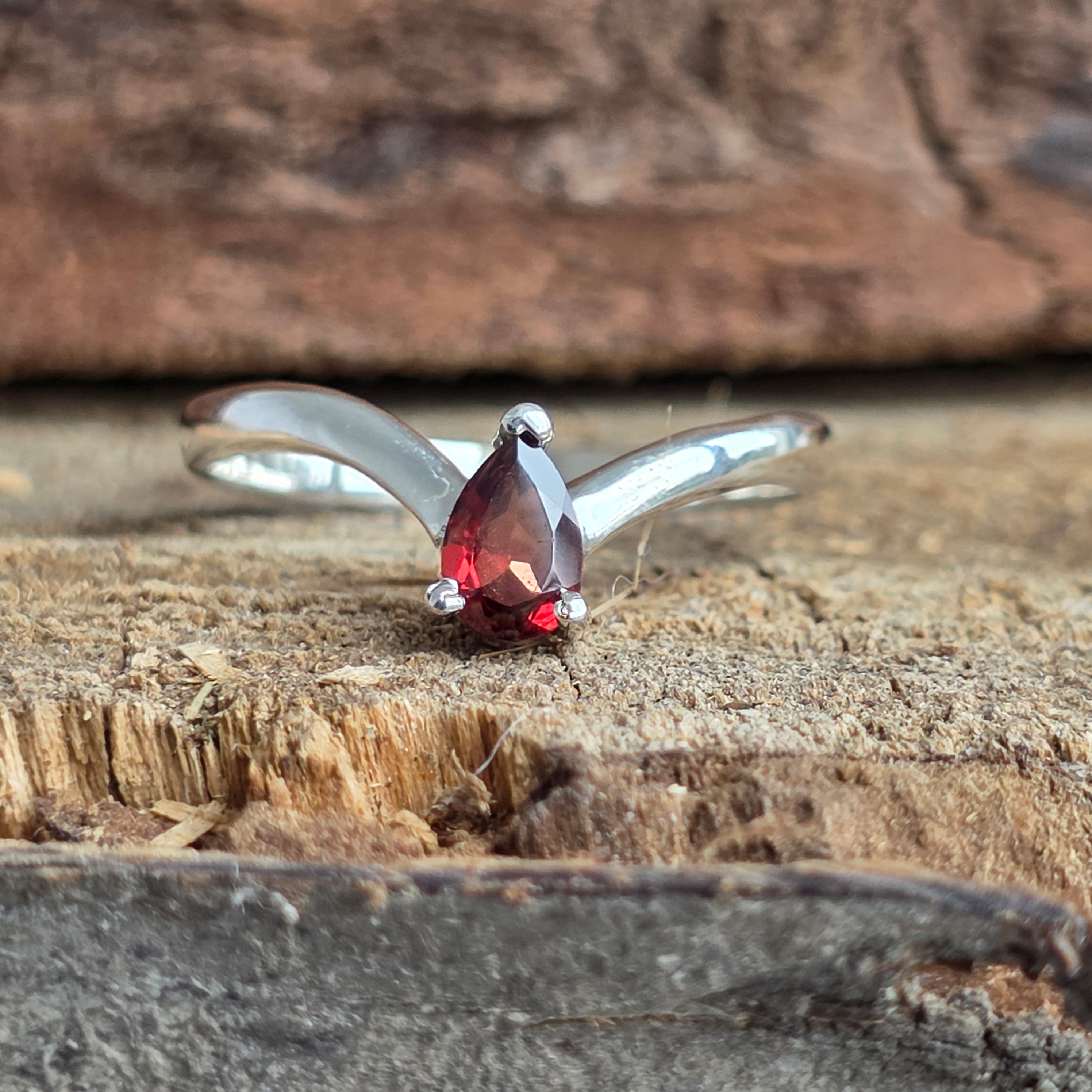 Forma elegantă de pară oferă o notă de rafinament și echilibru, în timp ce reflexele rubinii ale pietrei adaugă o strălucire caldă, perfectă pentru orice moment.