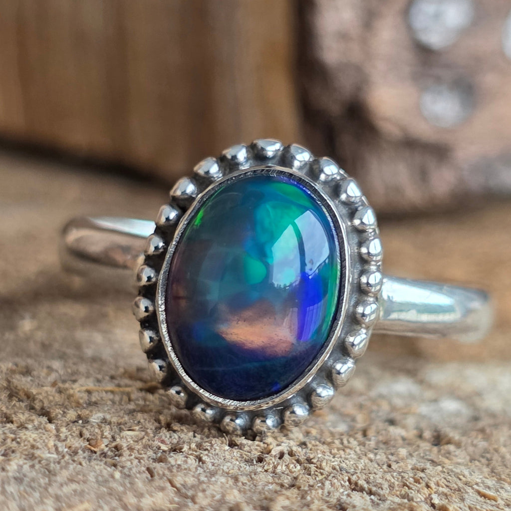 • Piatra: opal etiopian natural, tăietură ovală (oval shape) -model unicat. veti primi exact produsul prezentat în imagini.