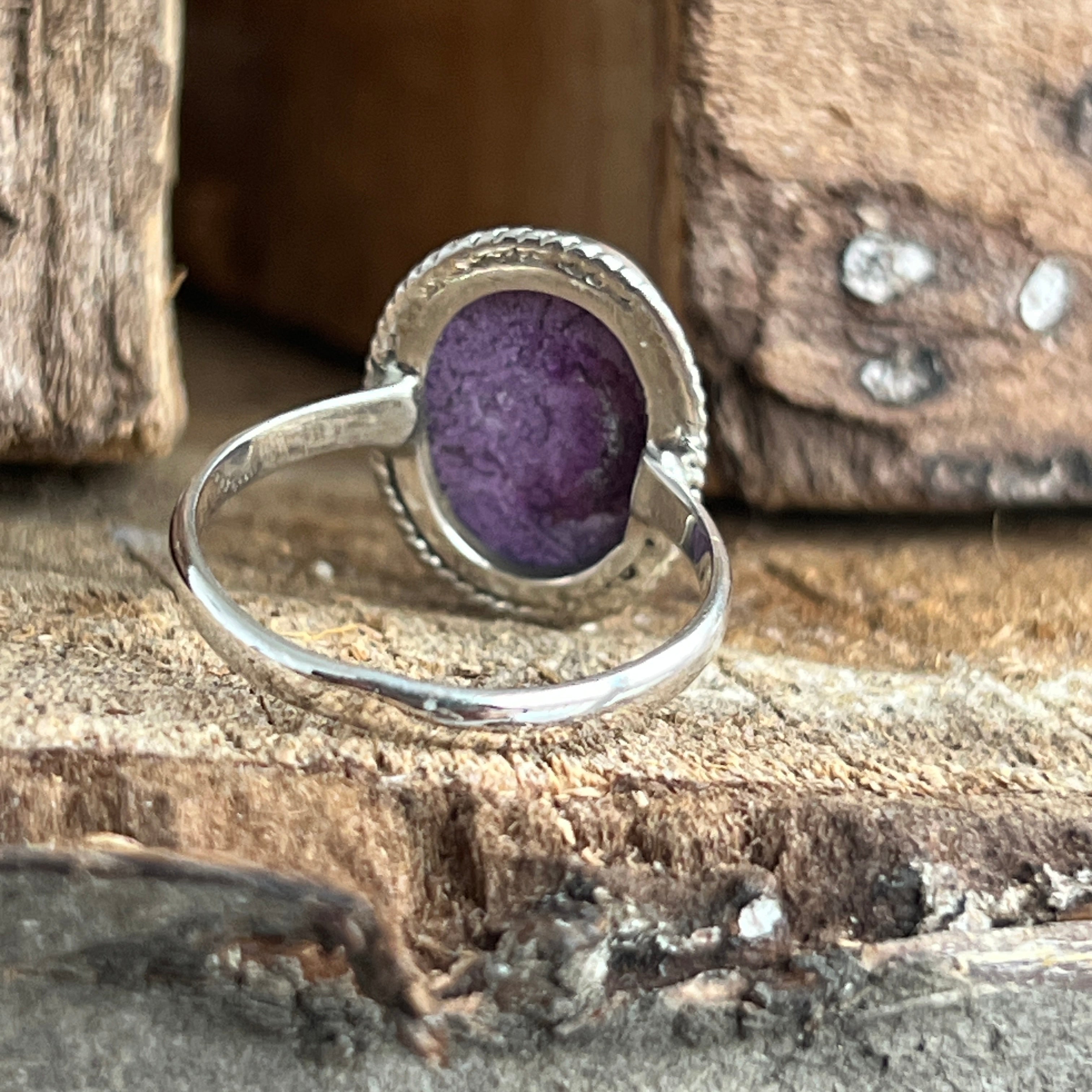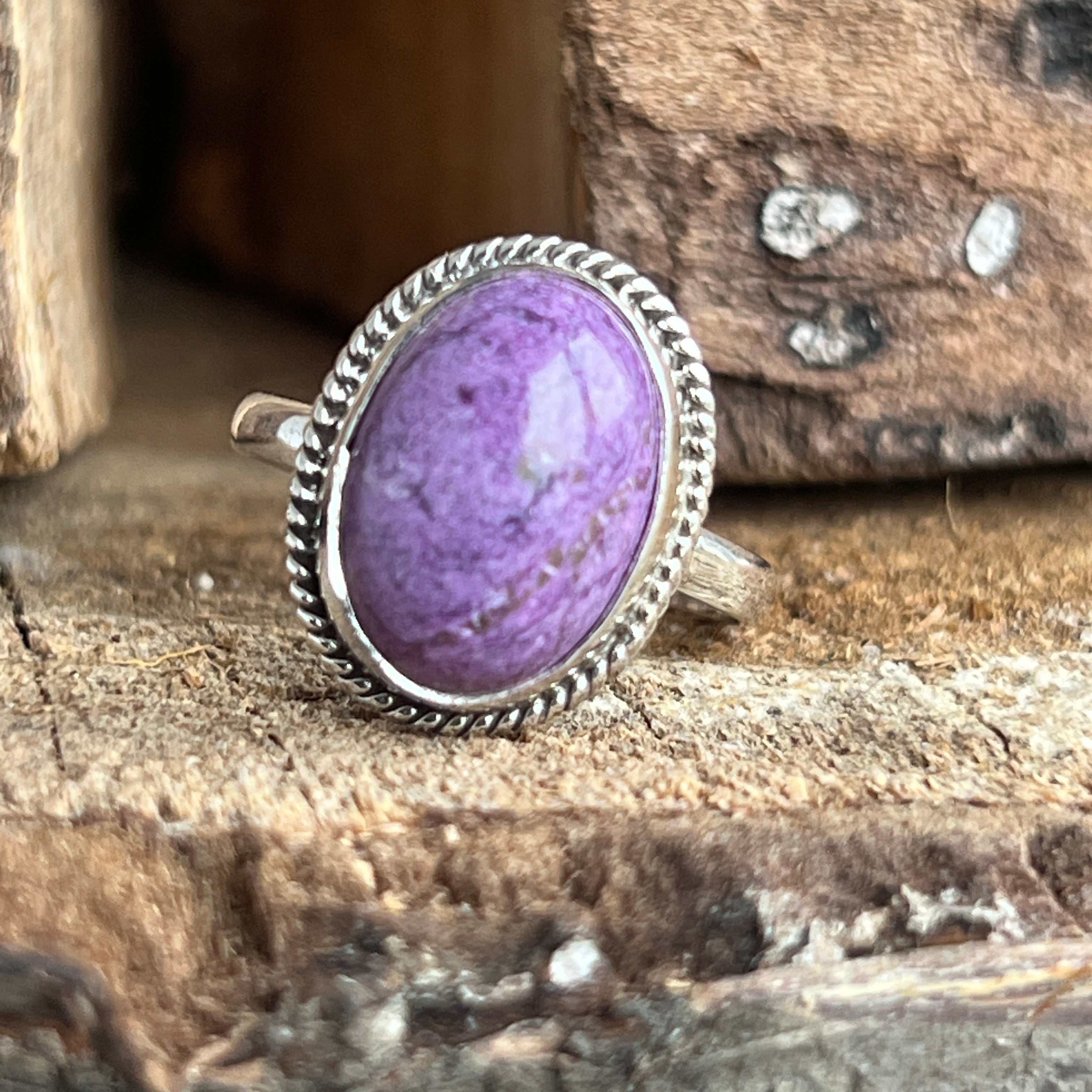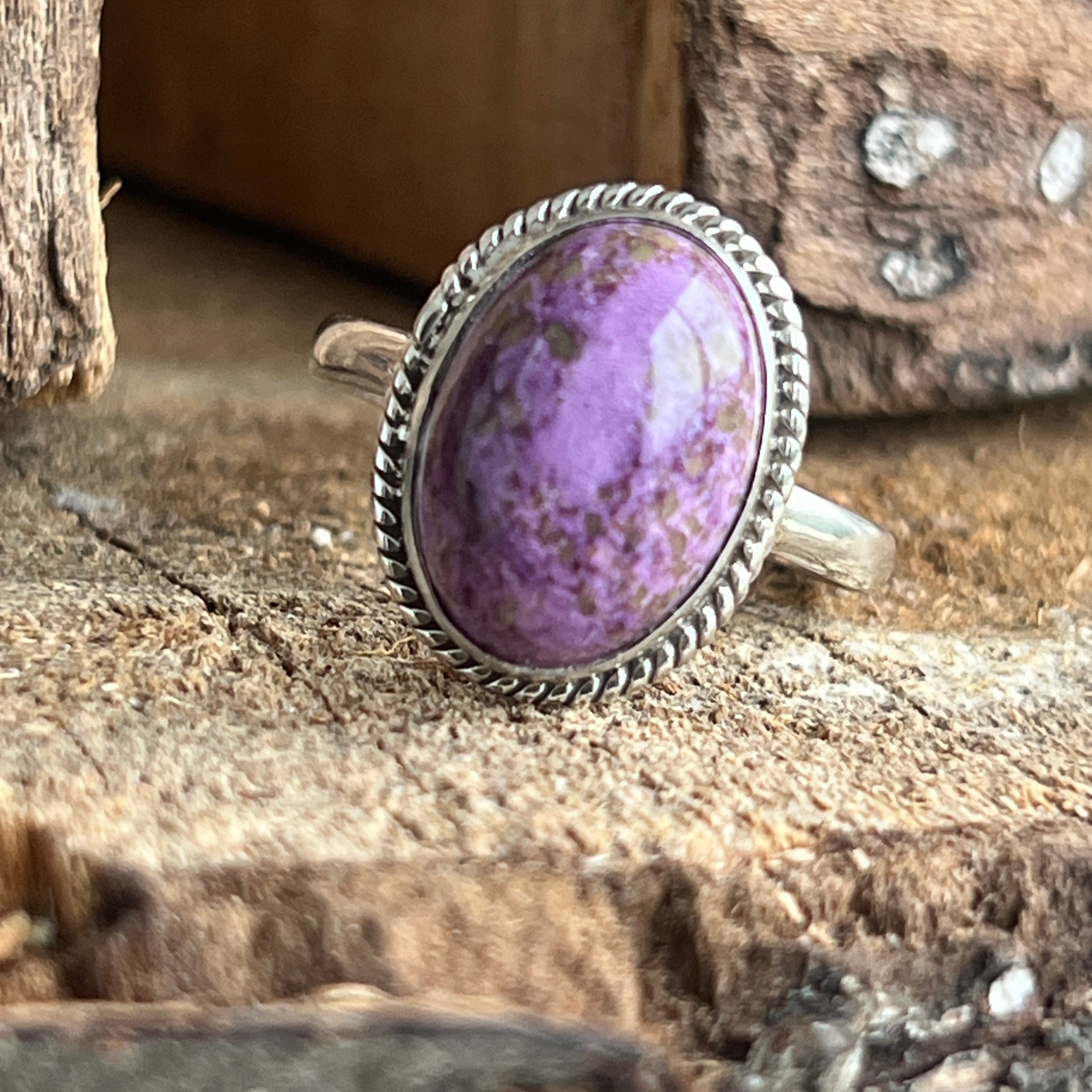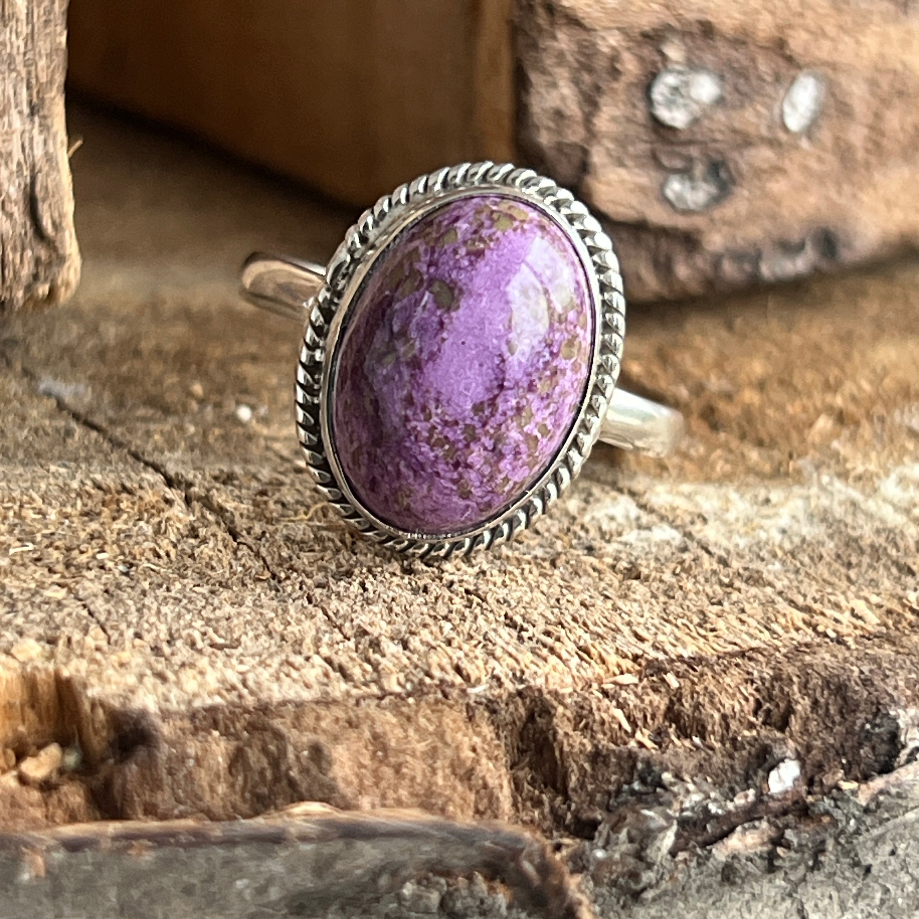 Un inel rafinat din argint 925, cu o piatră naturală de Purpurit, în nuanțe vibrante de violet cu incluziuni pământii ce subliniază originea sa naturală. Modelul twisted wire conferă bijuteriei o eleganță atemporală, potrivită atât pentru purtare zilnică, cât și pentru ocazii speciale.
