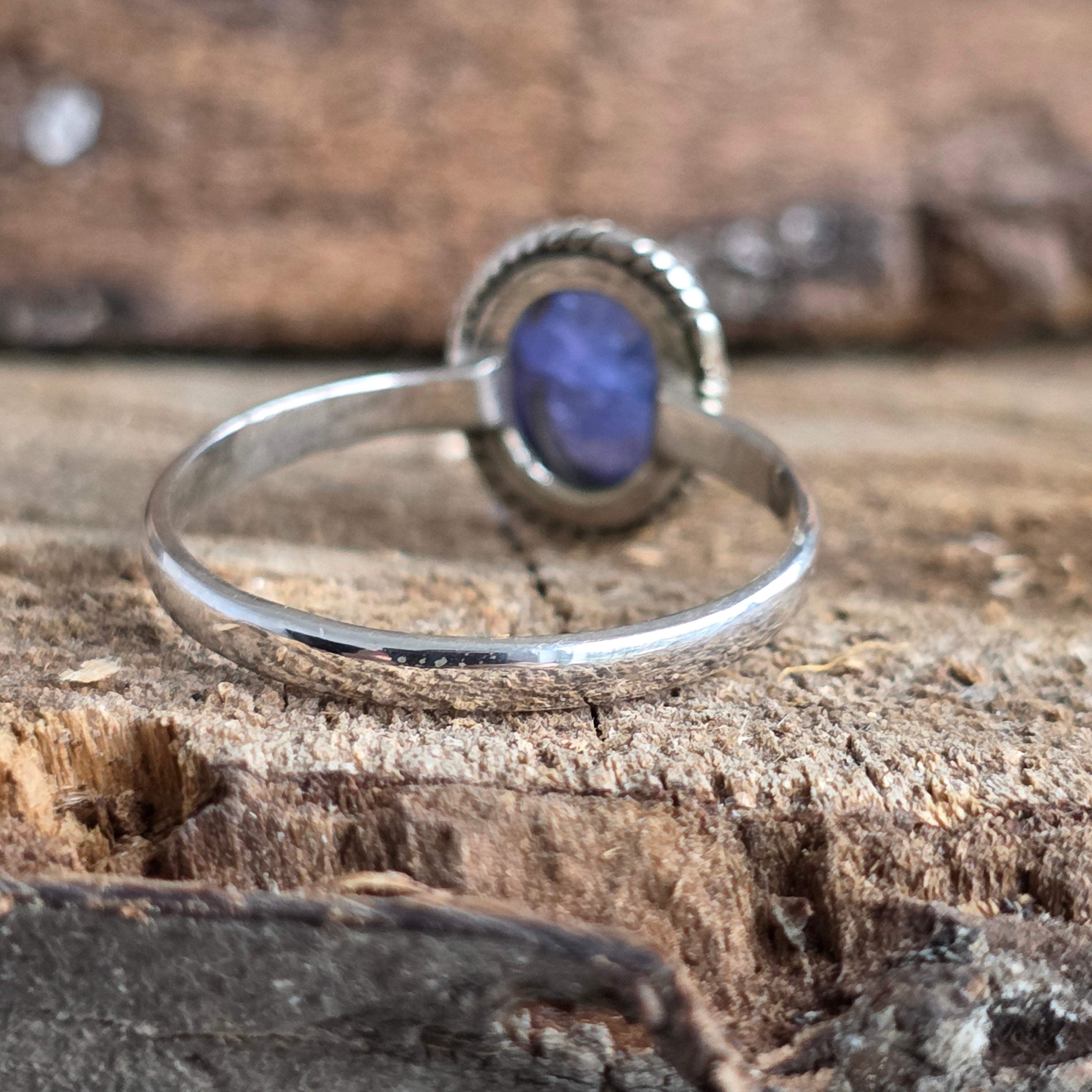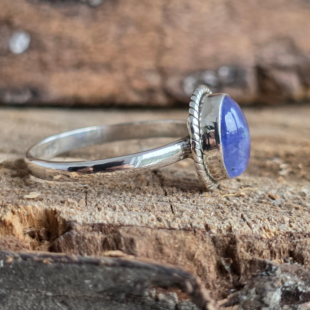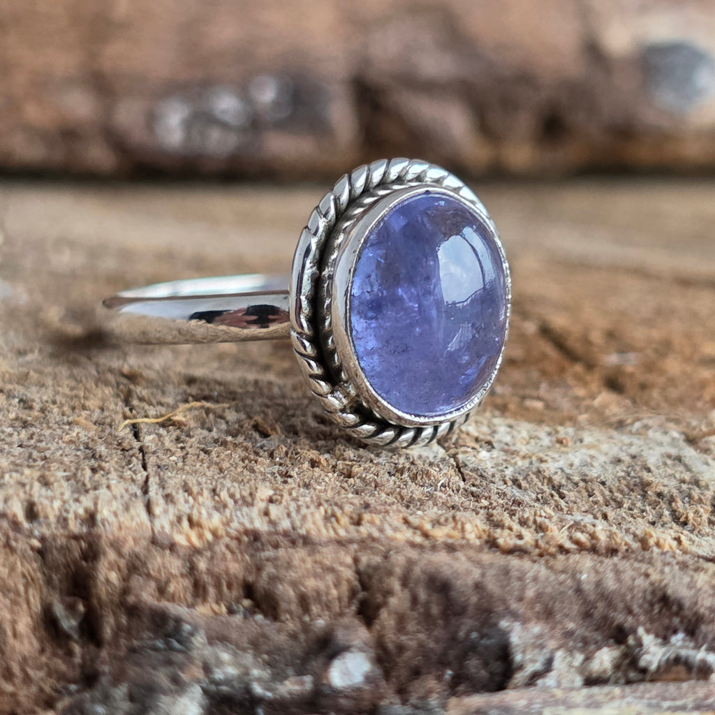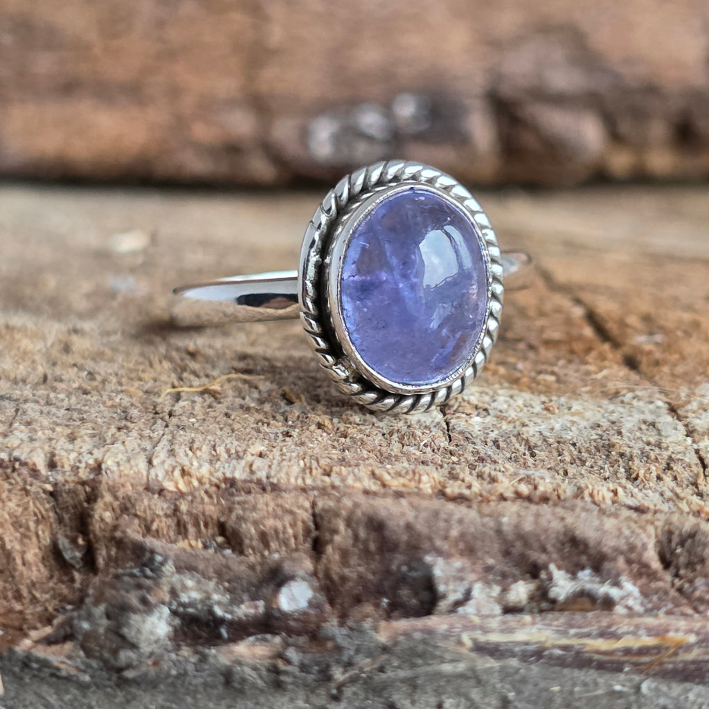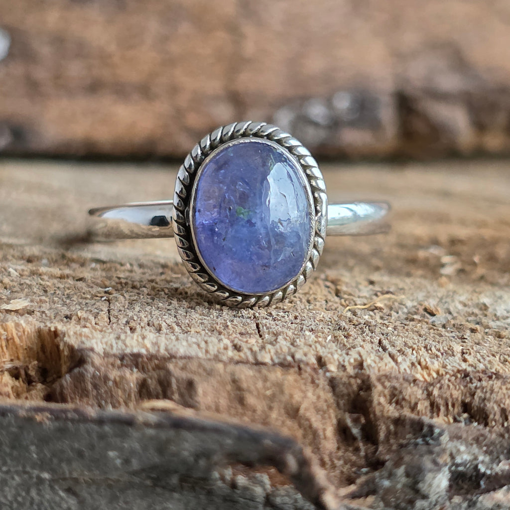 Un inel rafinat din argint 925, cu tanzanit natural, într-o montură artizanală twisted wire work care subliniază nuanțele delicate de albastru-violet ale pietrei. Tanzanitul este considerat o piatră a transformării și clarității, purtată pentru inspirație și echilibru interior.