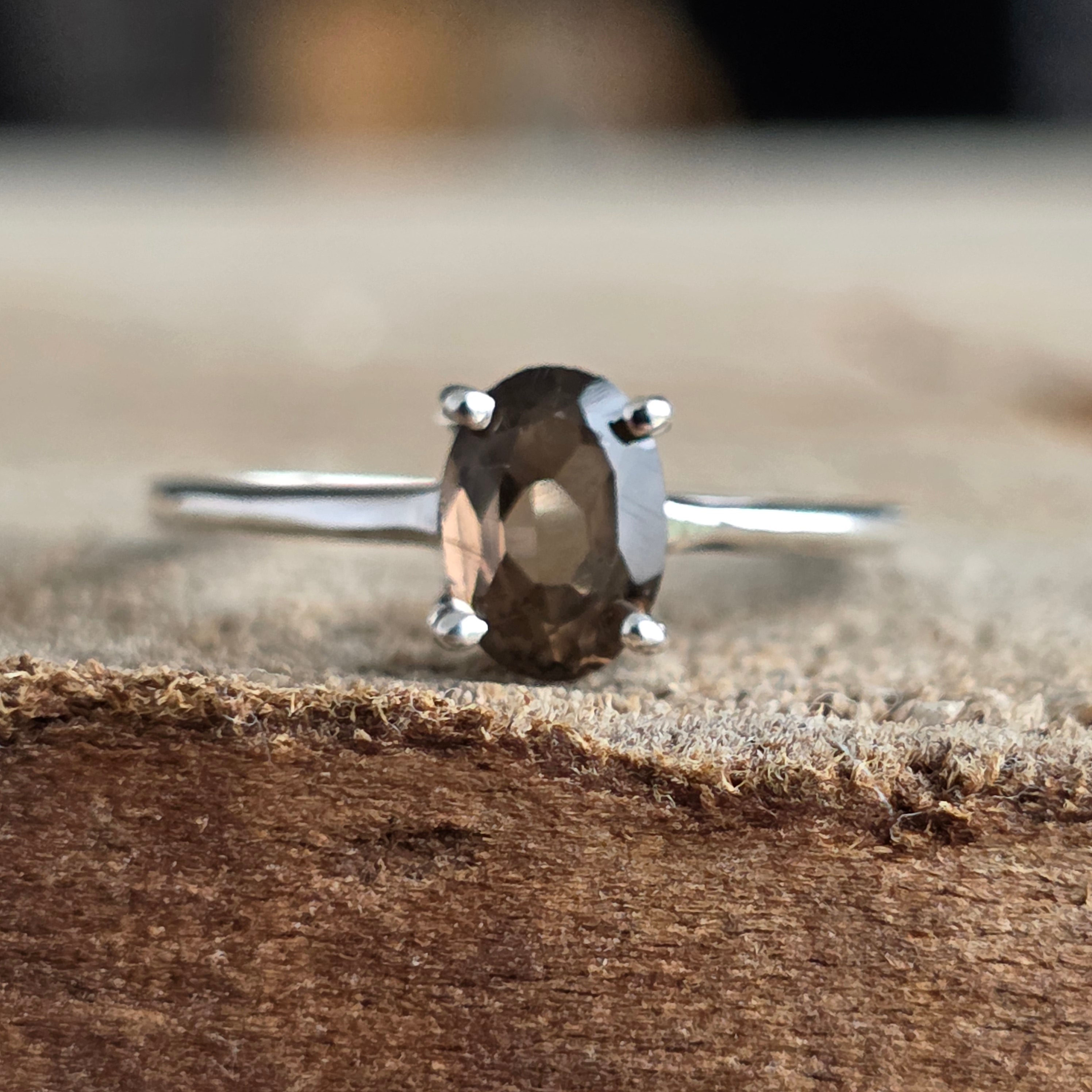 Elegant și misterios, acest inel din argint 925 pune în valoare profunzimea translucidă a topazului fumuriu, piatra ancorării și a înțelepciunii interioare.