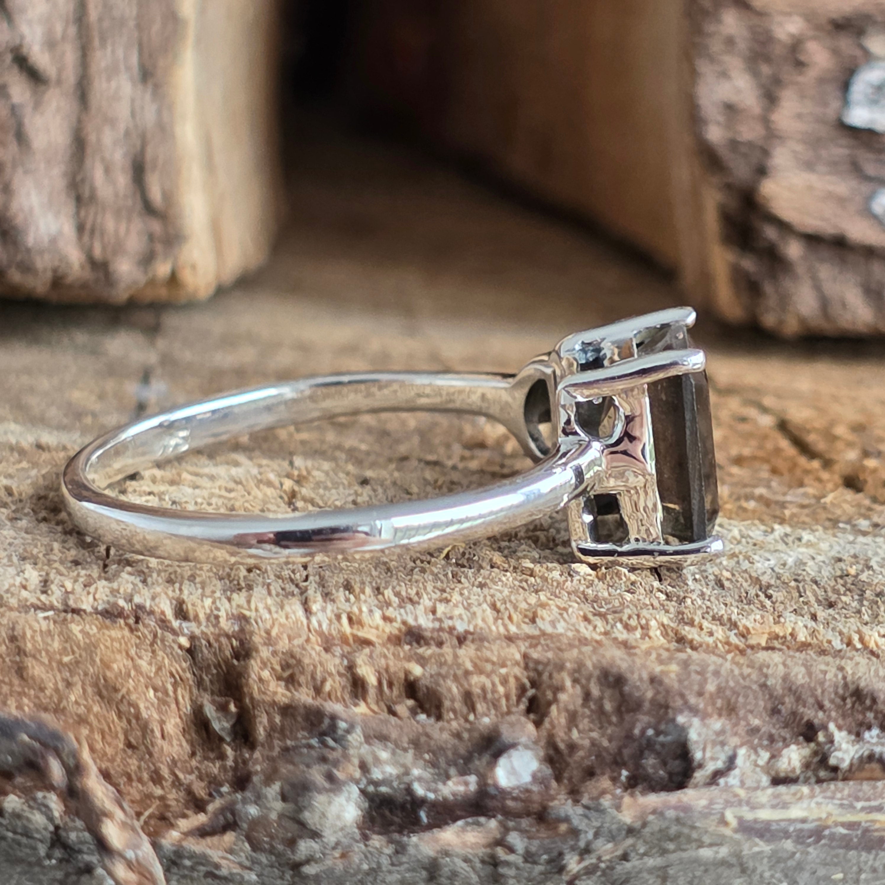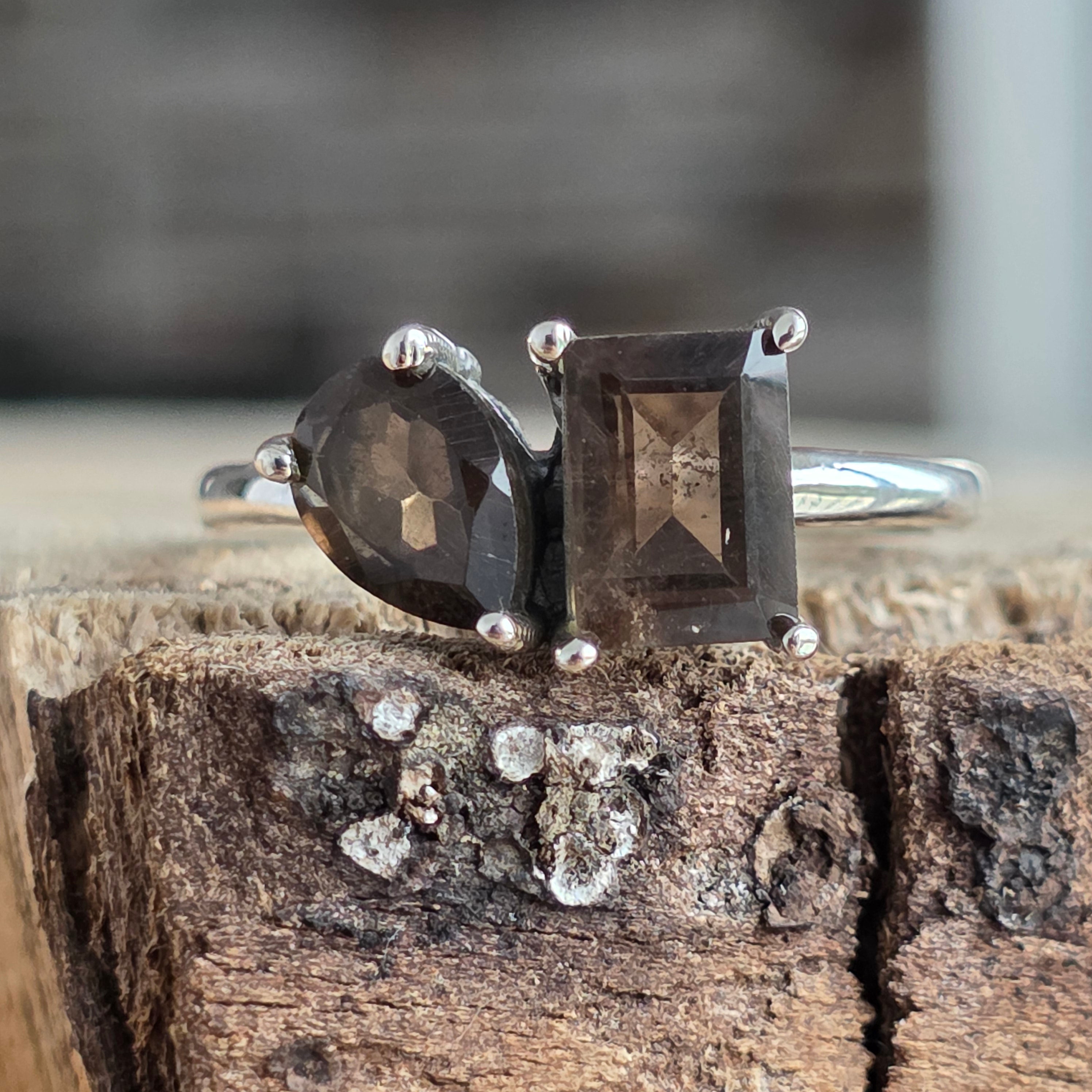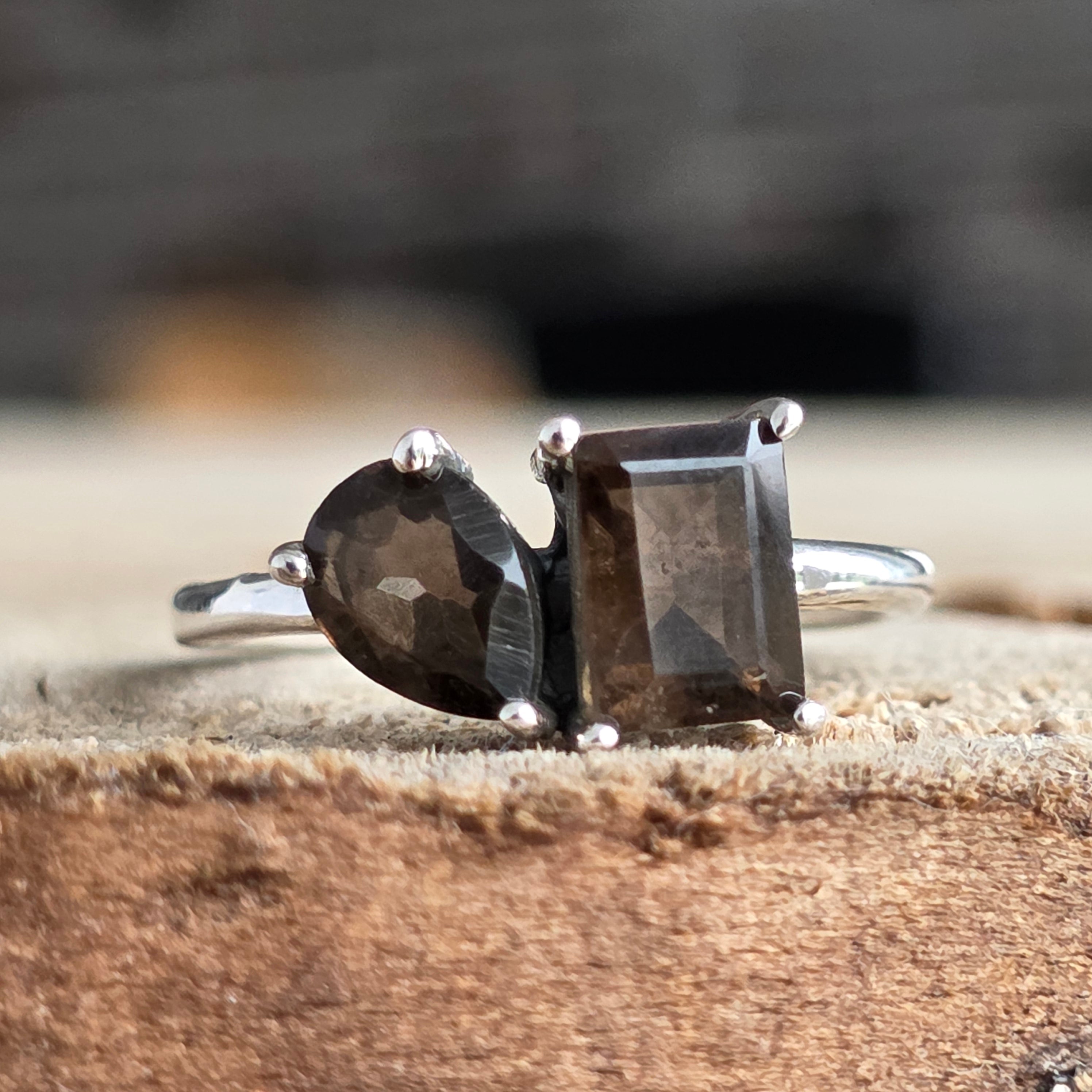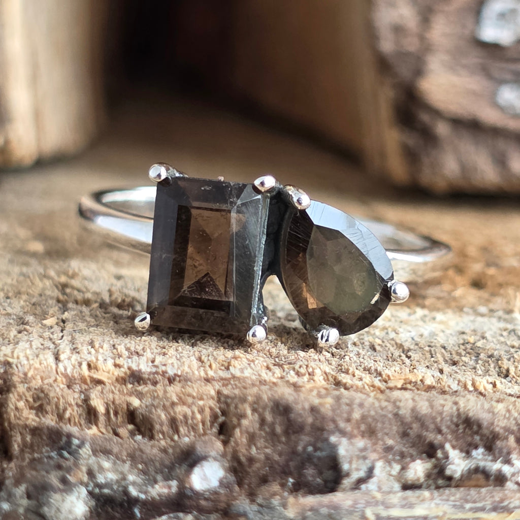 • Piatre: Topaz fumuriu natural – tăietură rectangulară și pară, Dimensiune pietre: 0.7 x 0.5 cm, 0.6 x 0.3 cm