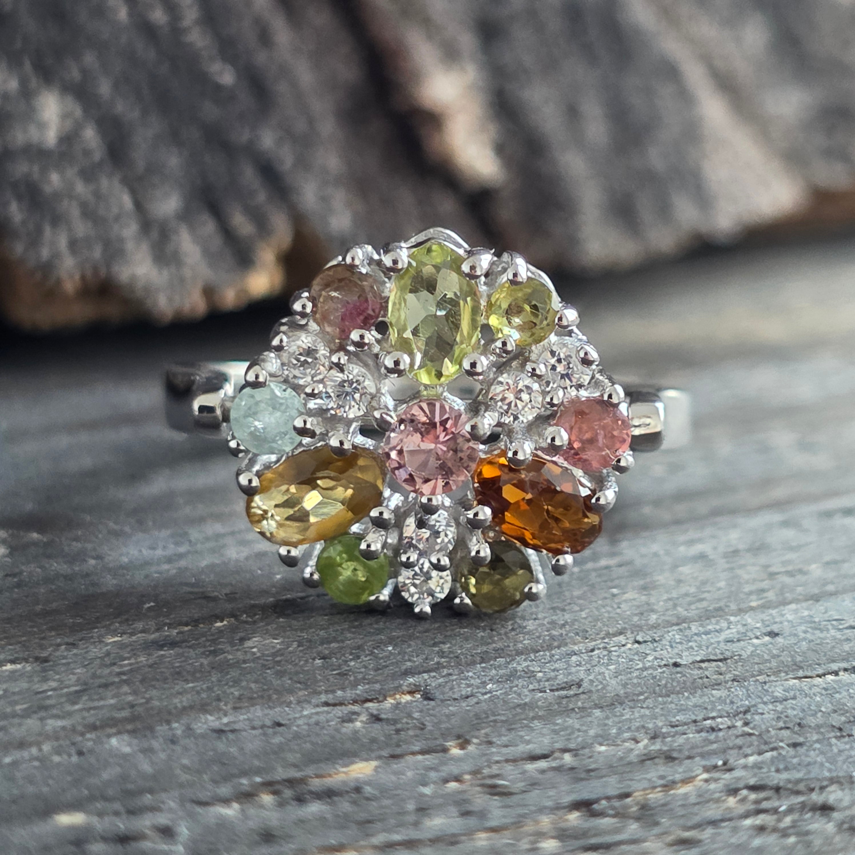Inel argint turmalina mix si topaz | FLOWER 9