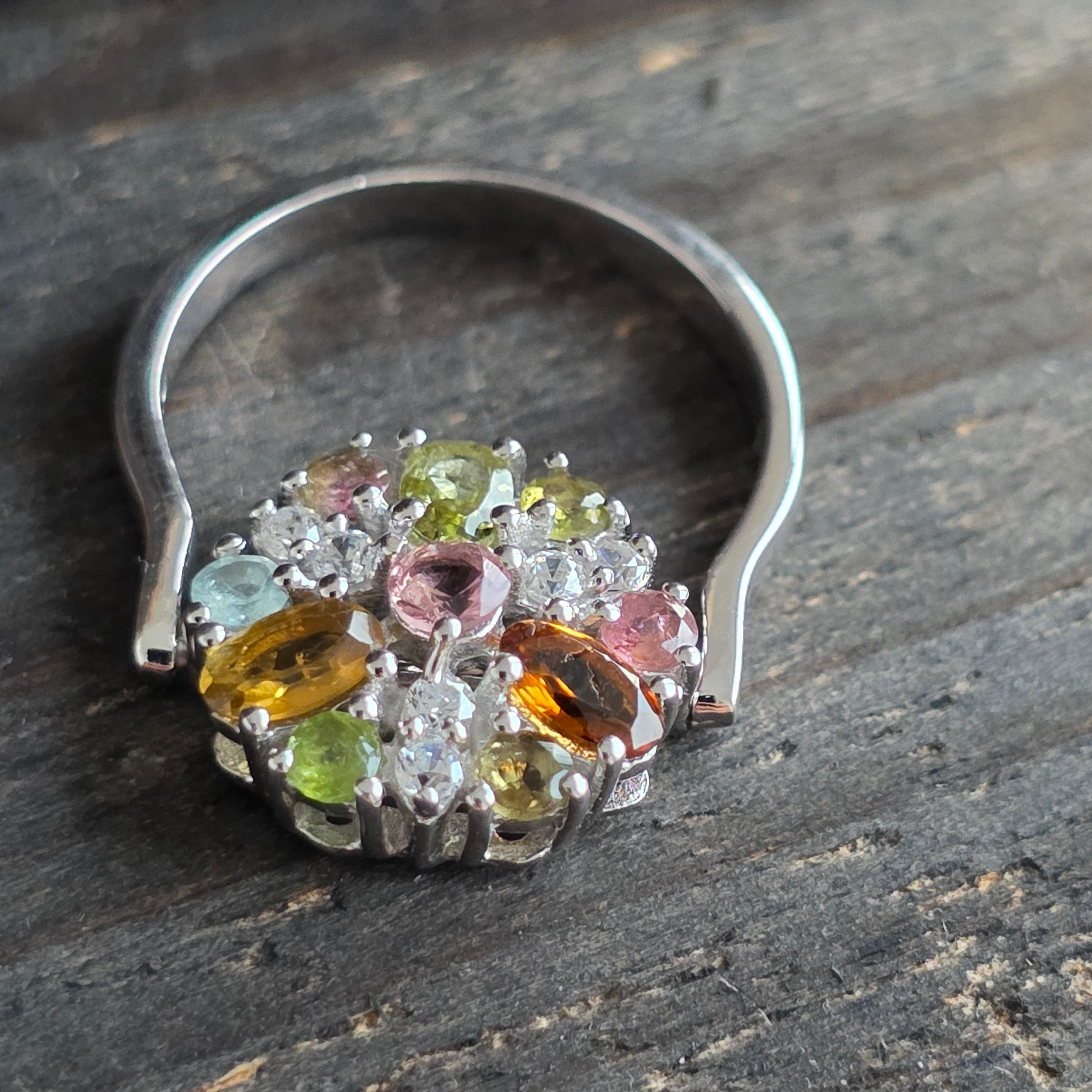 Descriere - Inel argint turmalina mix si topaz | FLOWER 9