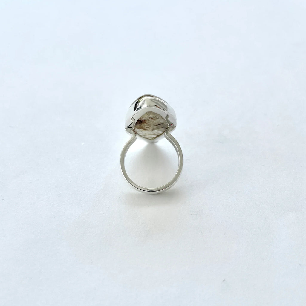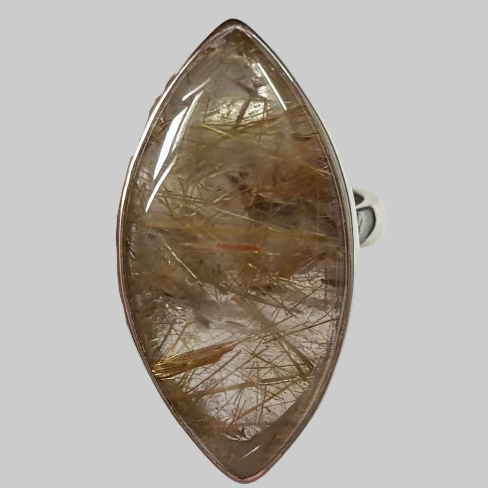 Poartă acest inel cu cuarț rutilat natural pentru a aduce lumină, claritate și energie solară în viața ta – o bijuterie unicat, creată de natură și desăvârșită în argint.