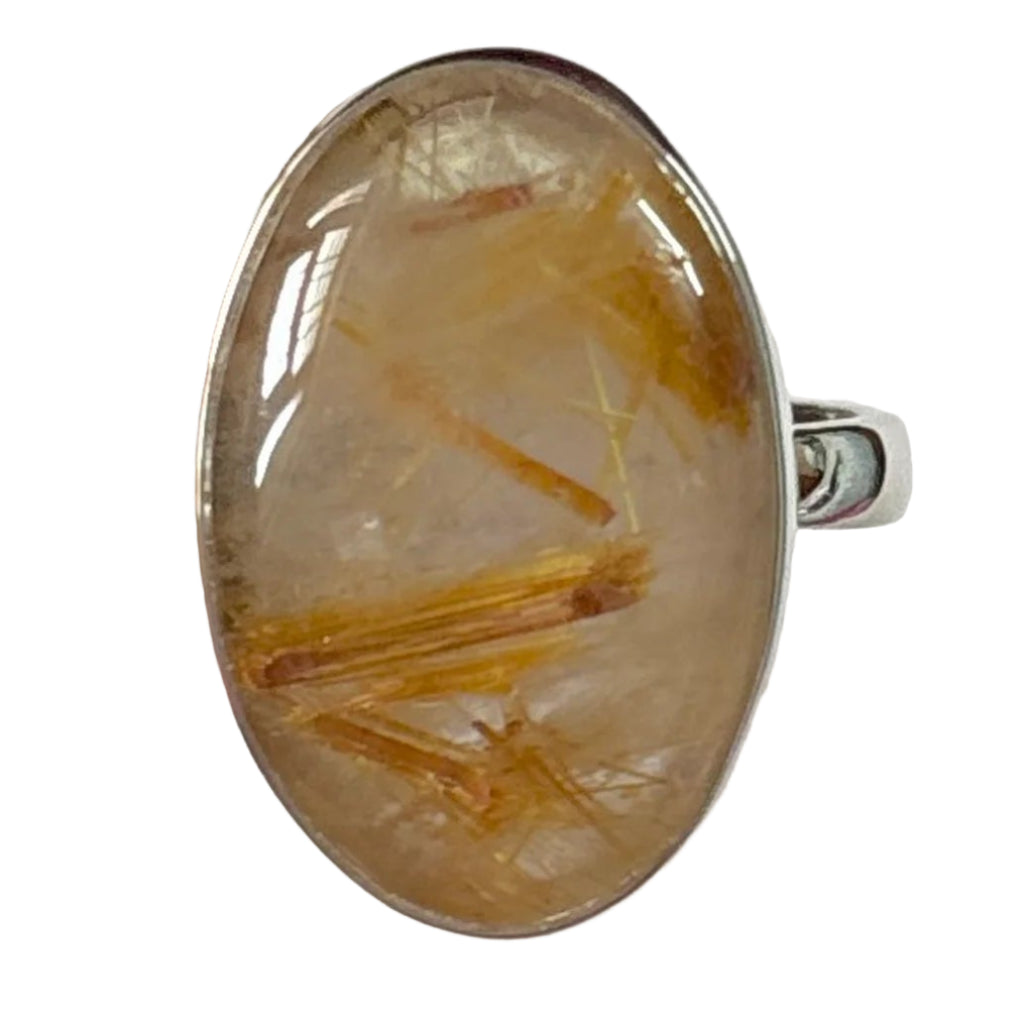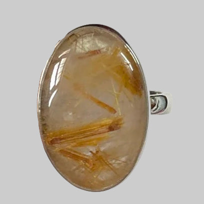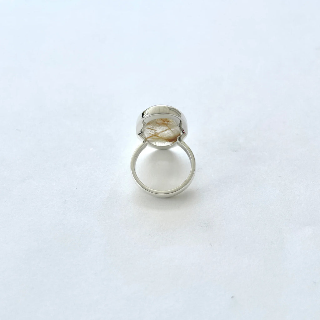 Poartă acest inel cu cuarț rutilat natural pentru a aduce lumină, claritate și energie solară în viața ta – o bijuterie unicat, creată de natură și desăvârșită în argint.