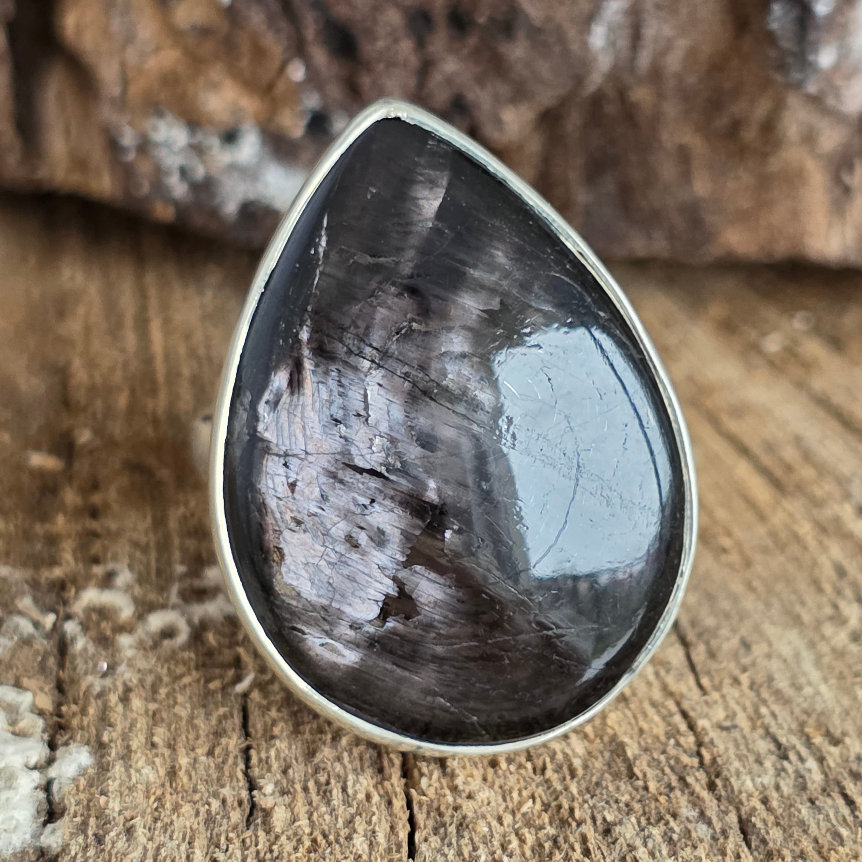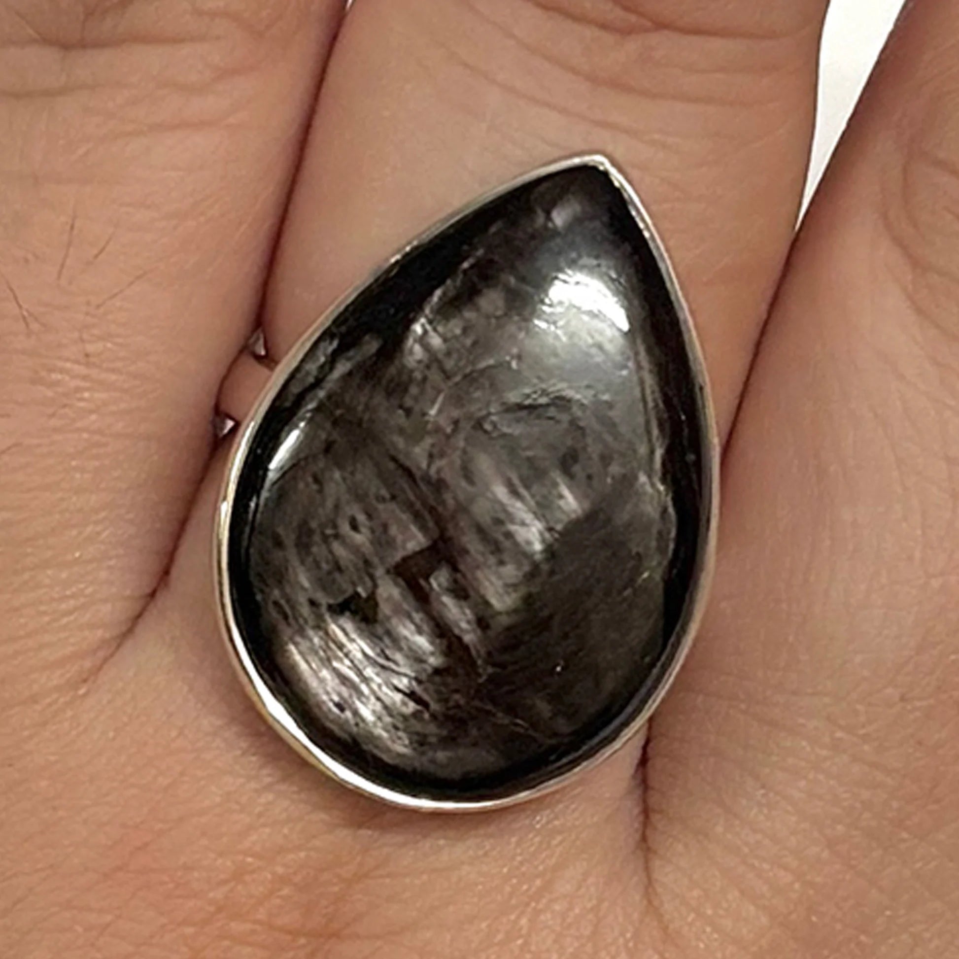 Alege acest inel cu hipersten natural pentru a purta cu tine un simbol al clarității și al forței interioare – o bijuterie unicat, creată de natură și finisată în argint.