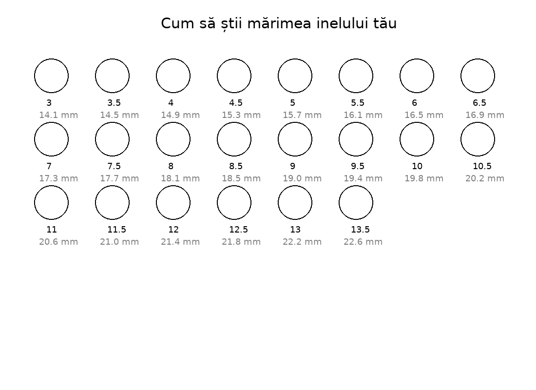 Dacă doriți să aflați care este mărimea potrivită, vă recomandăm să măsurați un inel care vă vine bine și să comparați dimensiunea cu tabelul de mărimi pentru inele disponibil în galeria foto a produsului.