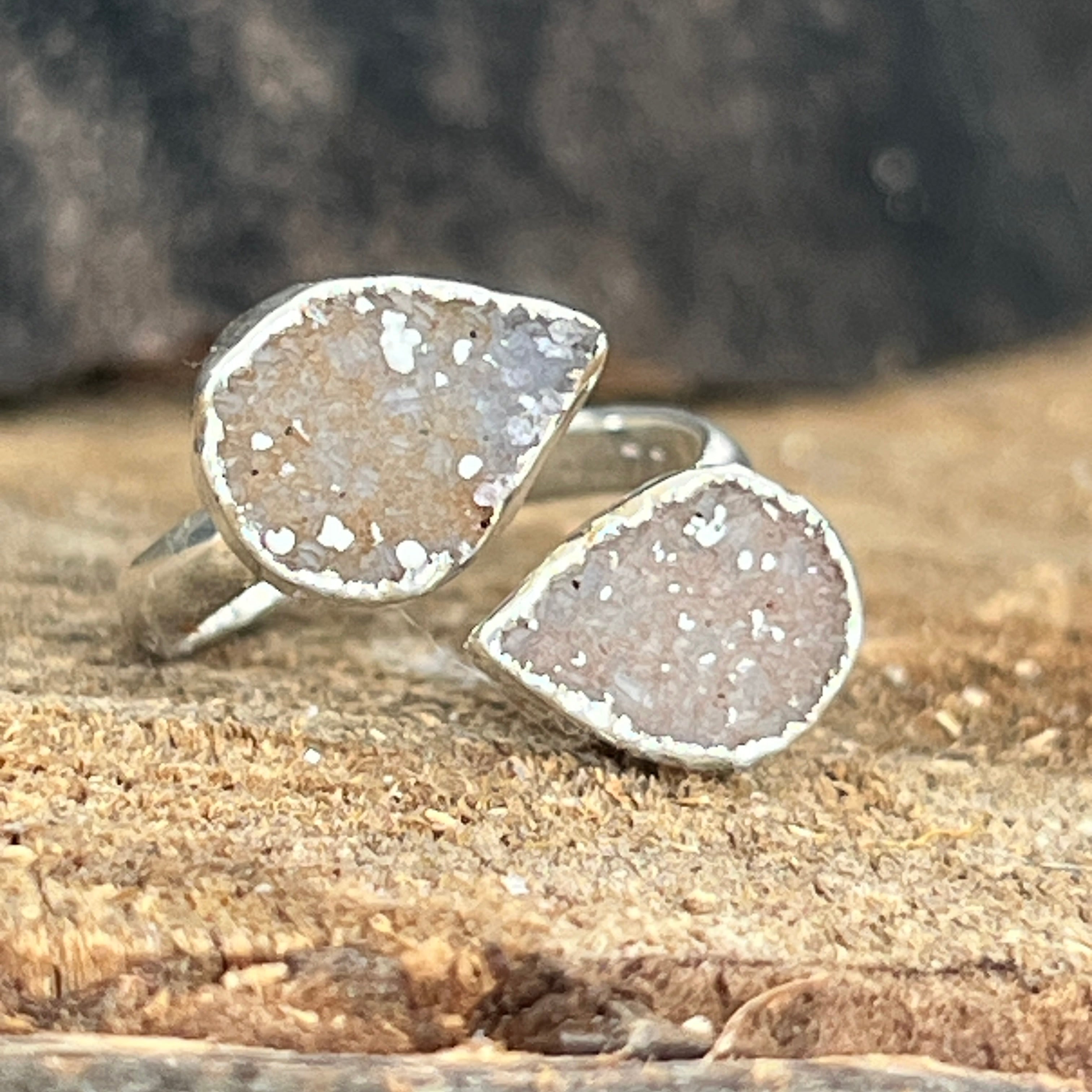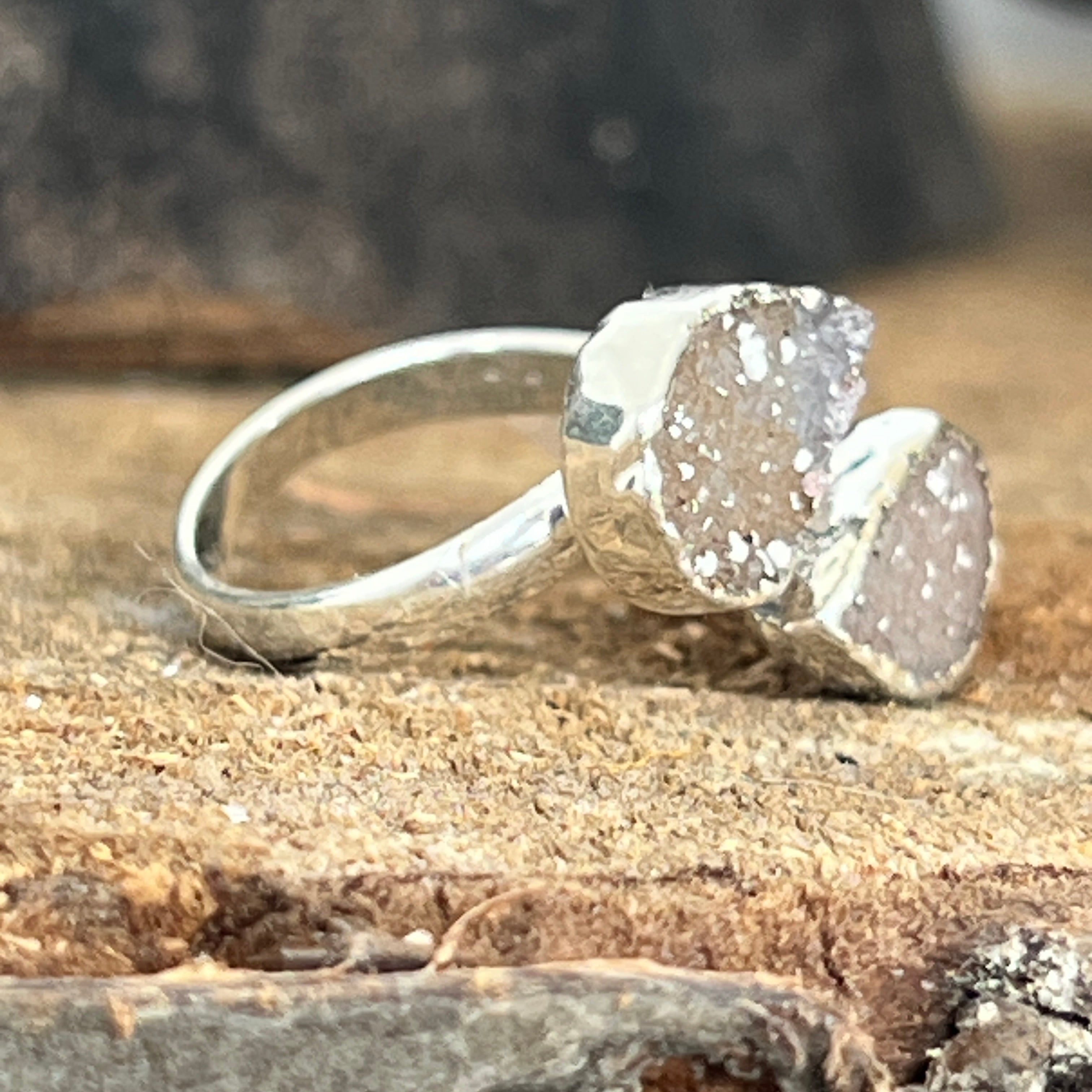 Descriere - Inel reglabil agat druzy placat cu argint din Brazilia model 3