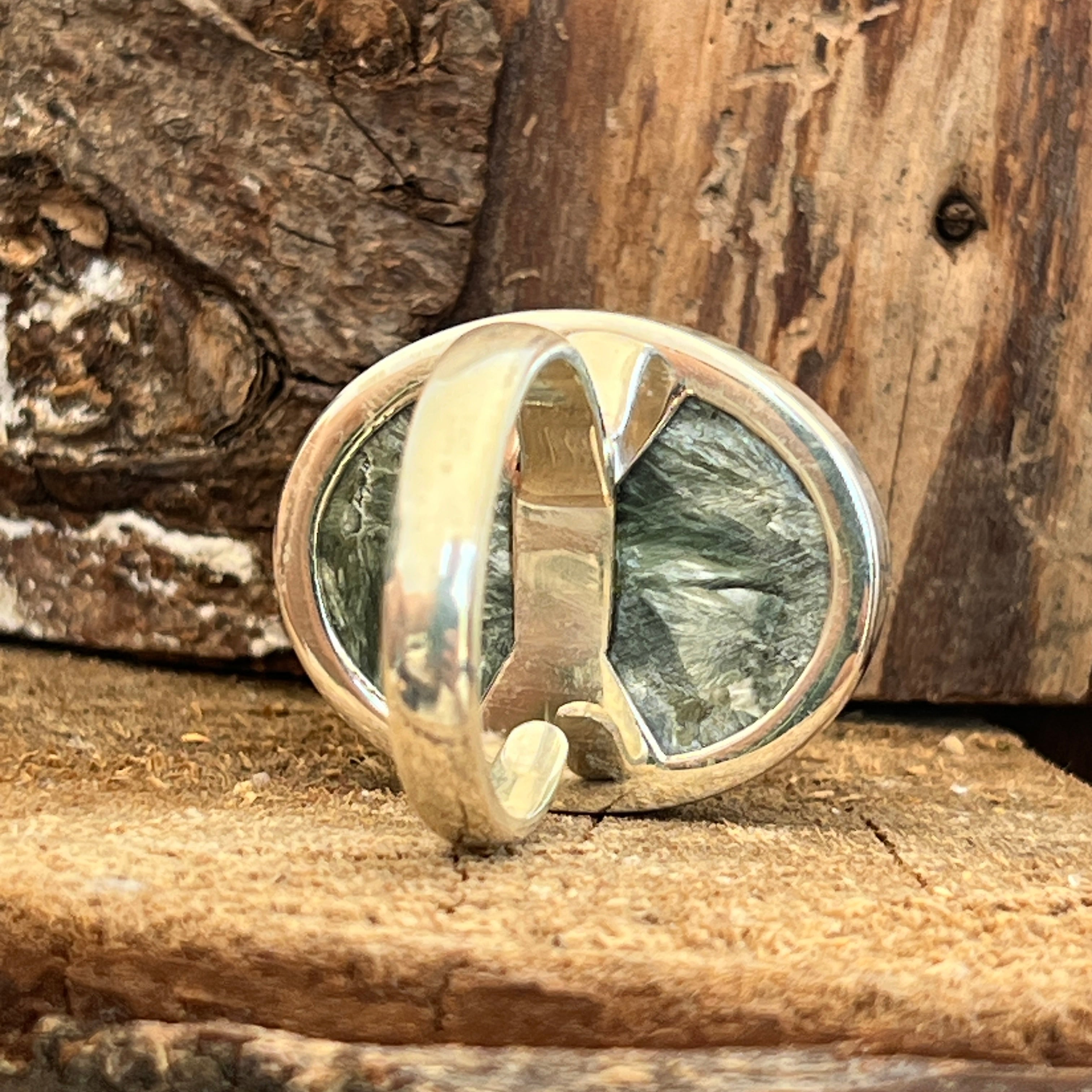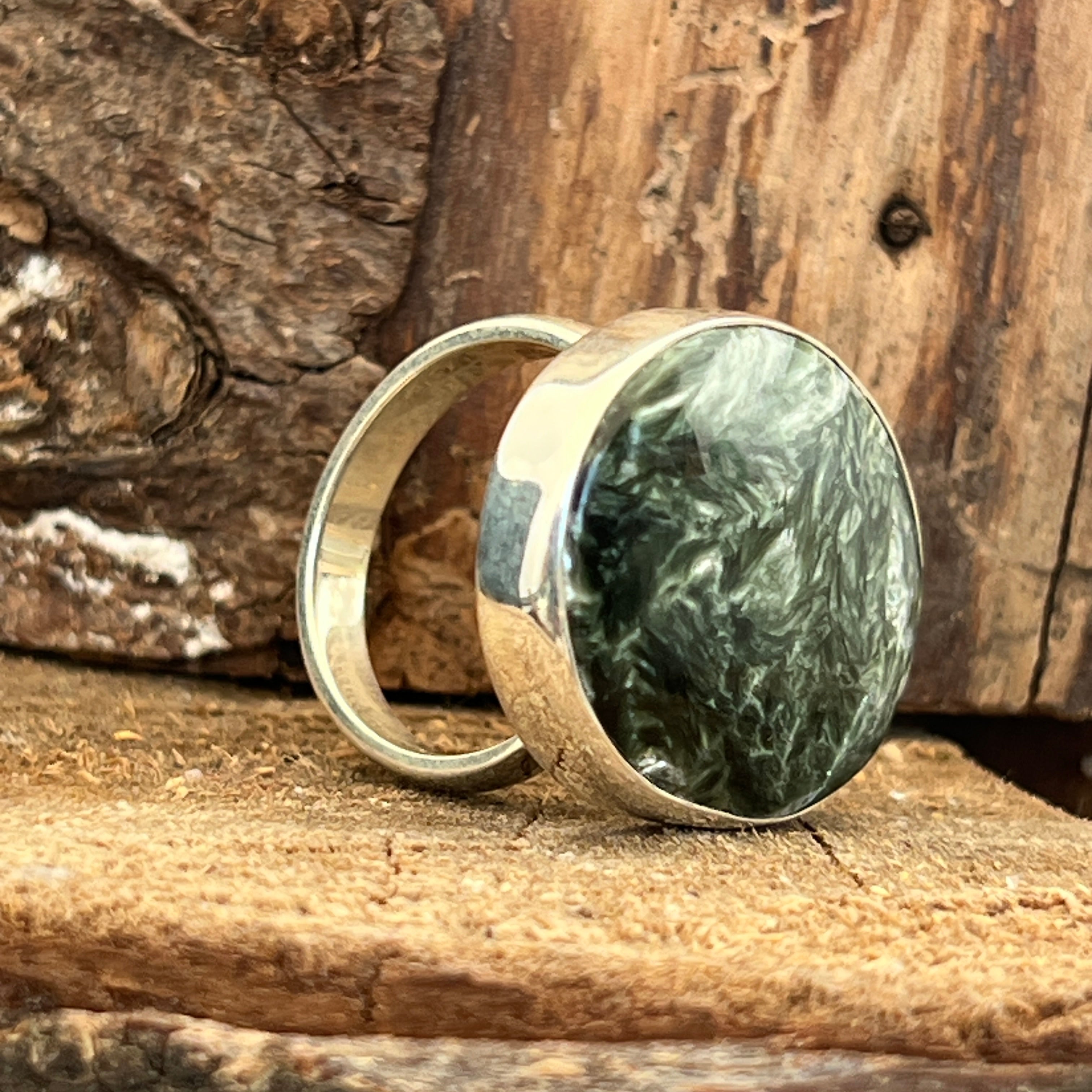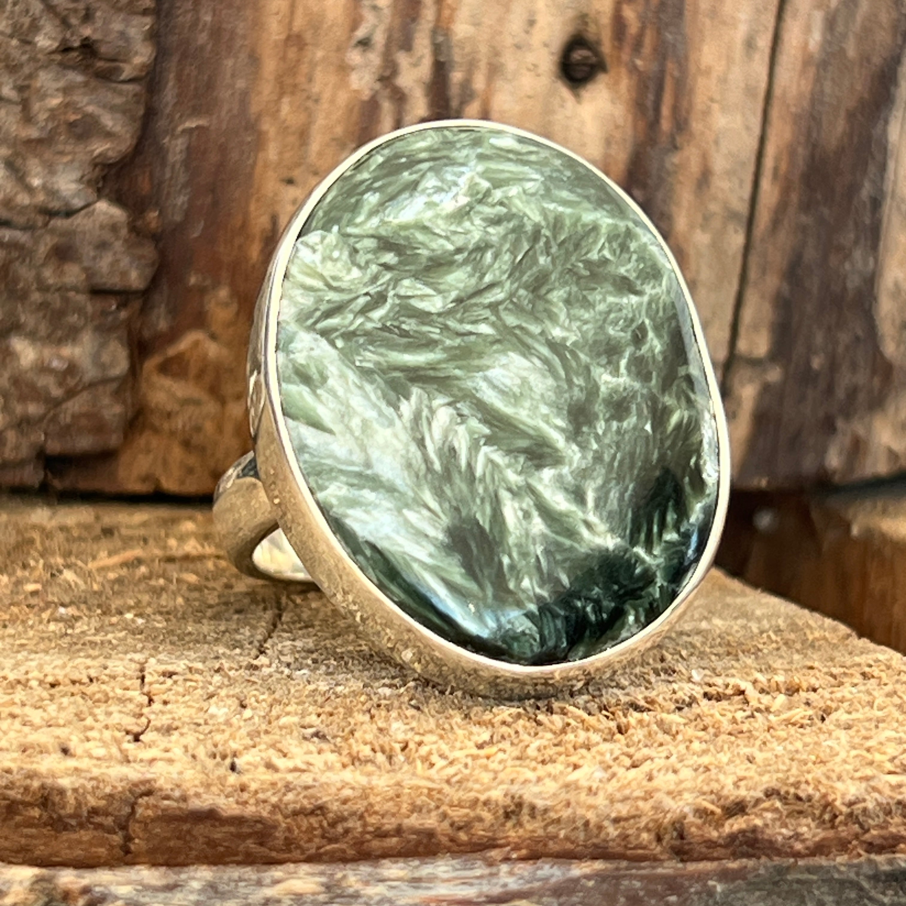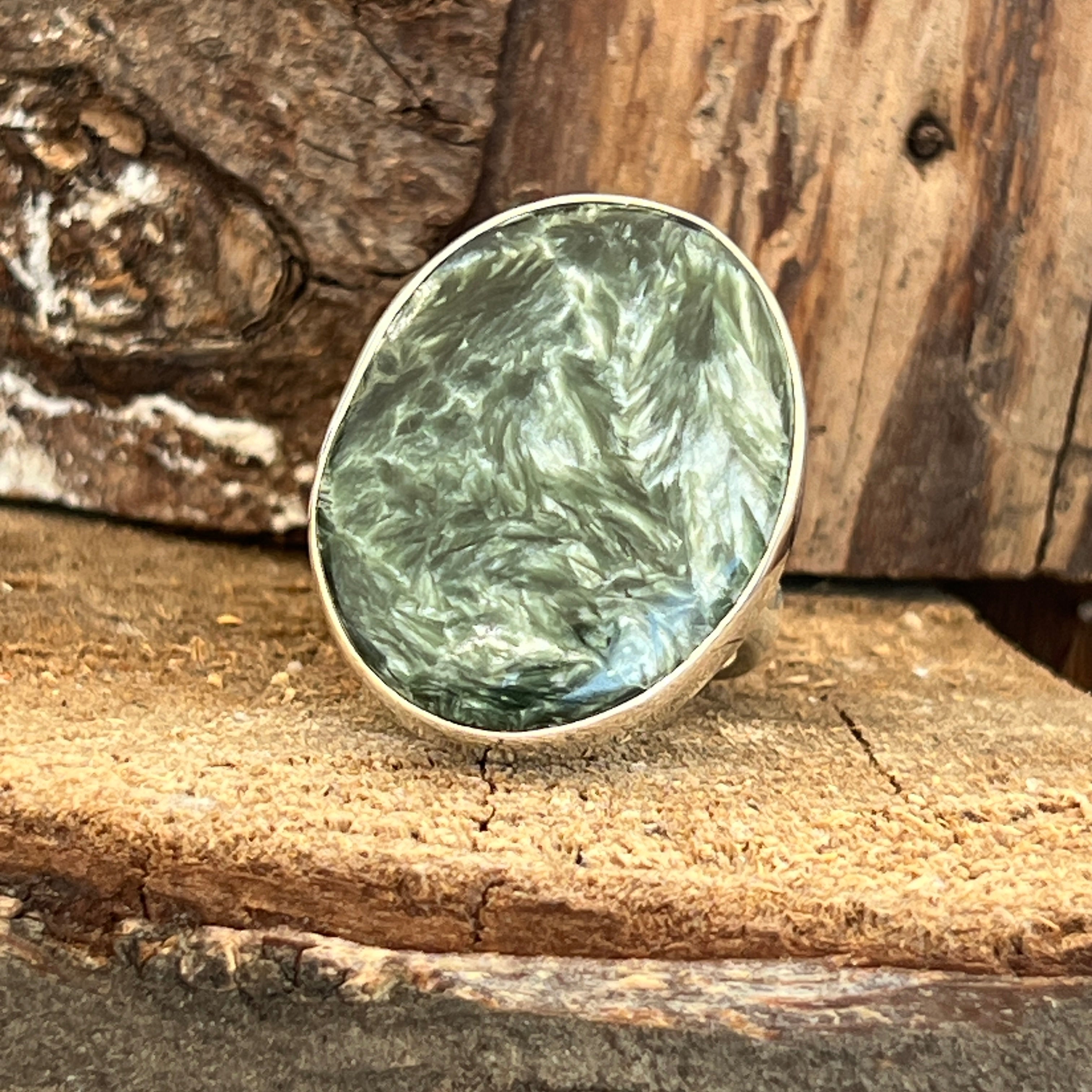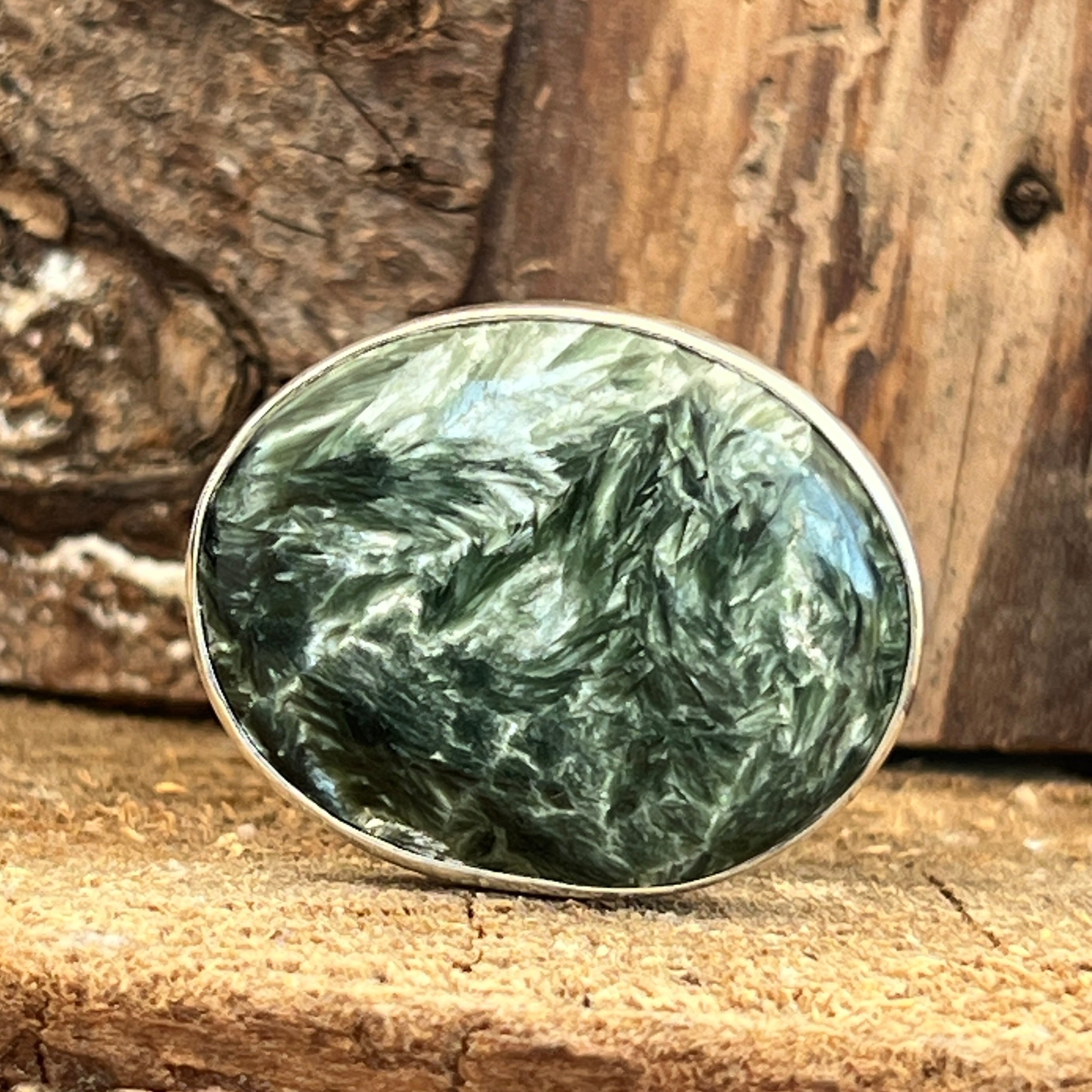 Serafinitul se remarcă prin nuanțele sale subtile de verde, îmbinate armonios cu striuri argintii sau albe, care seamănă cu aripile unui înger. Această combinație de culori și modele naturale creează un aspect delicat și fermecător în bijuterii. Serafinitul este adesea asociat cu energiile angelice și spirituale, fiind considerat o piatră a luminii și a iubirii divine.