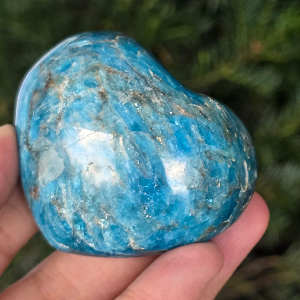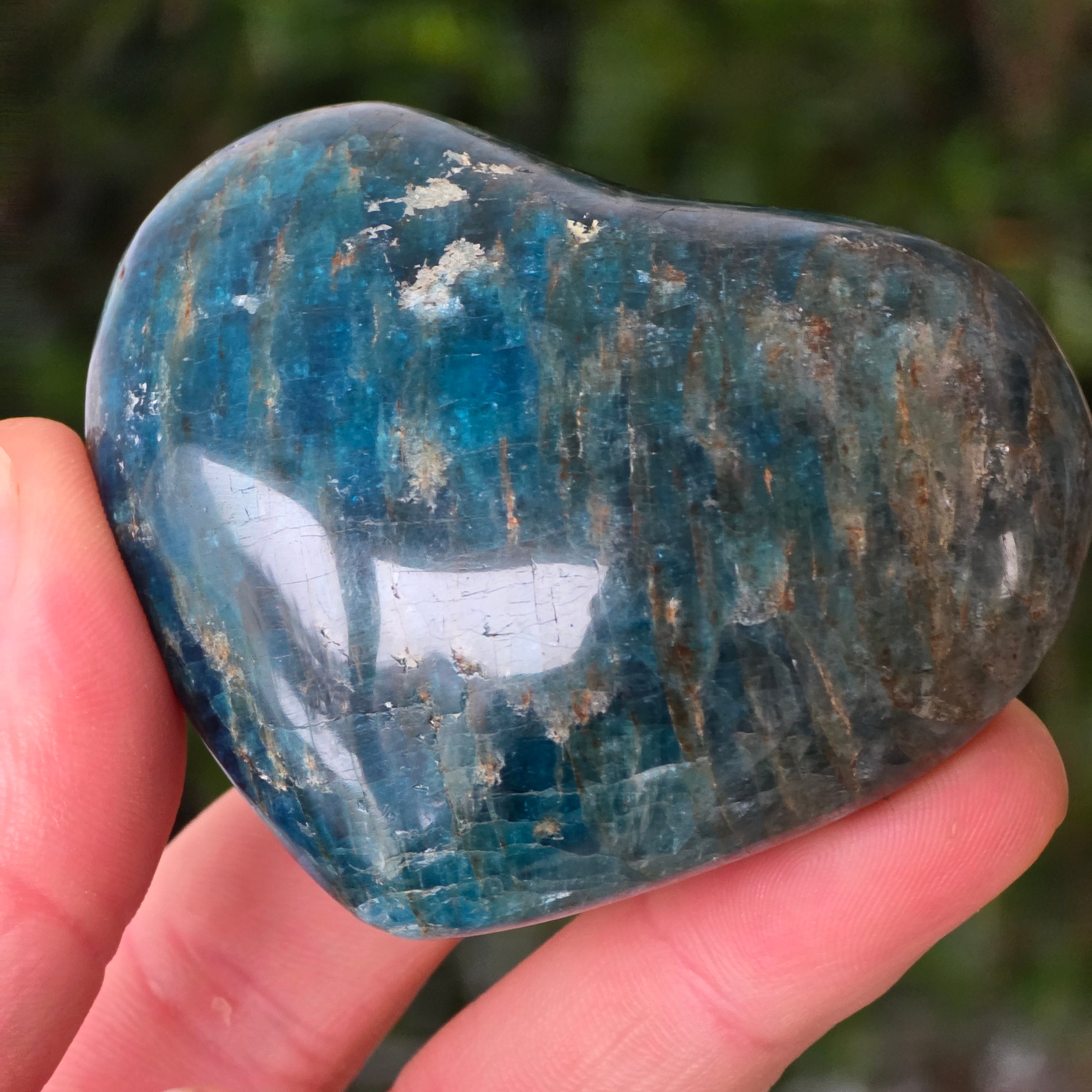 Apatitul albastru este recunoscut pentru faptul că ajută la îmbunătățirea comunicării și a exprimării, fiind util pentru cei care suferă de anxietate socială sau de frică de a vorbi în public. De asemenea, se spune că această piatră ajută la sporirea creativității și a înțelegerii.