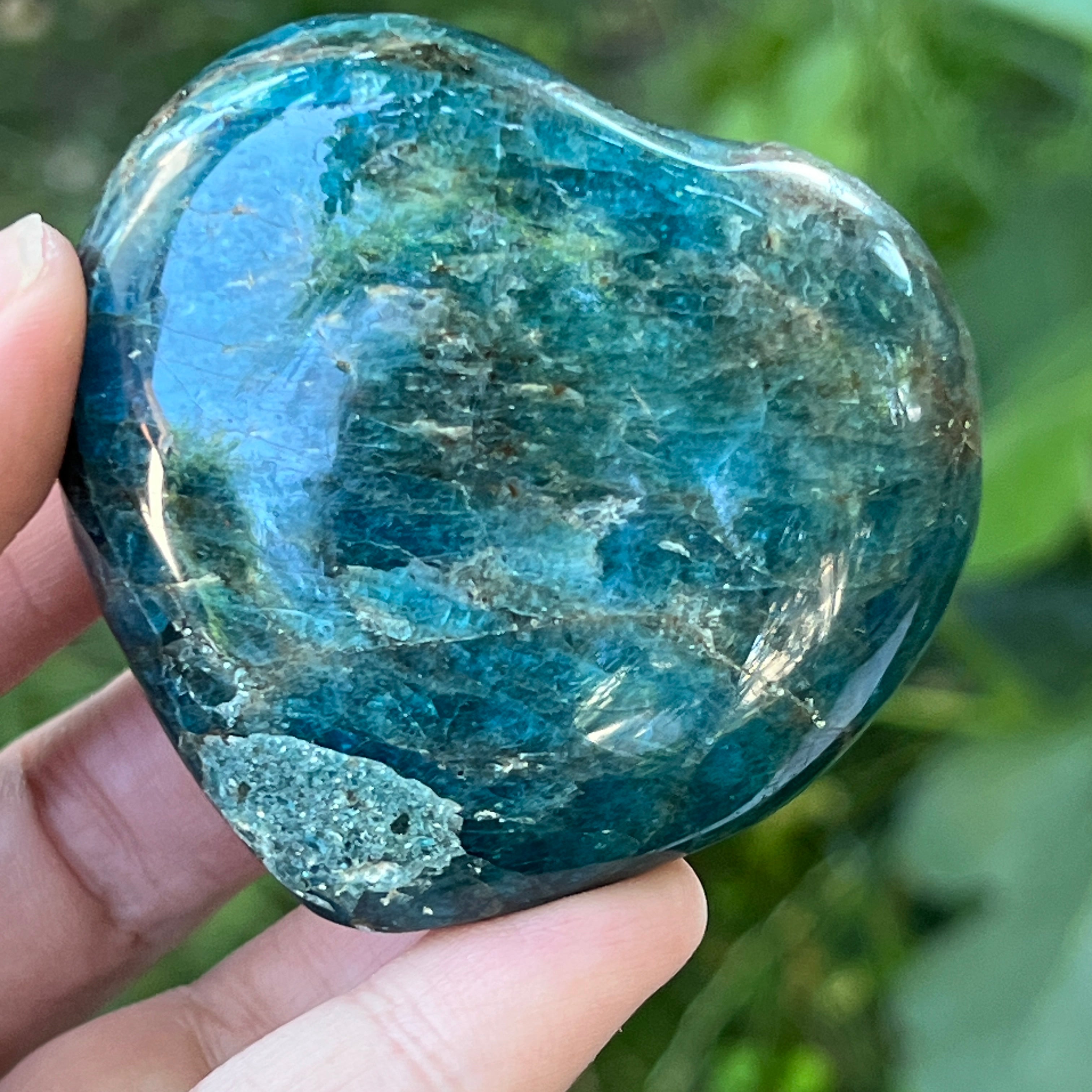 Apatitul albastru este recunoscut pentru faptul că ajută la îmbunătățirea comunicării și a exprimării, fiind util pentru cei care suferă de anxietate socială sau de frică de a vorbi în public. De asemenea, se spune că această piatră ajută la sporirea creativității și a înțelegerii.