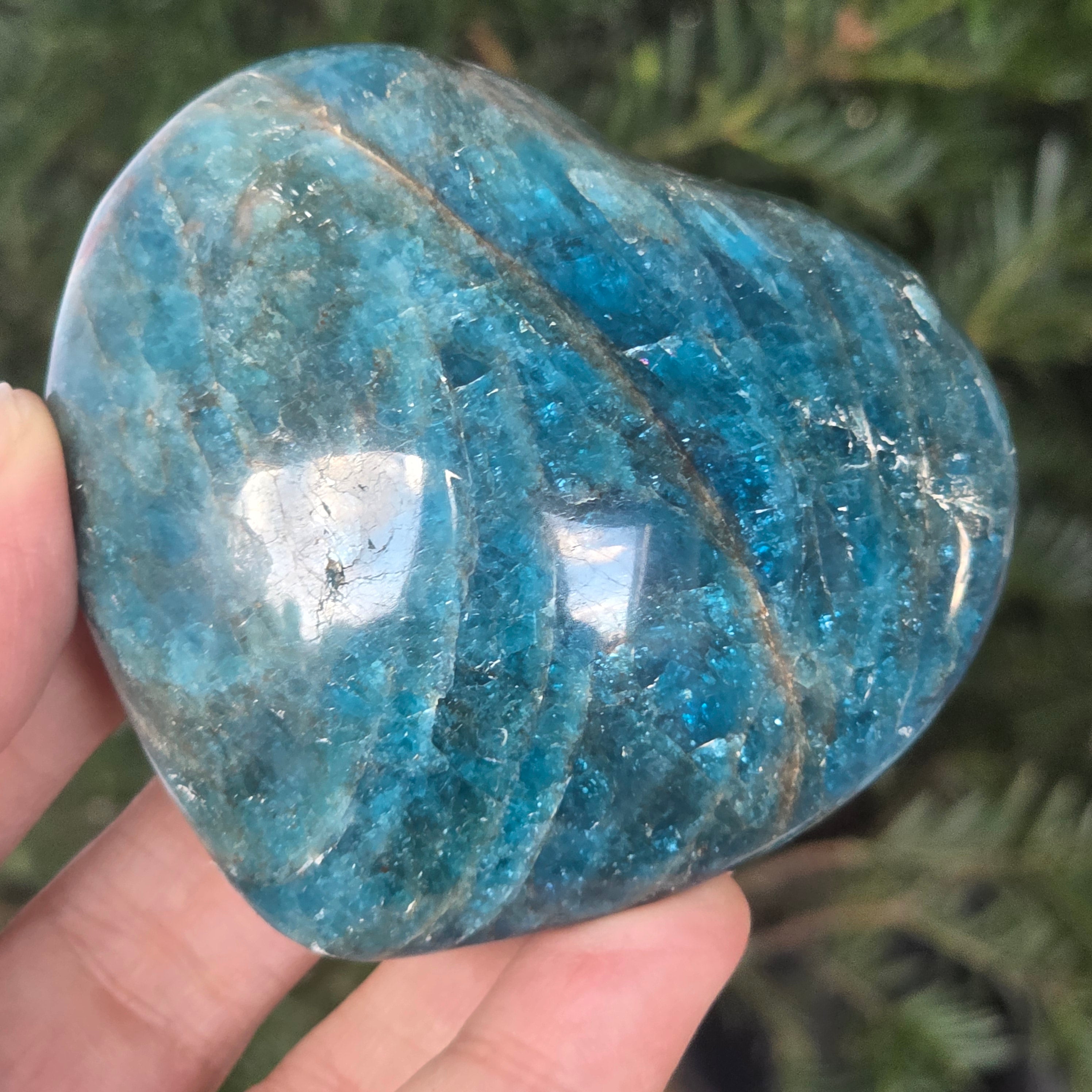 Apatitul albastru este recunoscut pentru faptul că ajută la îmbunătățirea comunicării și a exprimării, fiind util pentru cei care suferă de anxietate socială sau de frică de a vorbi în public. De asemenea, se spune că această piatră ajută la sporirea creativității și a înțelegerii.