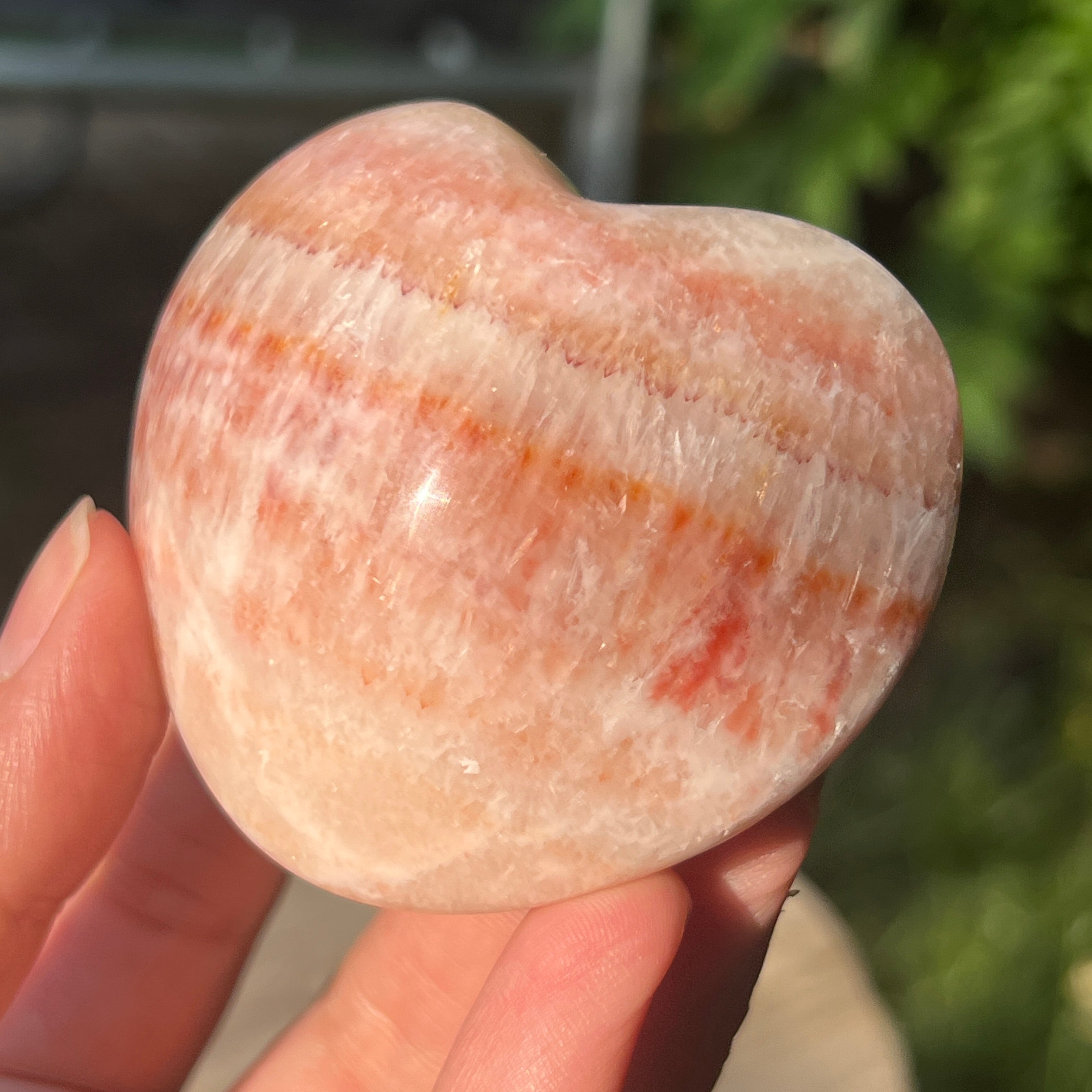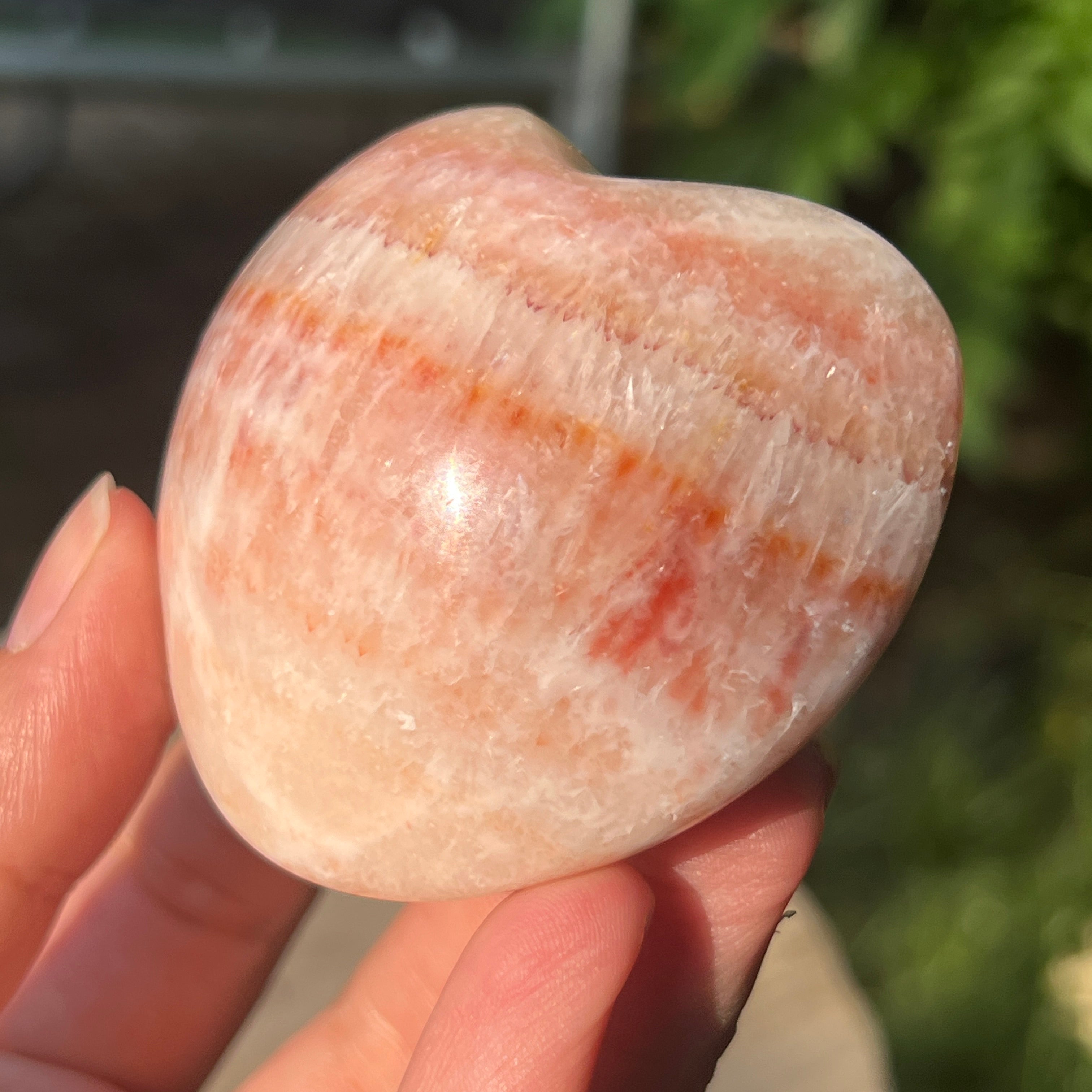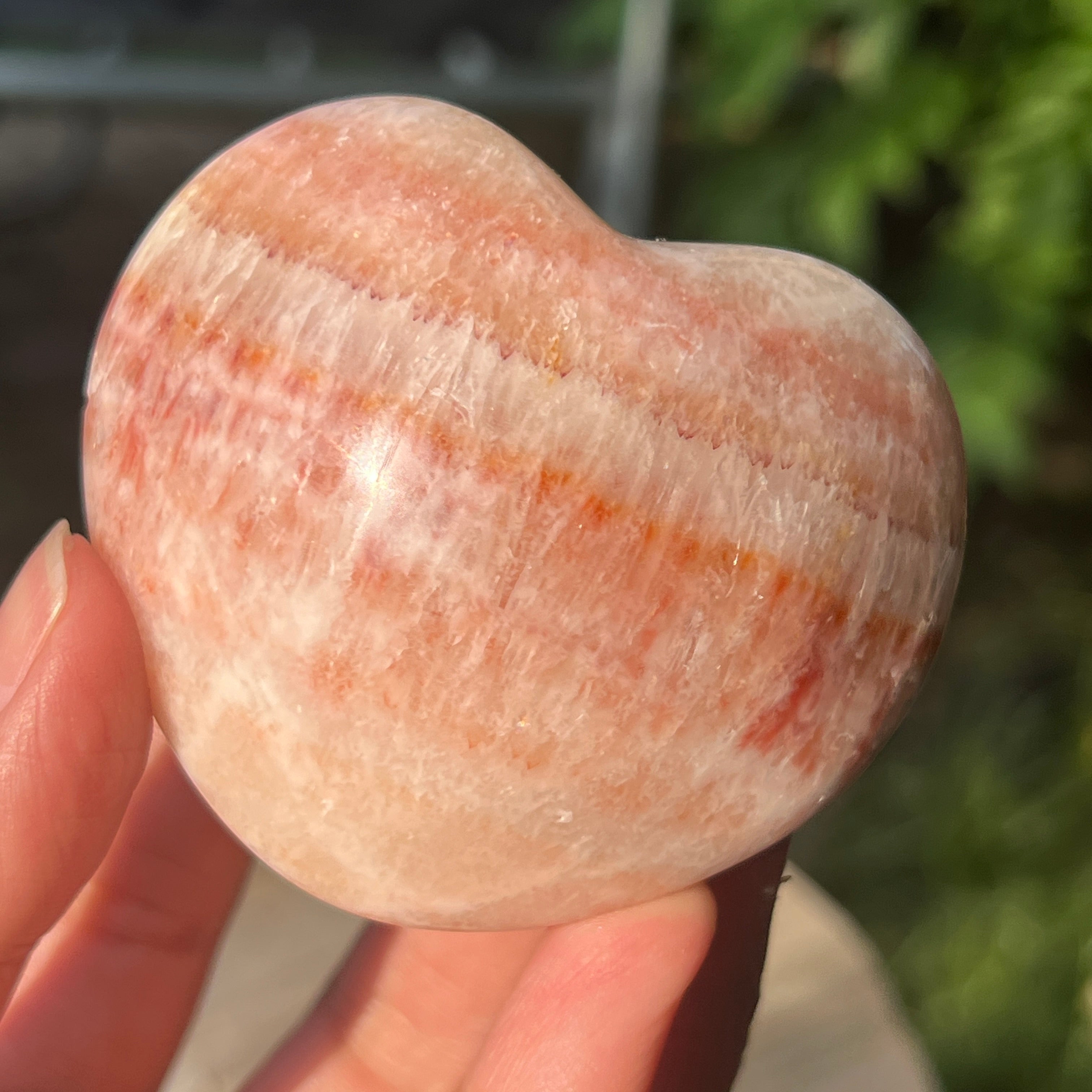 Această inimă șlefuită manual din calcit roz dungat aduce o notă caldă și reconfortantă în orice spațiu. Nuanțele blânde de roz, combinate cu fâșii albe sau cremoase, evocă gingășia, echilibrul interior și protecția sufletească.