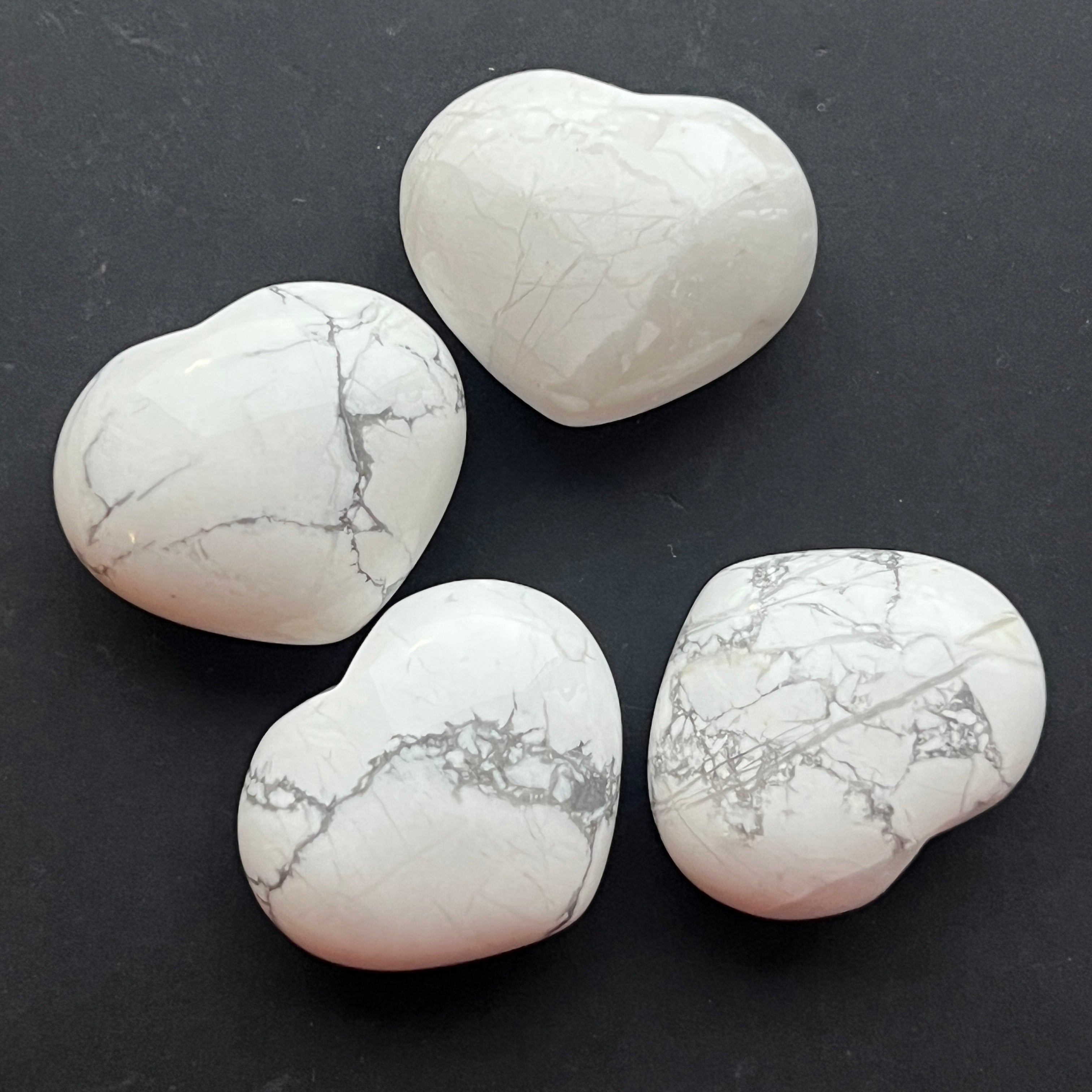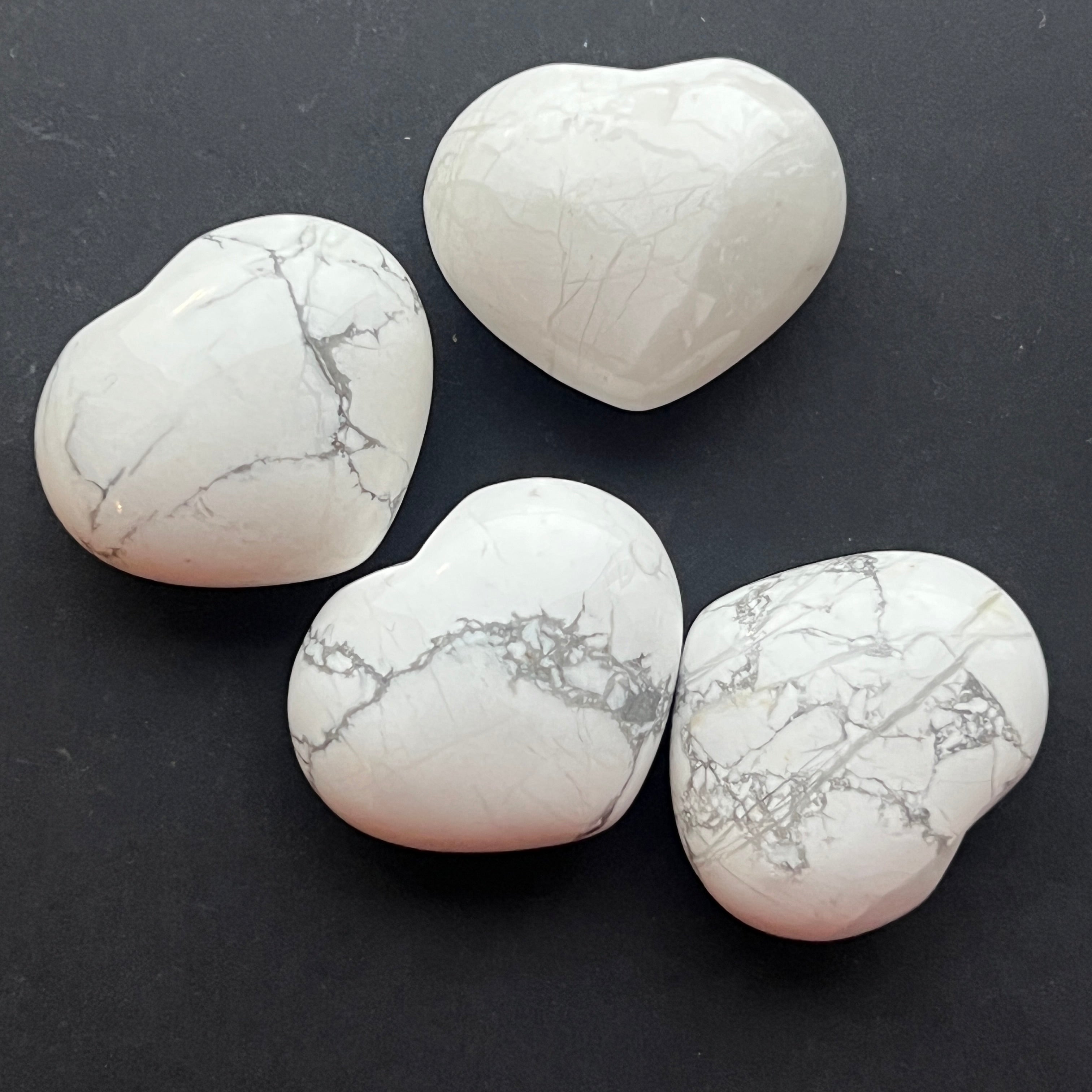 Howlitul alb este un mineral care inspiră echilibru, claritate și răbdare, iar în această formă de inimă se transformă într-un obiect elegant și expresiv. O piesă naturală, simplă și frumoasă, care aduce un strop de calm în fiecare zi.