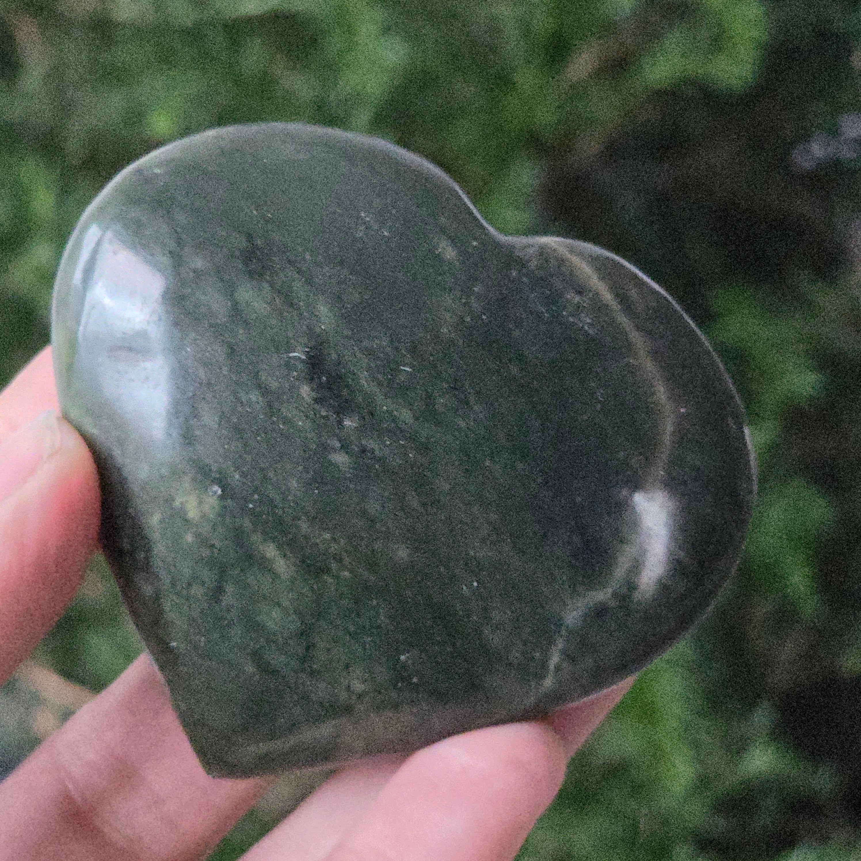 Această inimă sculptată din jad verde nefrit poartă în ea liniștea munților, răcoarea izvoarelor și puterea calmă a pietrei protectoare a Asiei. Fiecare nuanță de verde, fiecare unduire a suprafeței sale aduce aminte de armonie, echilibru și stabilitate interioară. O piesă mică, dar încărcată de sens, creată pentru cei care simt că transformarea începe mereu din spațiul inimii.