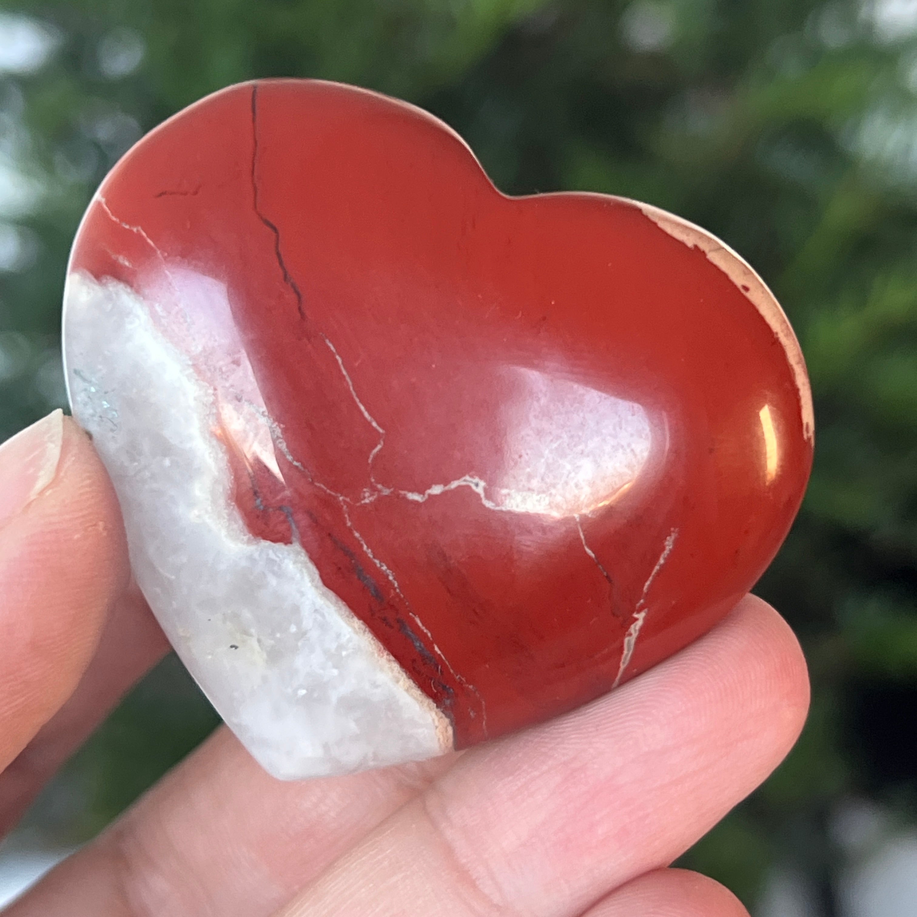Adaugă această inimă din Jasp Roșu natural în colecția ta și lasă-o să-ți reamintească, zi de zi, de forța vie care curge prin tine – aceeași energie primordială care pulsează în centrul Pământului.