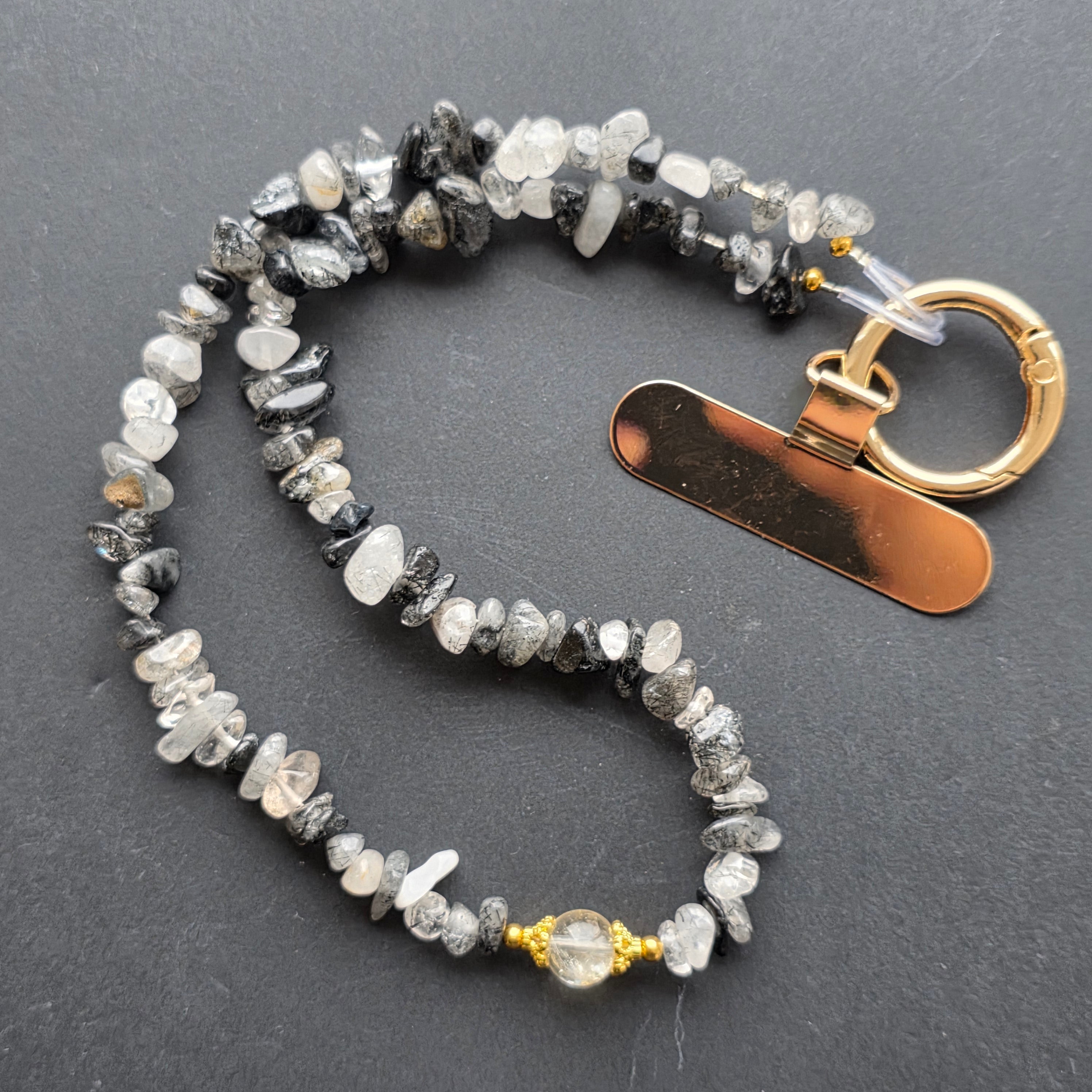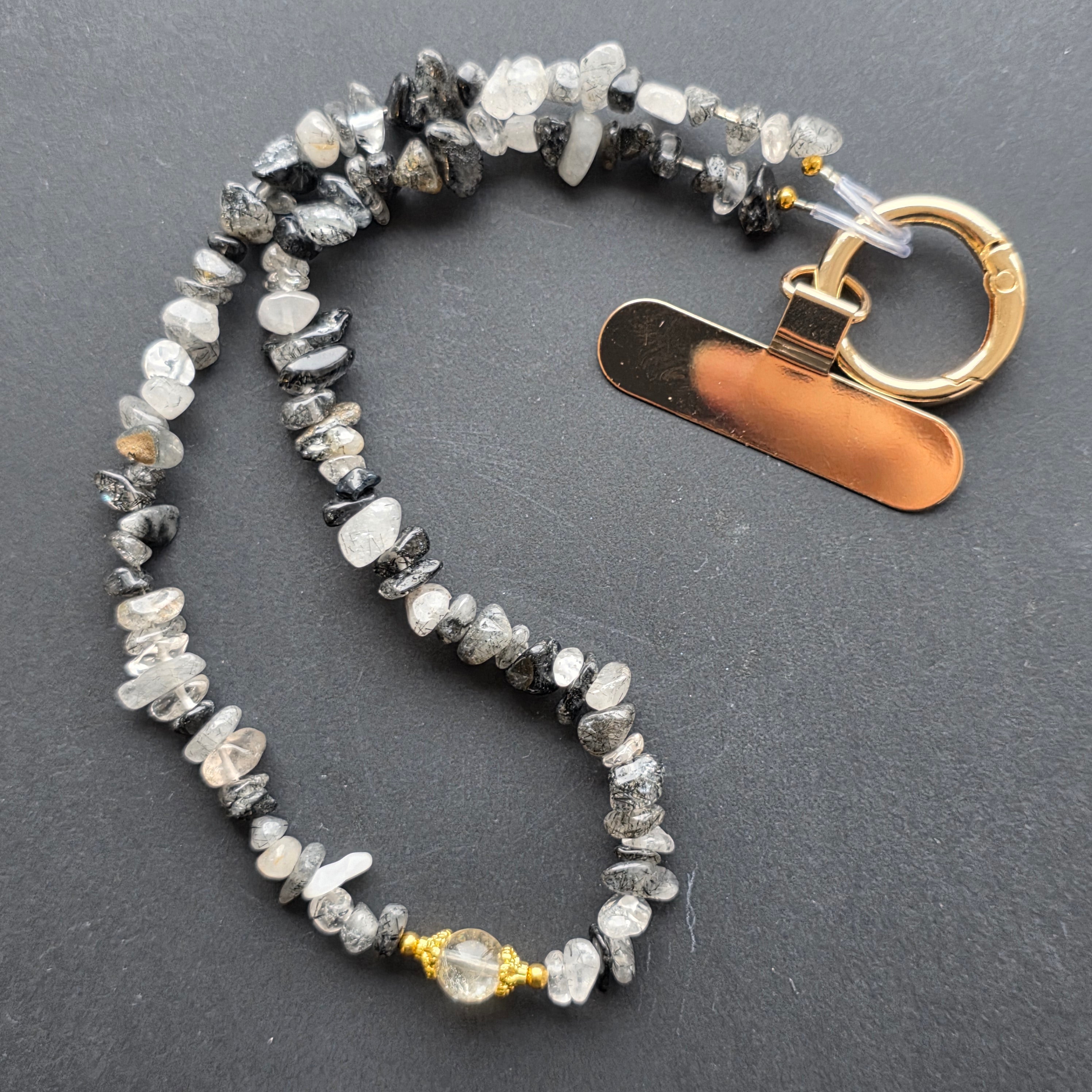 Descriere - Lanț pentru telefon din cuart cu turmalina