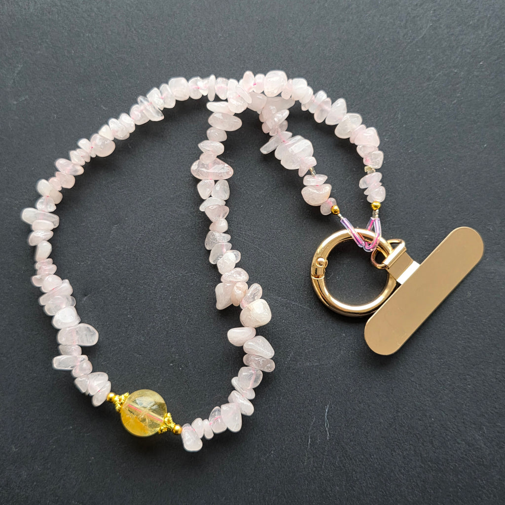 Descriere - Lanț pentru telefon din cuart roz