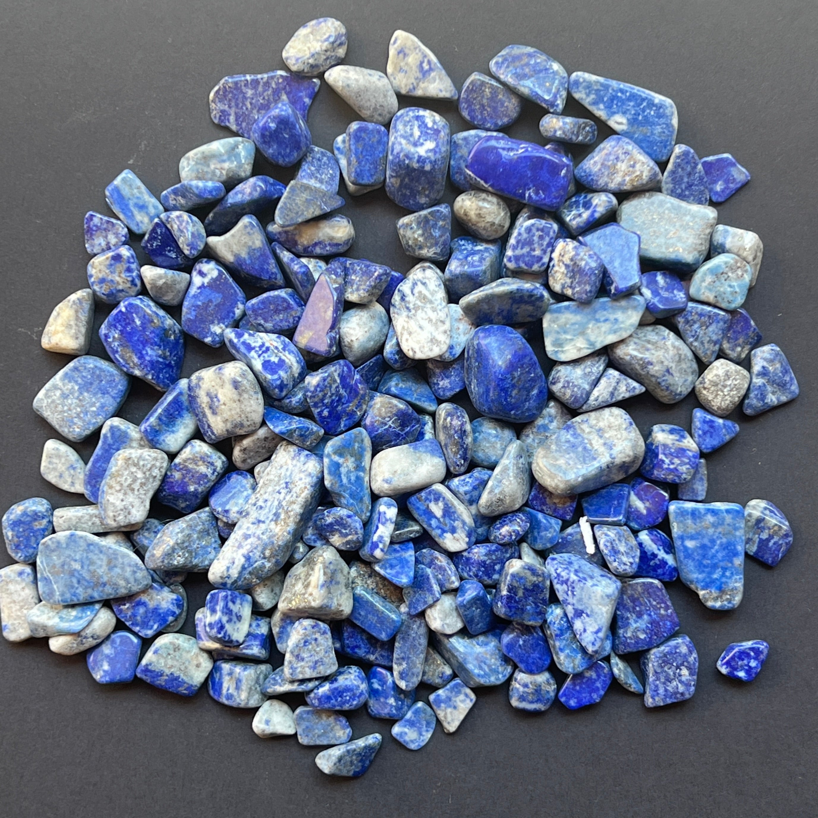 Lapis lazuli chips sunt bucăți mici și neregulate de piatră naturală, cu un albastru intens presărat cu sclipiri aurii de pirita și accente albe de calcit. Aceste fragmente autentice sunt ideale pentru confecționarea de bijuterii DIY, coliere, brățări sau cercei, dar și pentru decor și proiecte creative. În tradițiile vechi, lapisul era considerat piatra înțelepciunii și a adevărului, aducând claritate mentală și sprijin în exprimare. Chipsurile pot fi folosite și în griduri de cristale, pungi energetice sau ca piese de colecție.