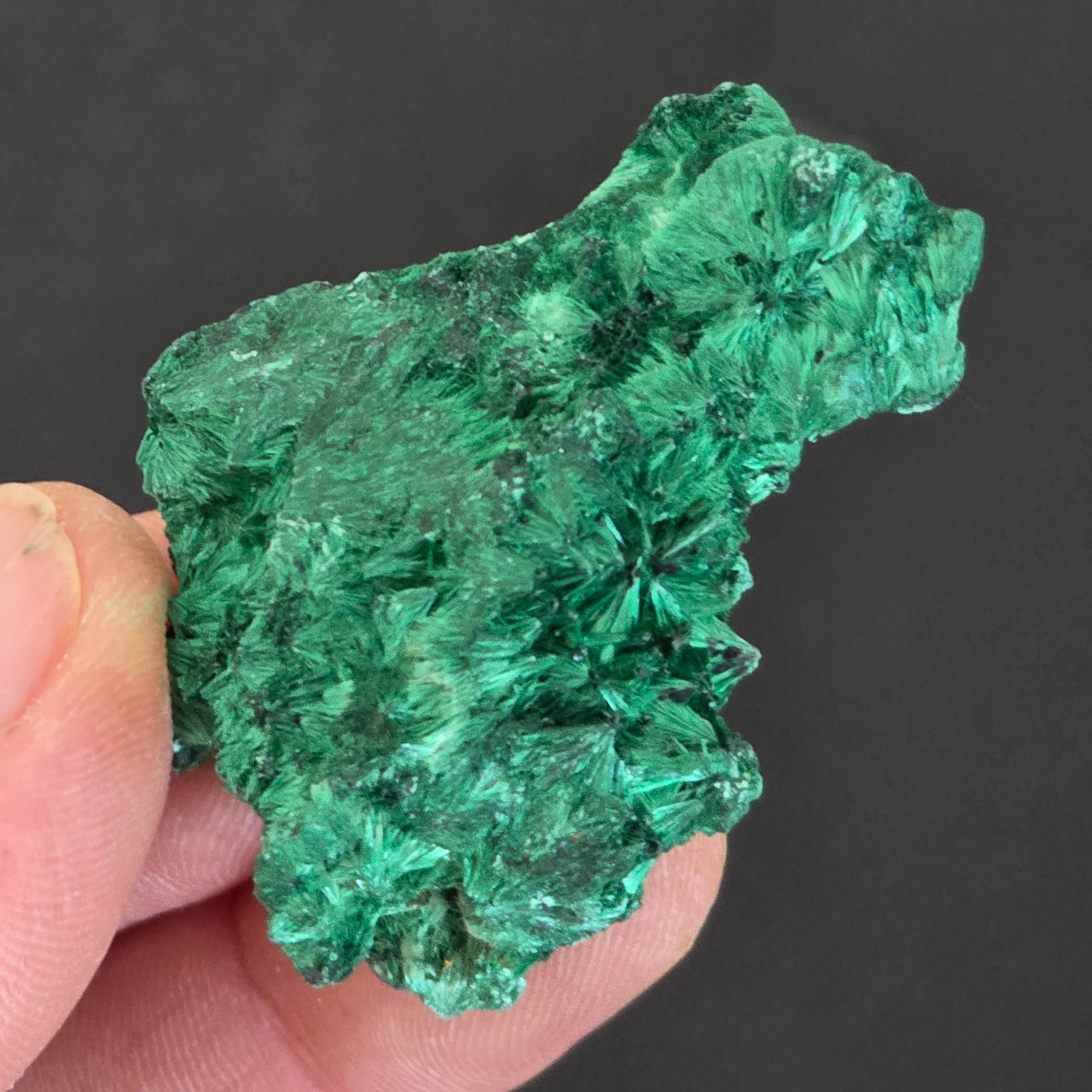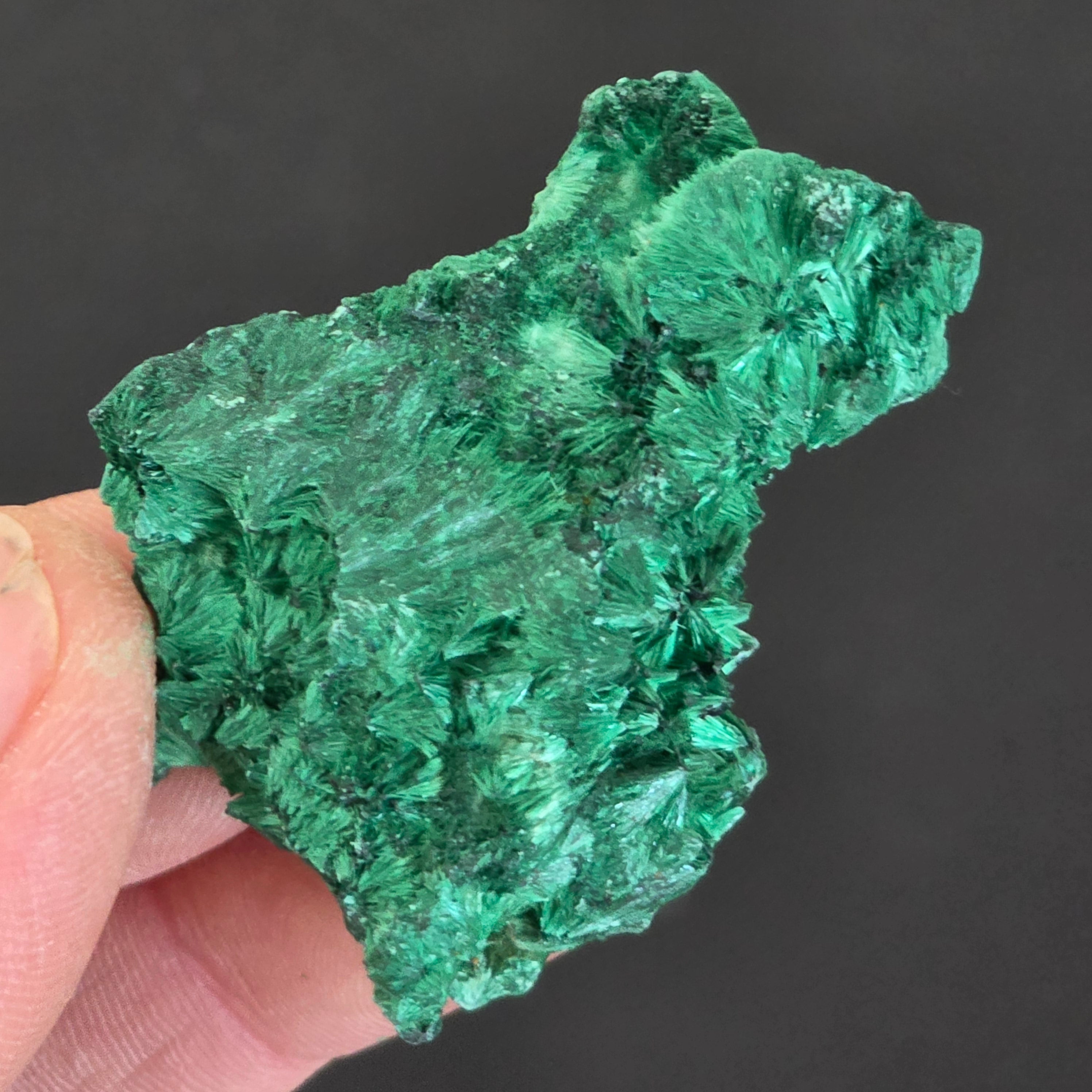 "Malachitul mătăsos" este o formă a pietrei semiprețioase malachit care prezintă o textură și un aspect mătăsos.