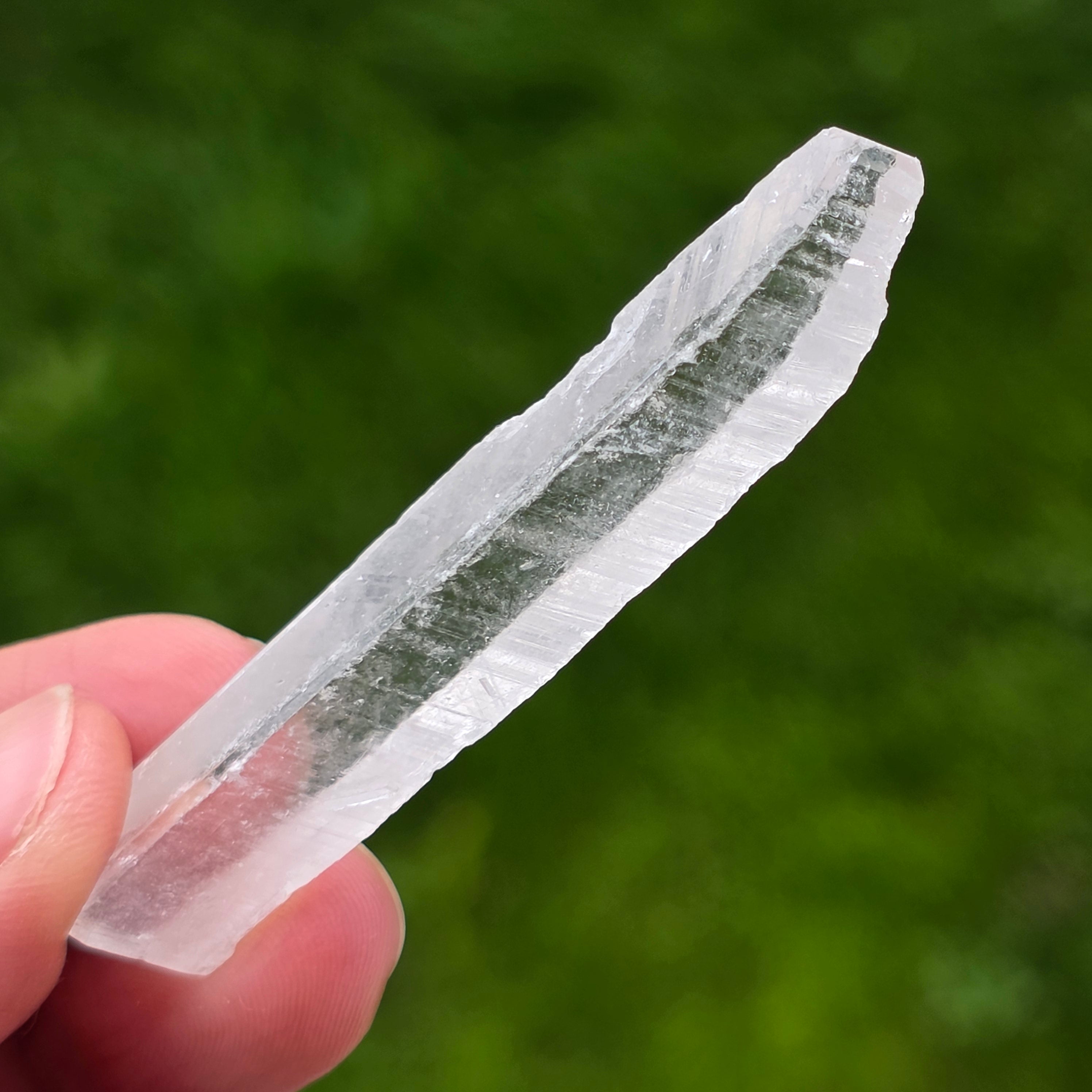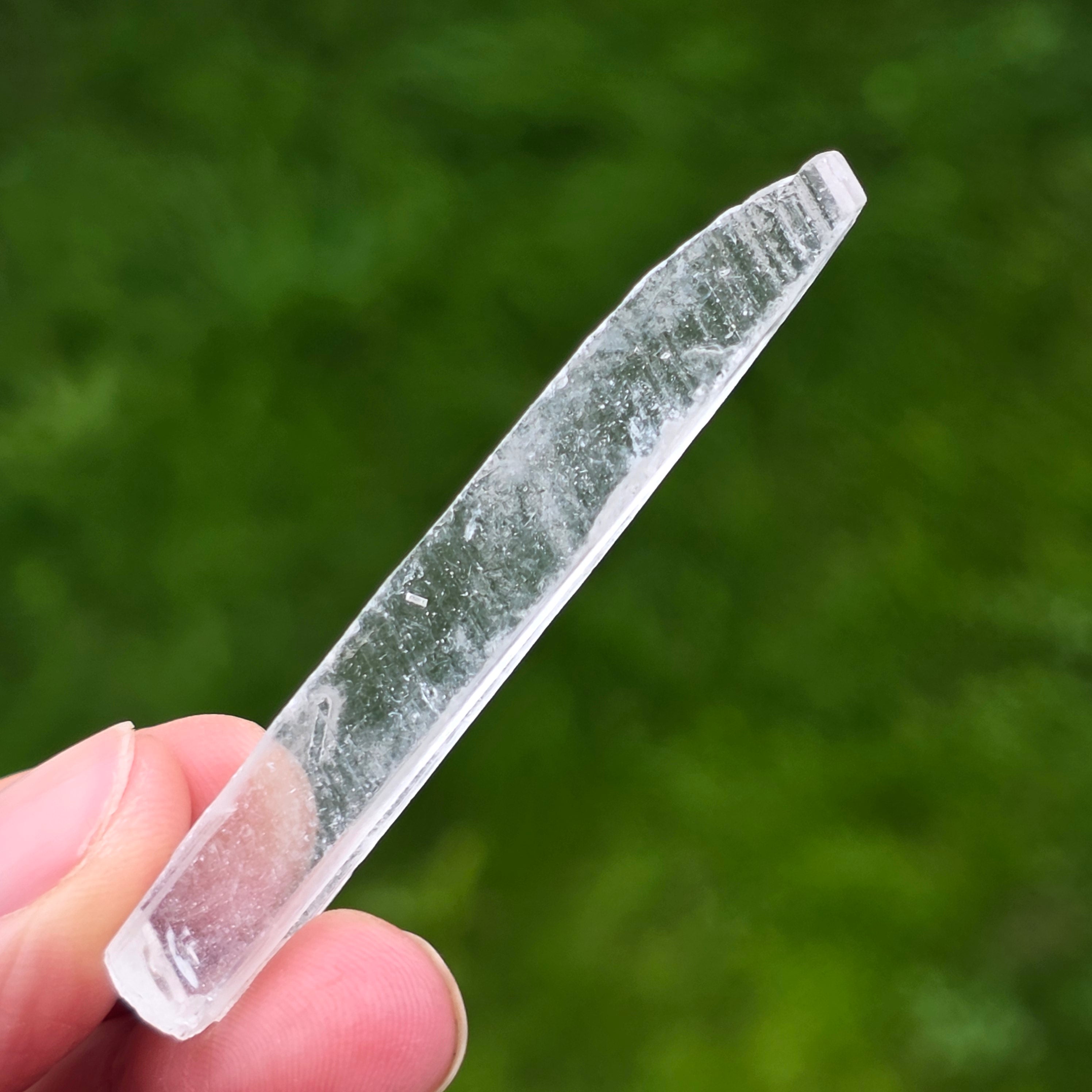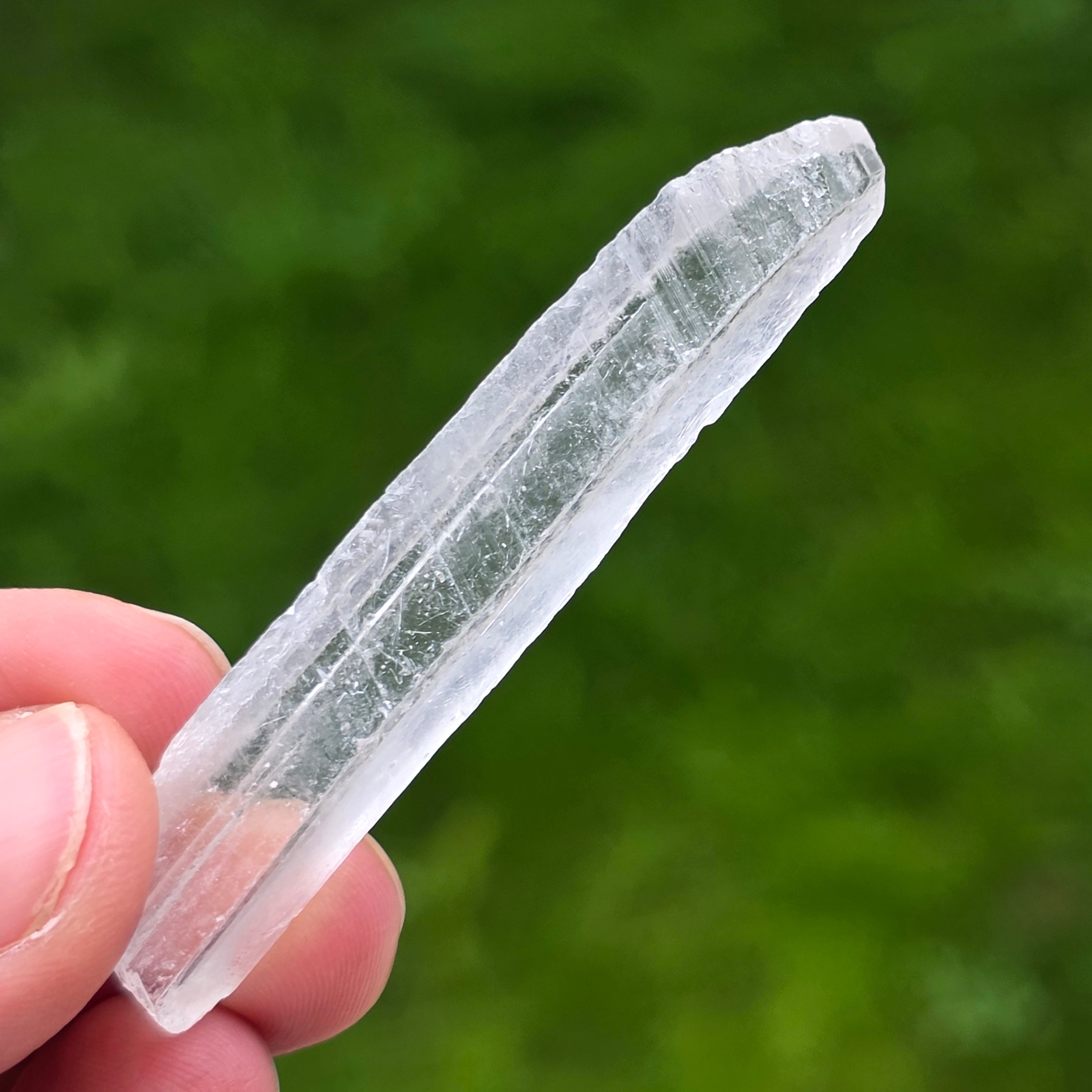 Cristalele se prezintă sub formă prismatică, subțire, cu terminații clare, având o transparență ridicată și un luciu discret, aproape sticlos. Forma lor alungită și modul de creștere conferă fiecărui exemplar un caracter aerat, fragil vizual, dar bine definit mineralogic. Aspectul curat și uniform face ca aceste piese să fie extrem de apreciate în vitrinele de colecție.