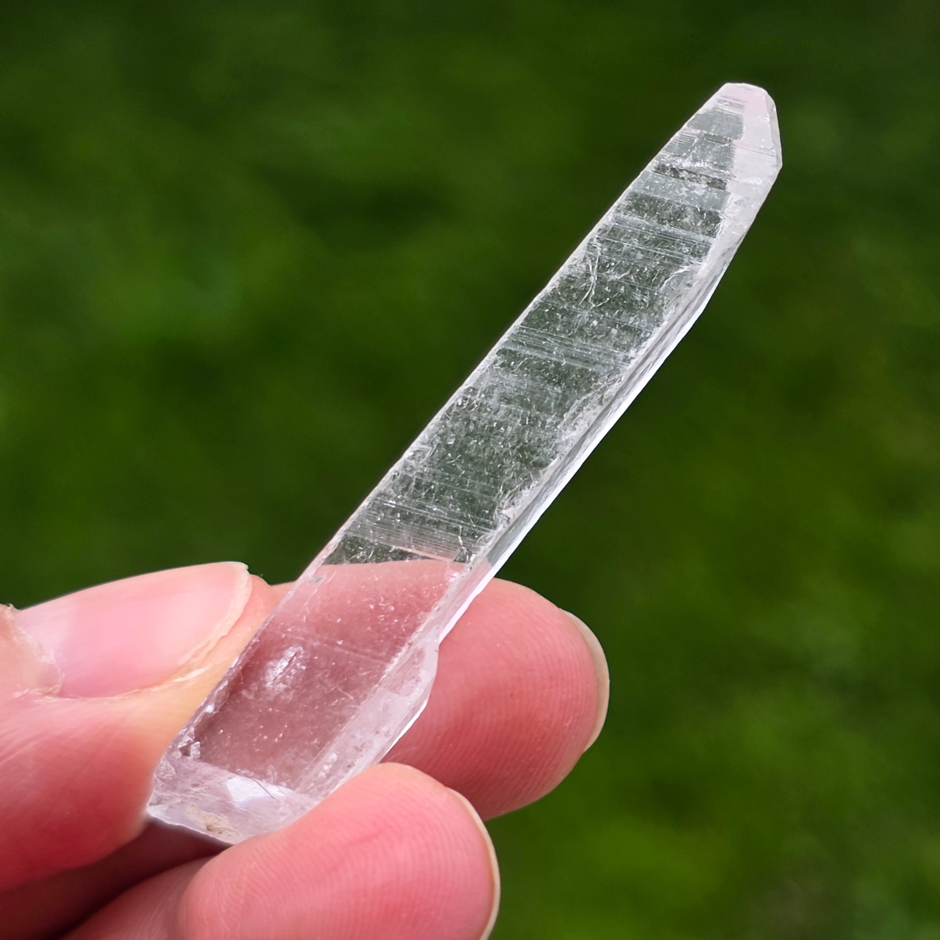 Cristalele se prezintă sub formă prismatică, subțire, cu terminații clare, având o transparență ridicată și un luciu discret, aproape sticlos. Forma lor alungită și modul de creștere conferă fiecărui exemplar un caracter aerat, fragil vizual, dar bine definit mineralogic. Aspectul curat și uniform face ca aceste piese să fie extrem de apreciate în vitrinele de colecție.