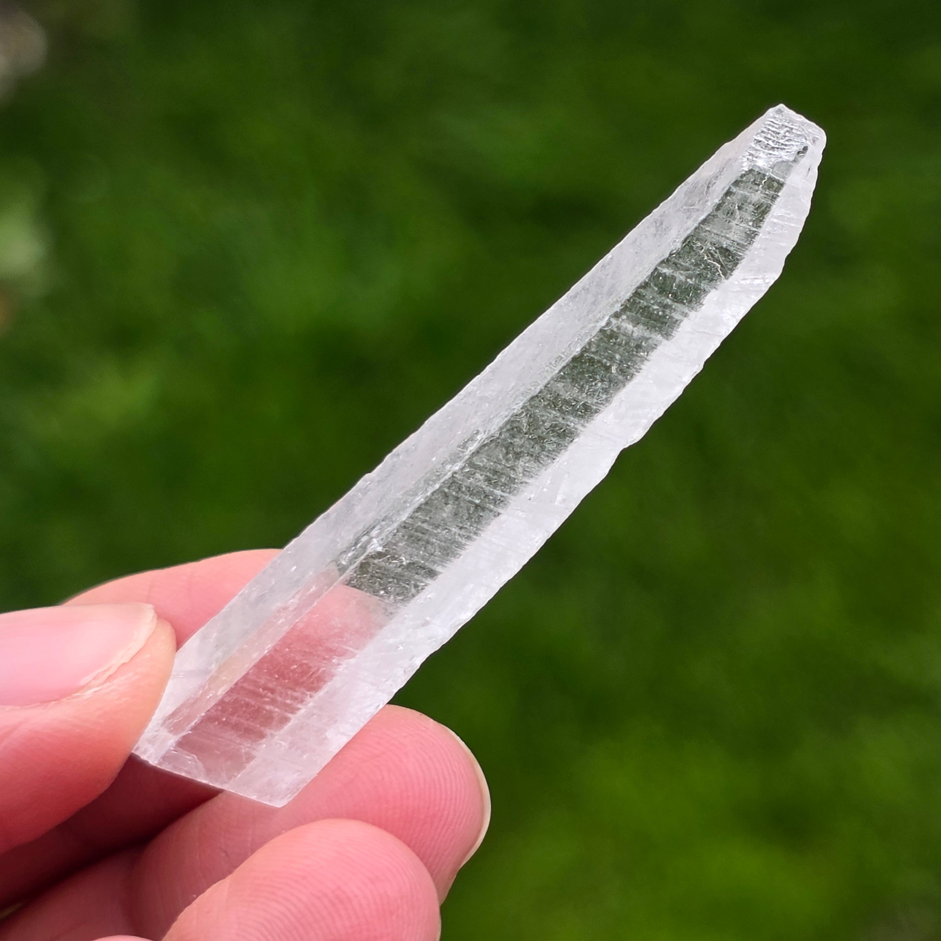 Cristalele se prezintă sub formă prismatică, subțire, cu terminații clare, având o transparență ridicată și un luciu discret, aproape sticlos. Forma lor alungită și modul de creștere conferă fiecărui exemplar un caracter aerat, fragil vizual, dar bine definit mineralogic. Aspectul curat și uniform face ca aceste piese să fie extrem de apreciate în vitrinele de colecție.