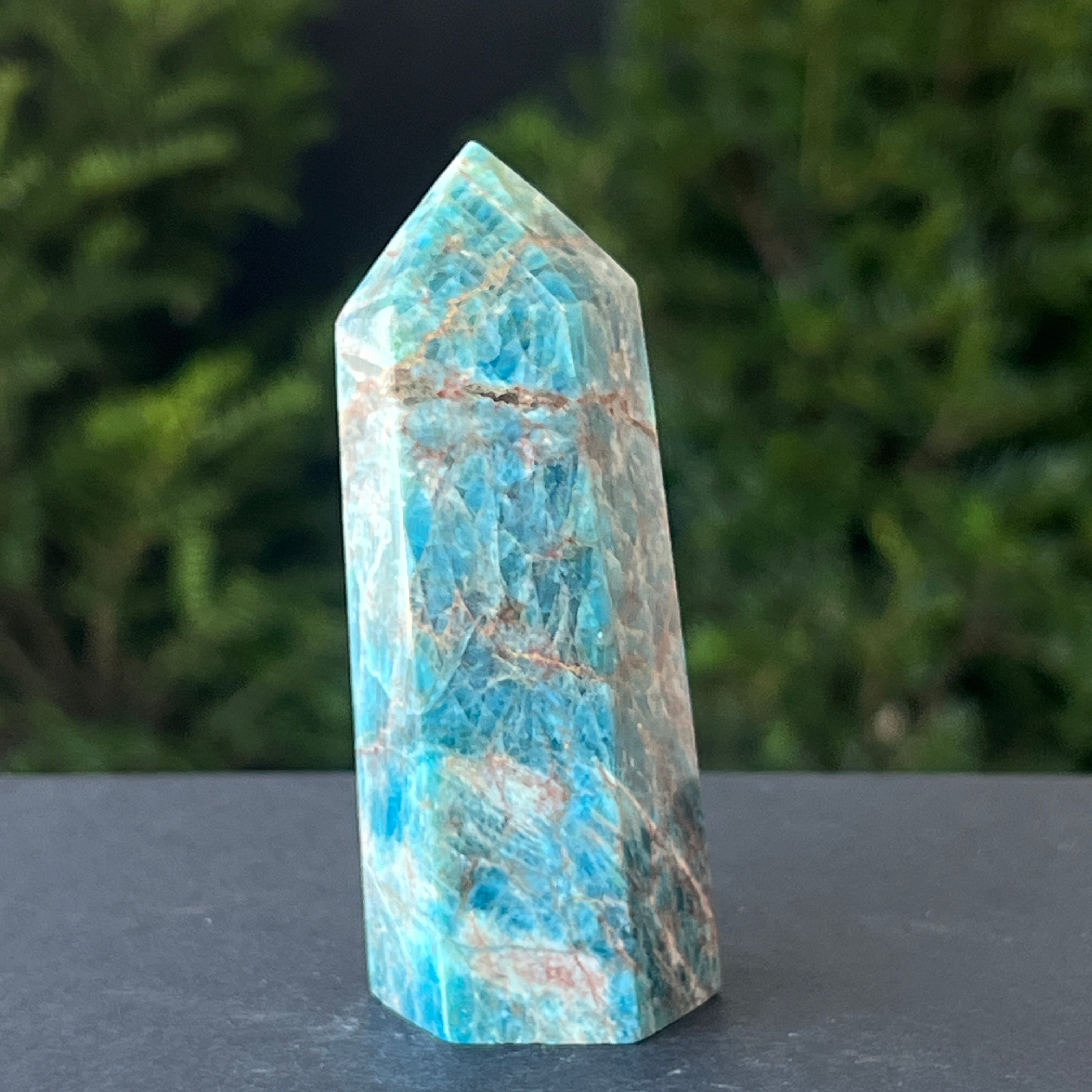 Apatitul albastru este recunoscut pentru faptul că ajută la îmbunătățirea comunicării și a exprimării, fiind util pentru cei care suferă de anxietate socială sau de frică de a vorbi în public. De asemenea, se spune că această piatră ajută la sporirea creativității și a înțelegerii.