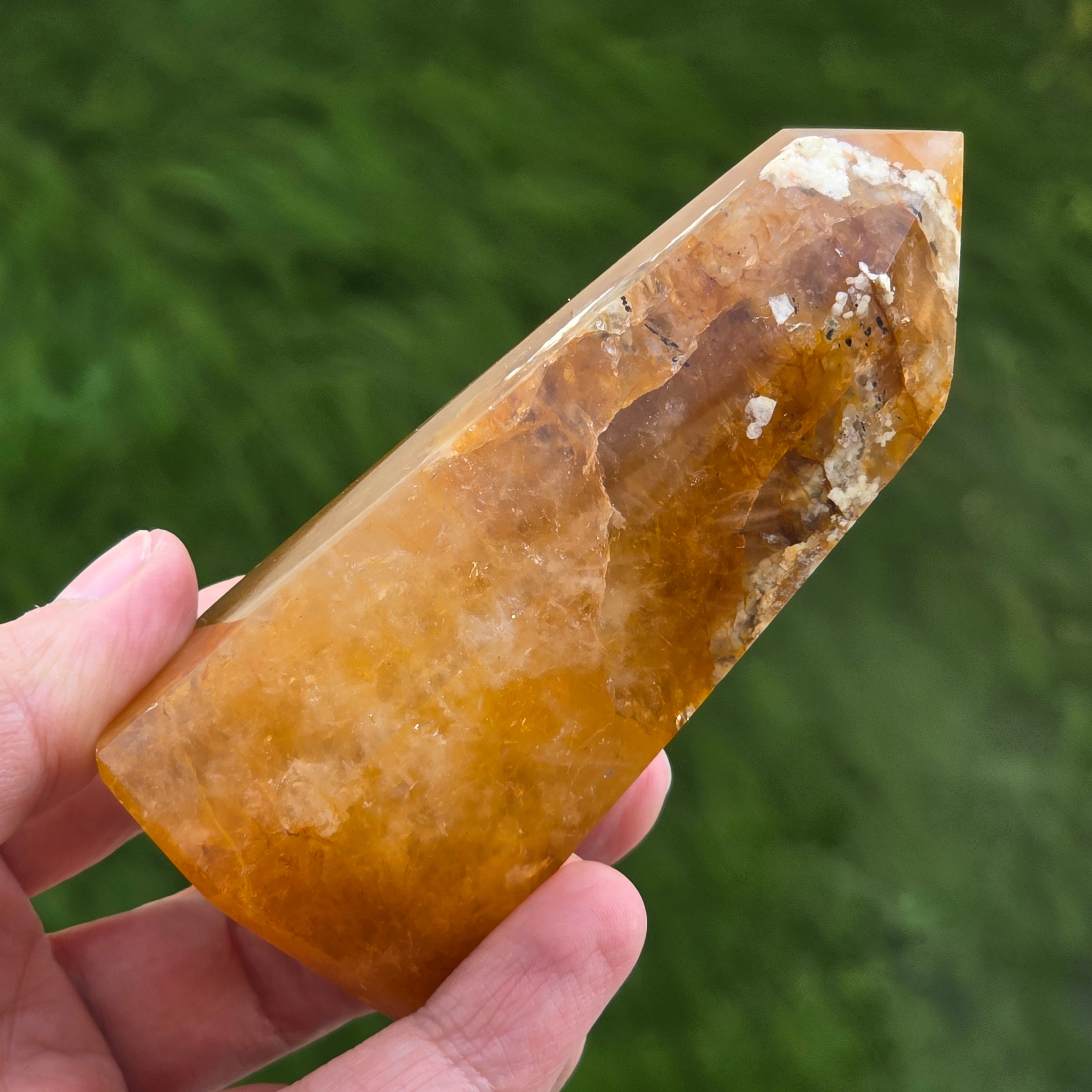 Golden Healer, denumit si cuart lamaie sau cuart auriu este o piatra asociată în special cu chakra coroanei și chakra inimii. Energia sa caldă și luminoasă poate ajuta la eliberarea tensiunii, stresului și anxietății, oferind în schimb o stare de calm și echilibru interior.