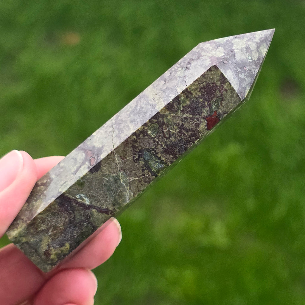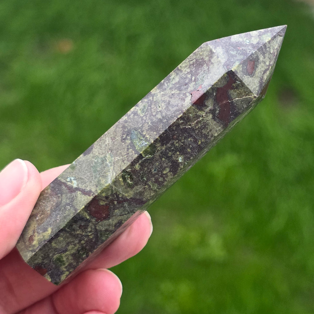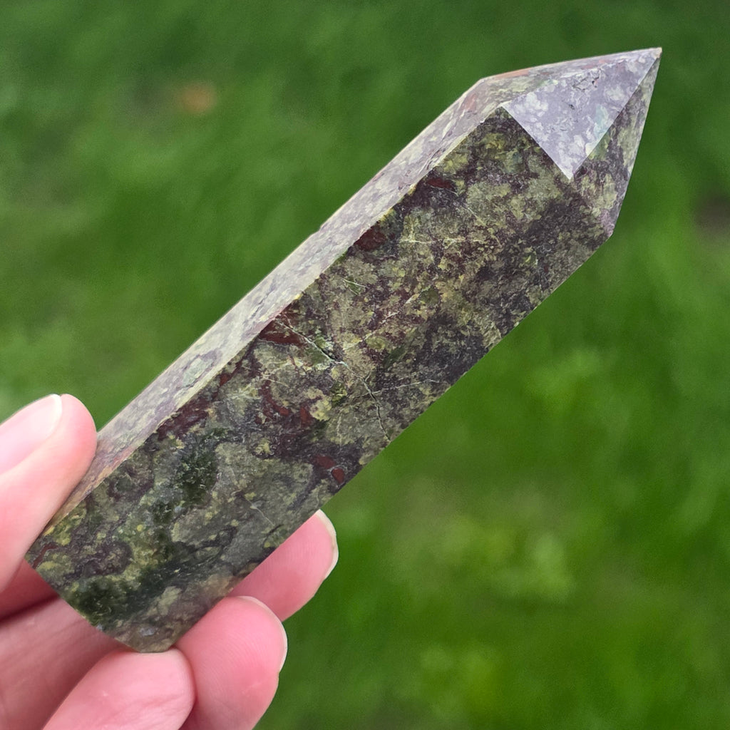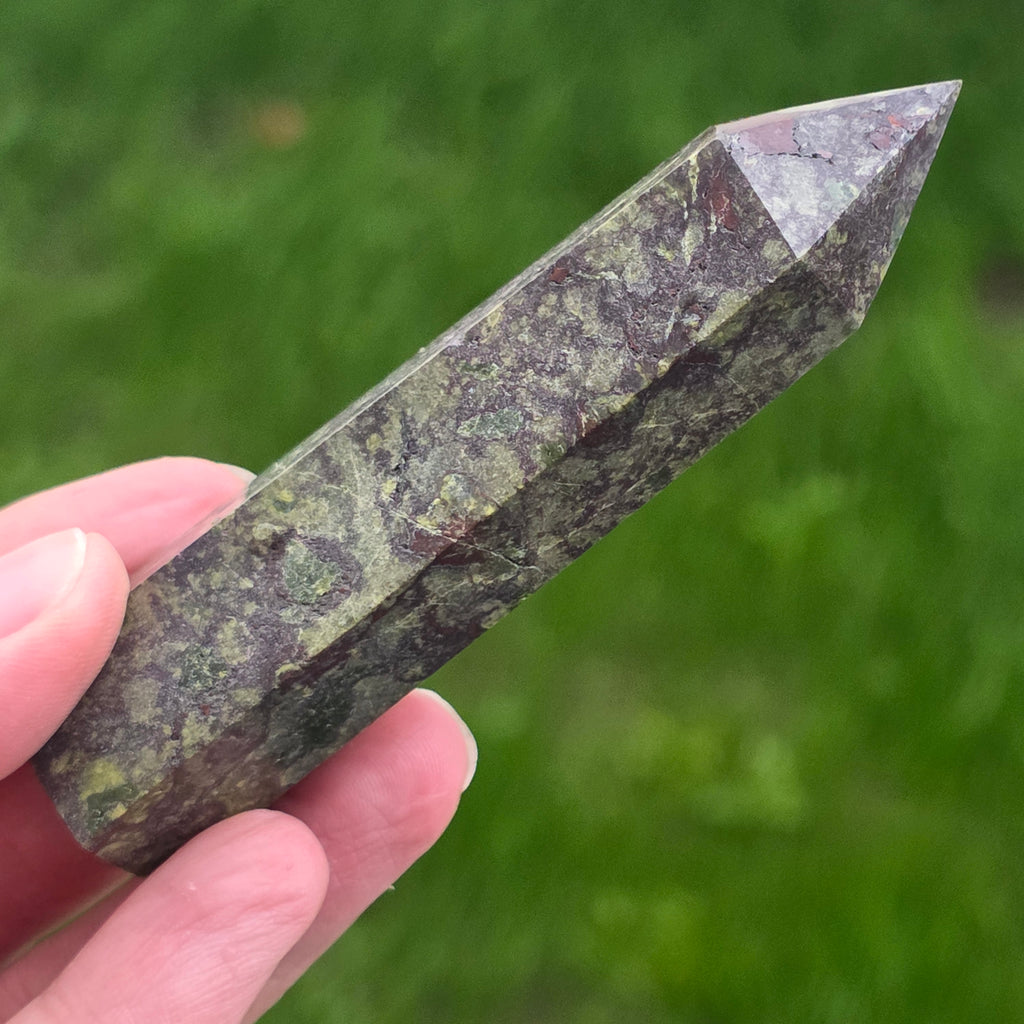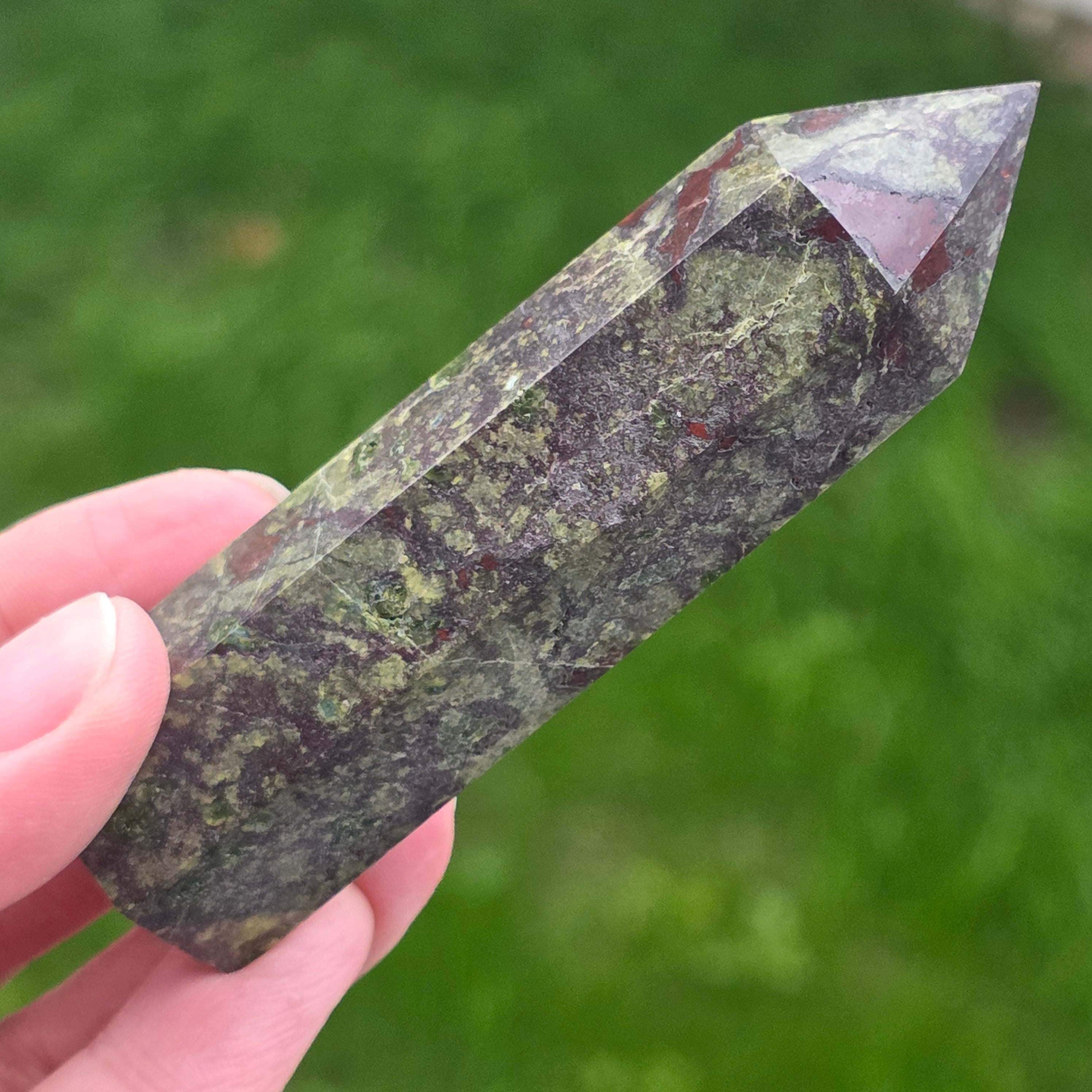 Descriere - Obelisc mini piatra sangele dragonului (epidot&piedmontit) m4