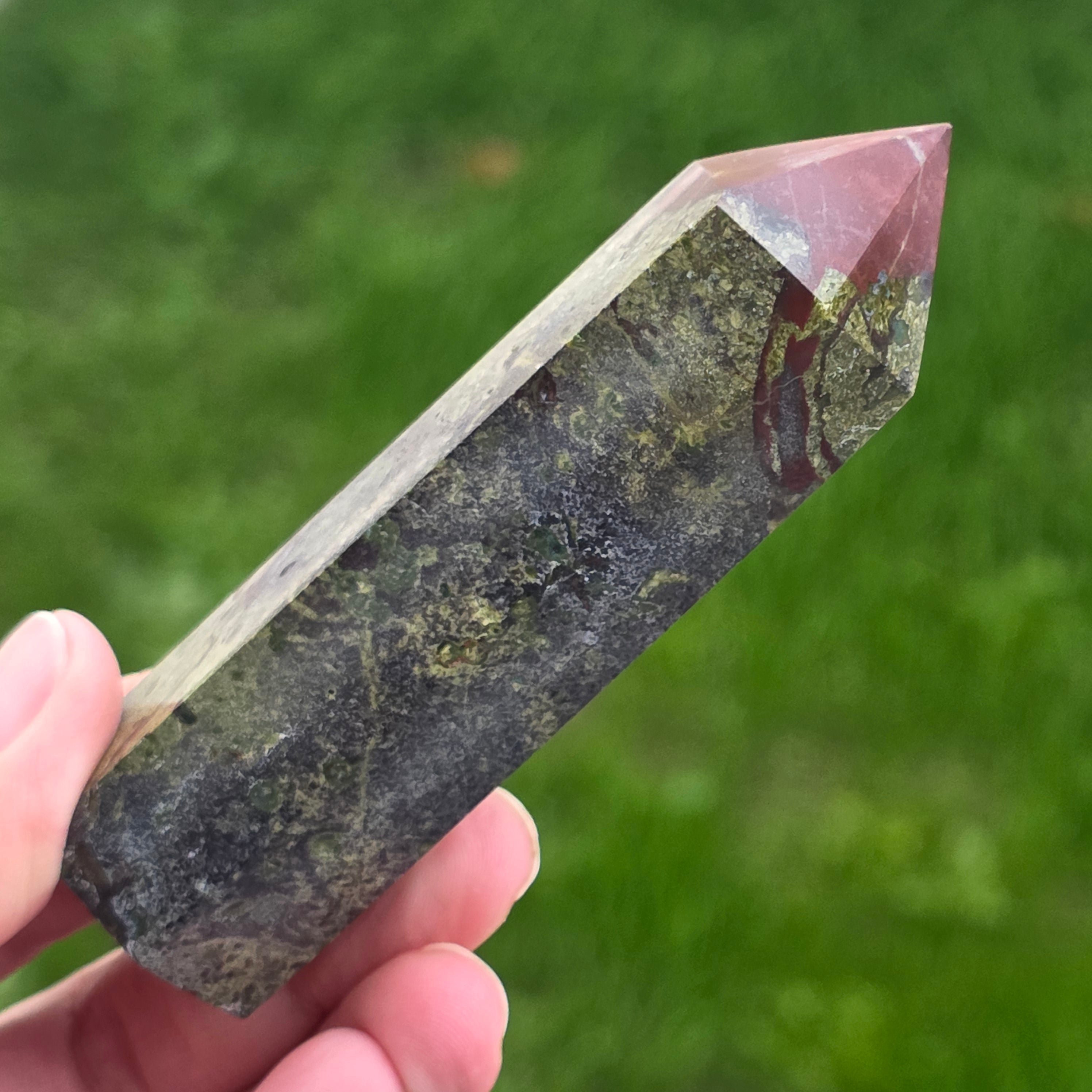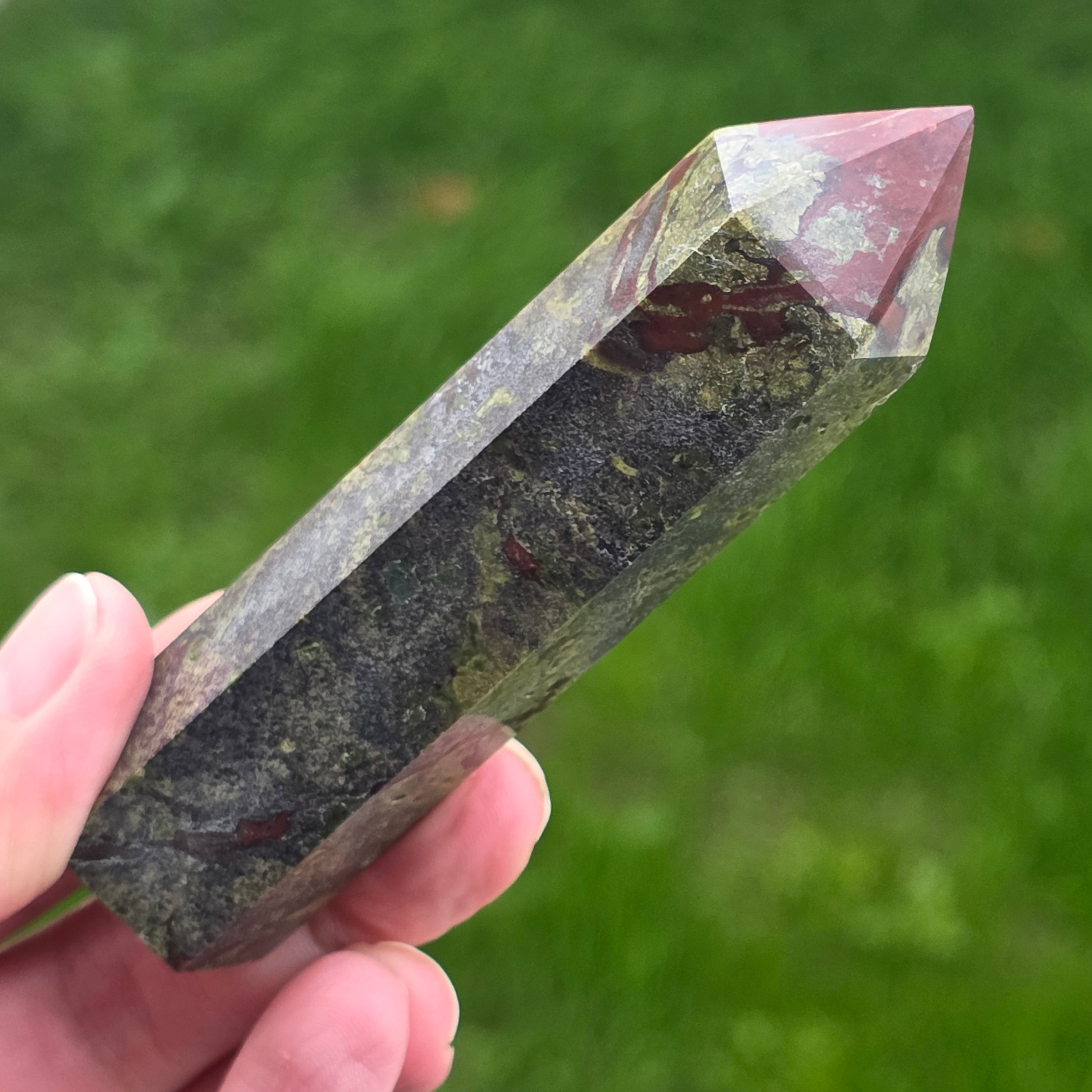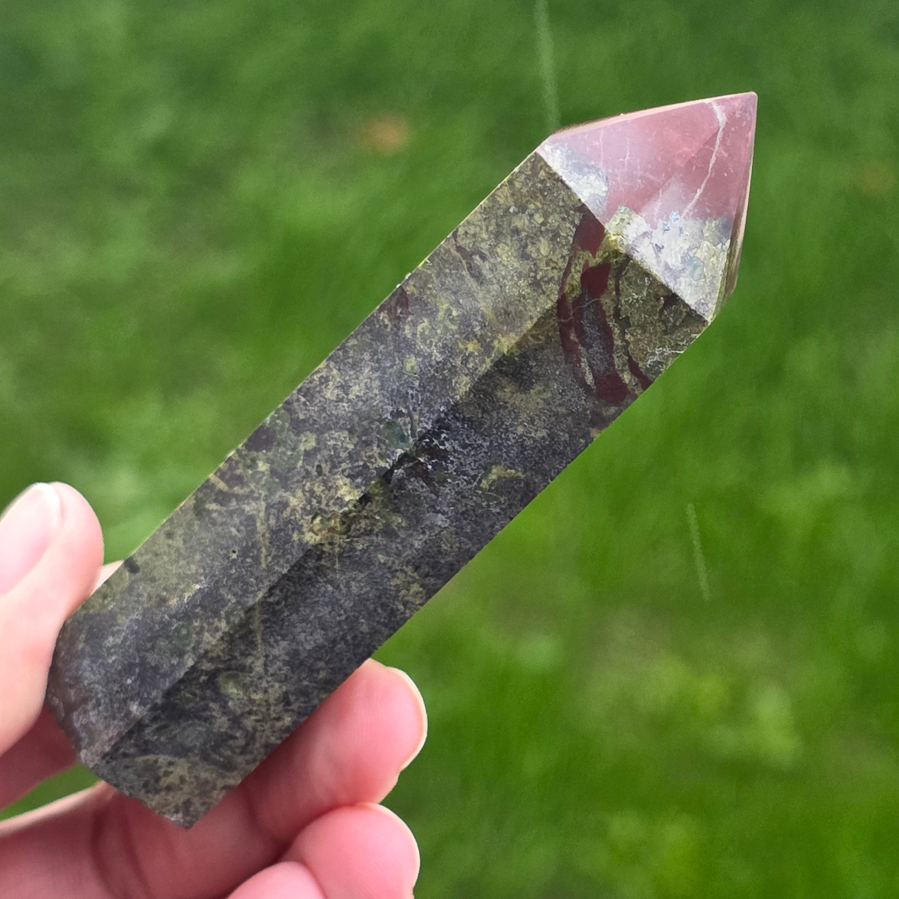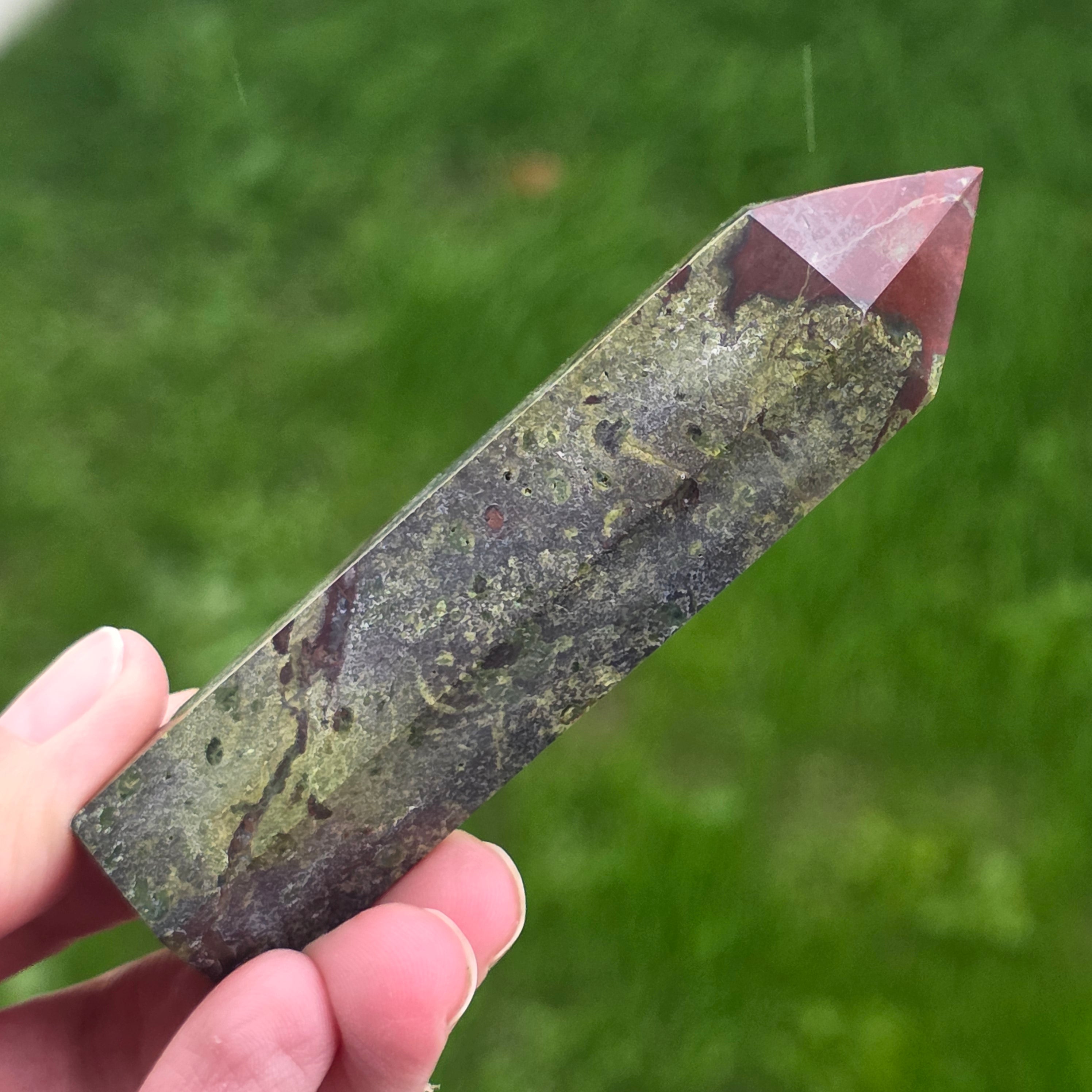 Descriere - Obelisc mini piatra sangele dragonului (epidot&piedmontit) | Model 12
