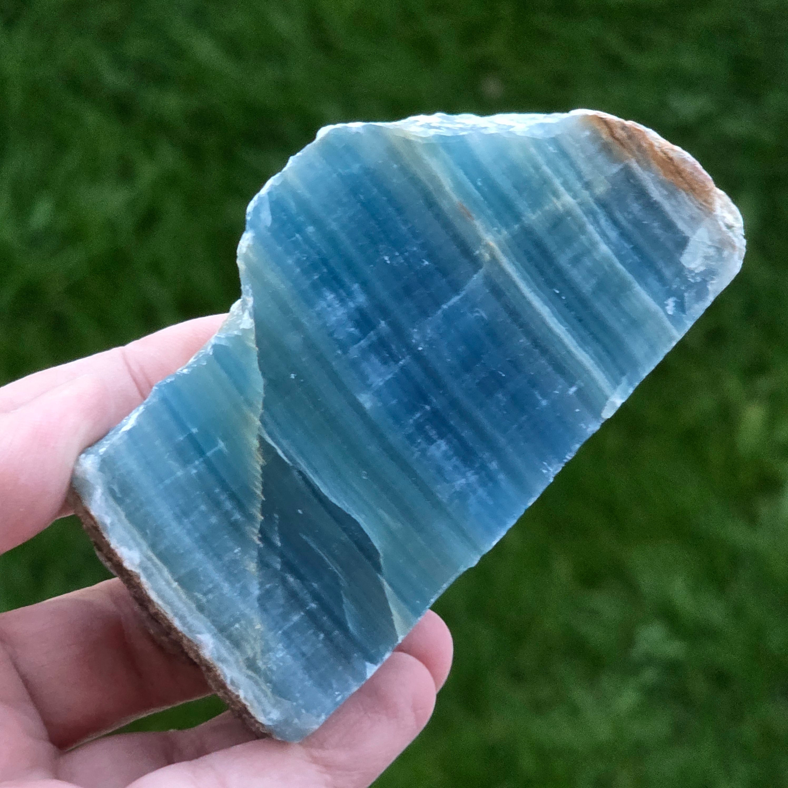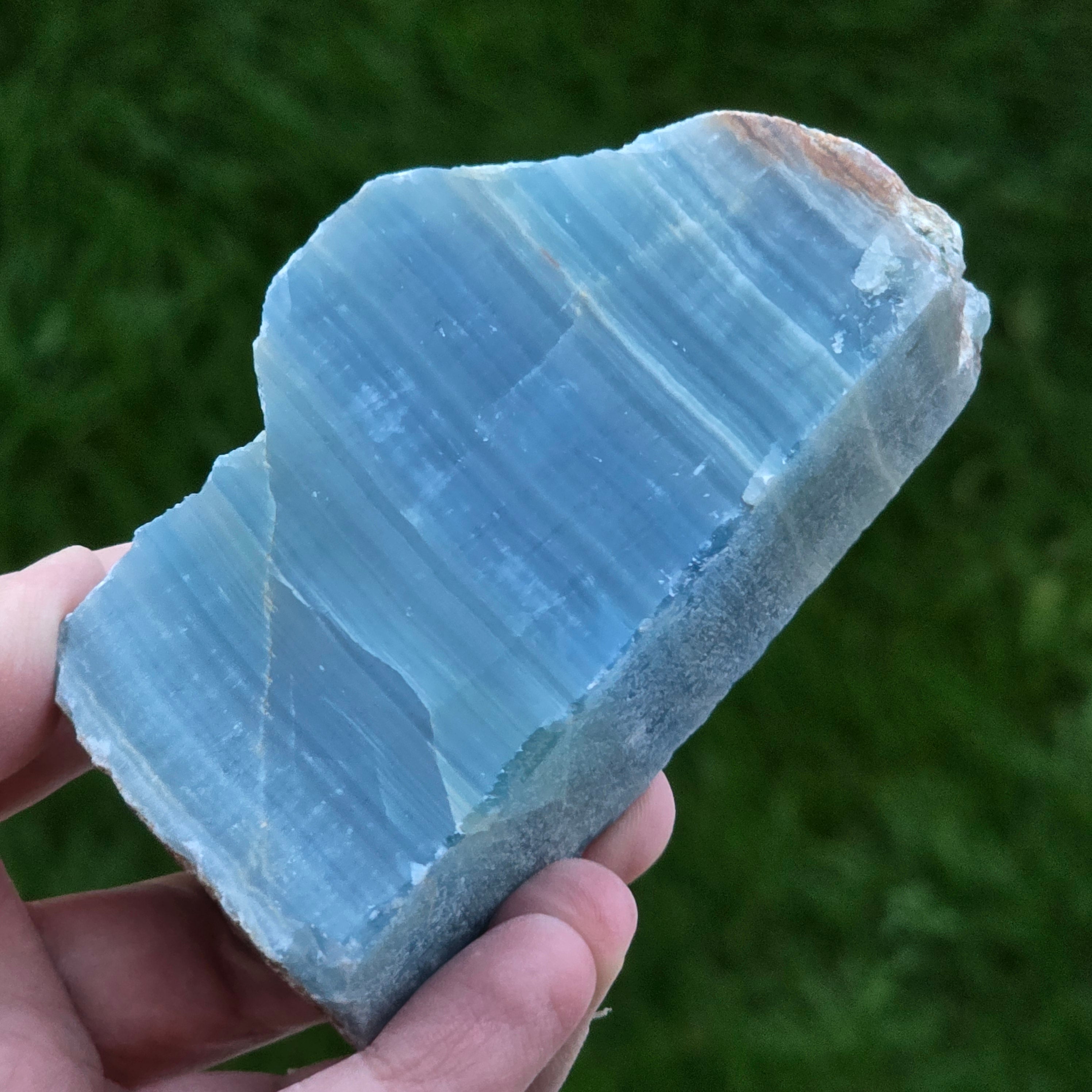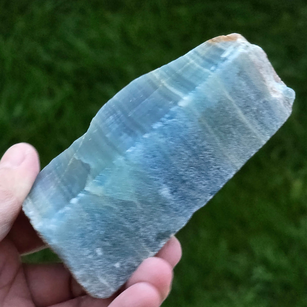 Descriere - Onix albastru piatra bruta polisata pe o față | Model 3