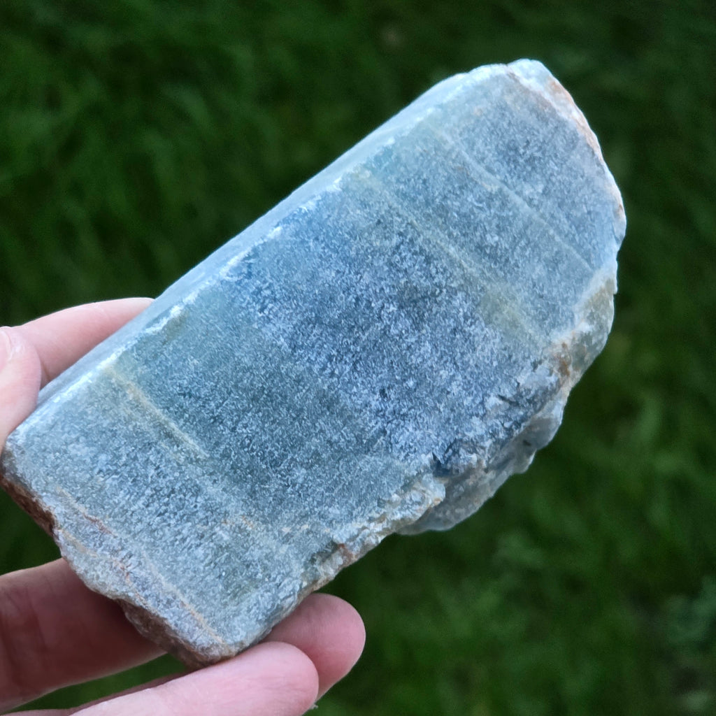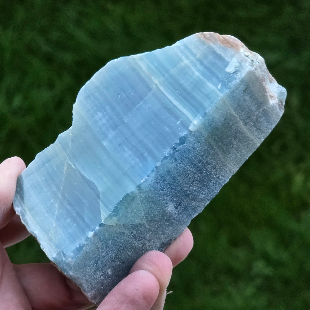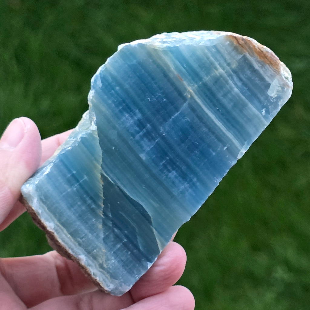 Descriere - Onix albastru piatra bruta polisata pe o față | Model 3
