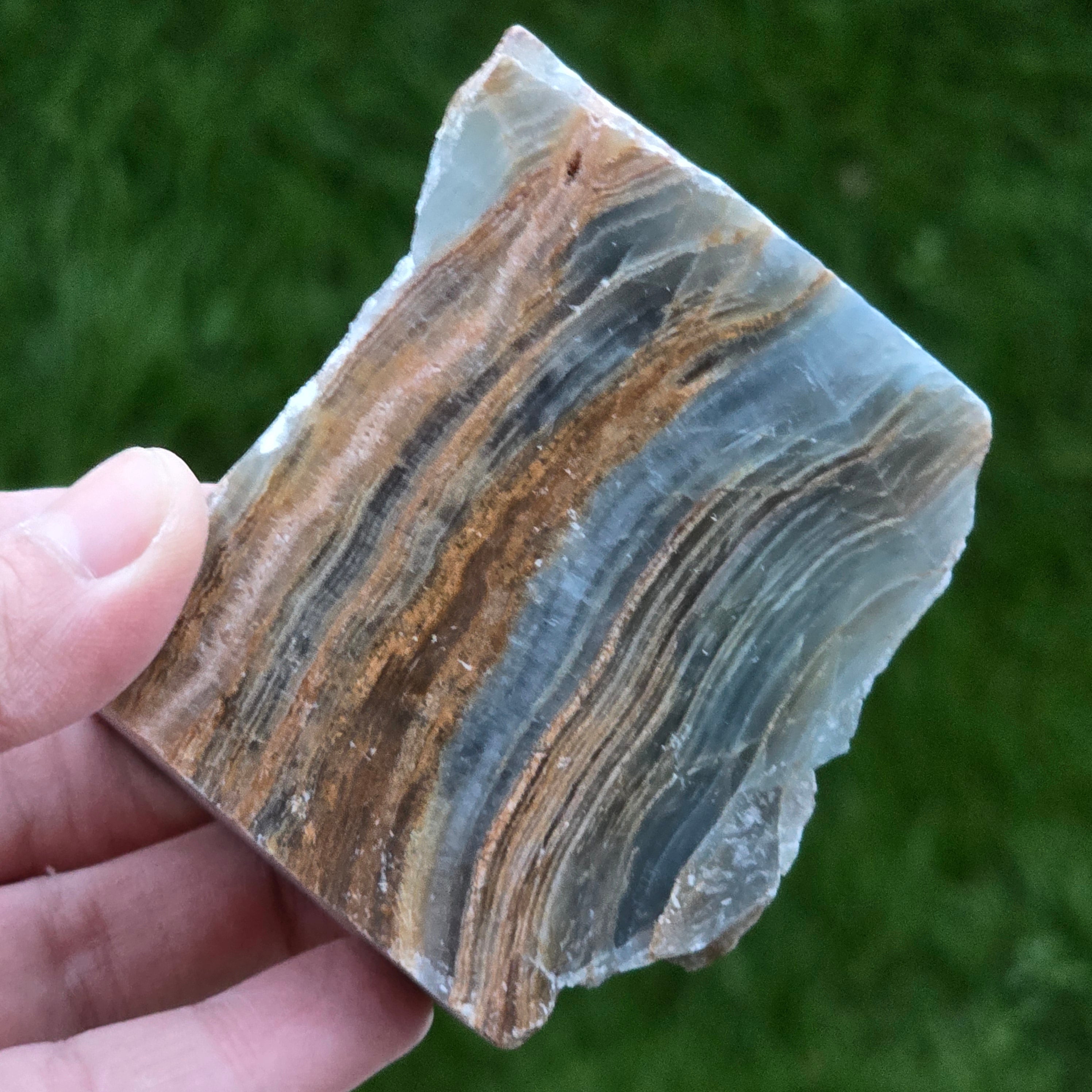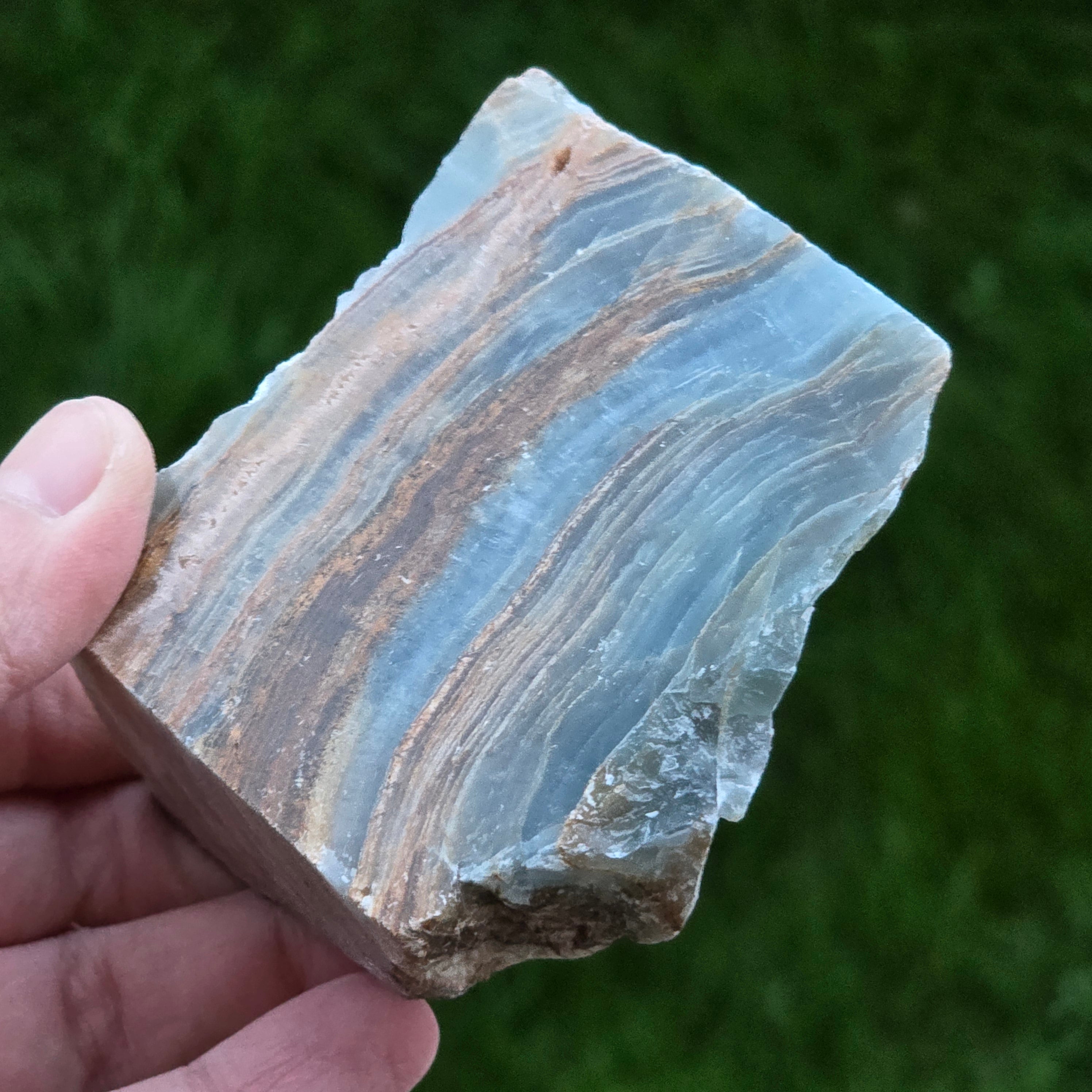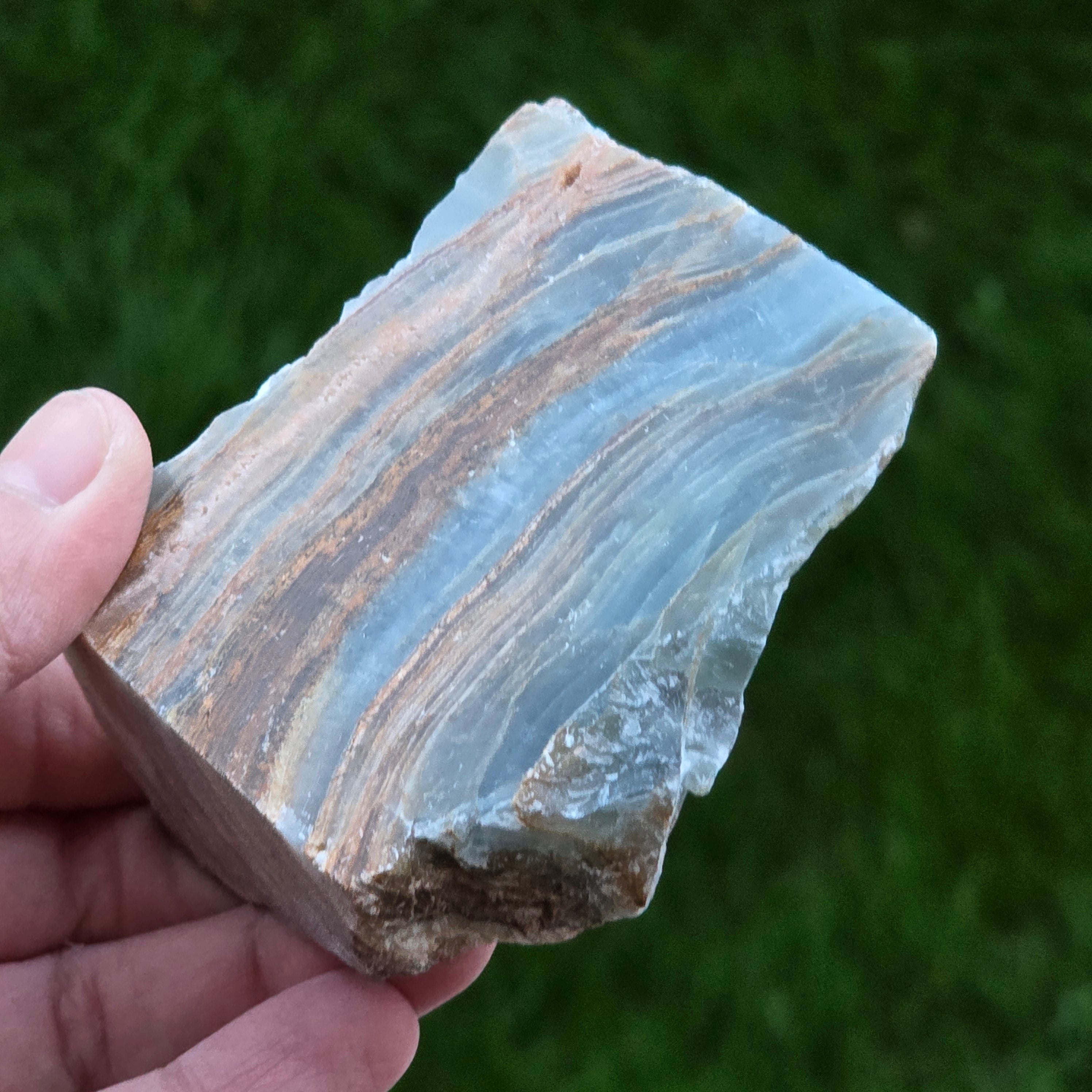 Onix albastru piatra bruta polisata pe o față | Model 6