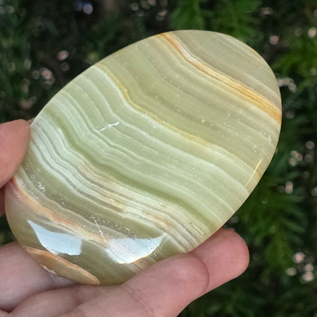 Ținut între palme, acest palmstone din onix verde natural devine un aliat al echilibrului, un memento tăcut al armoniei dintre trup și spirit. Este ideal pentru meditație, relaxare sau pur și simplu ca obiect decorativ cu energie blândă și rafinată.