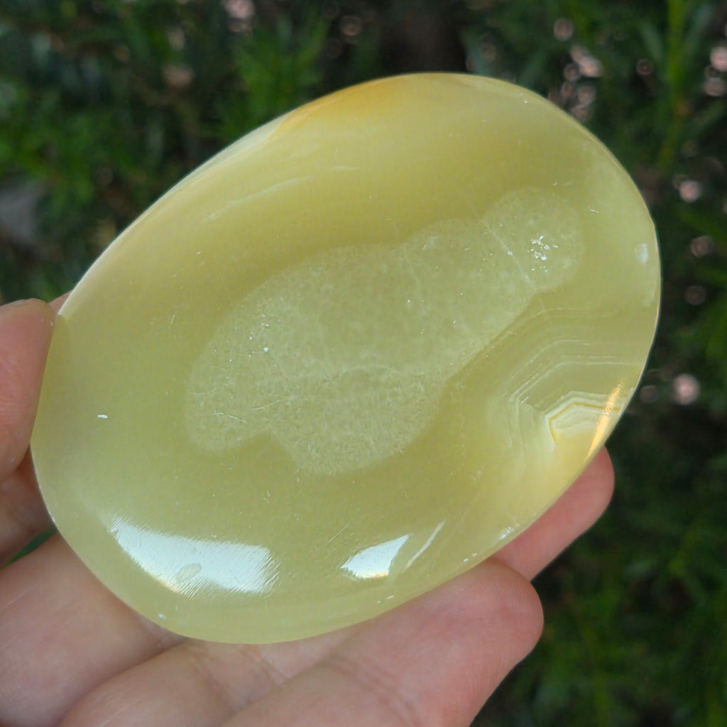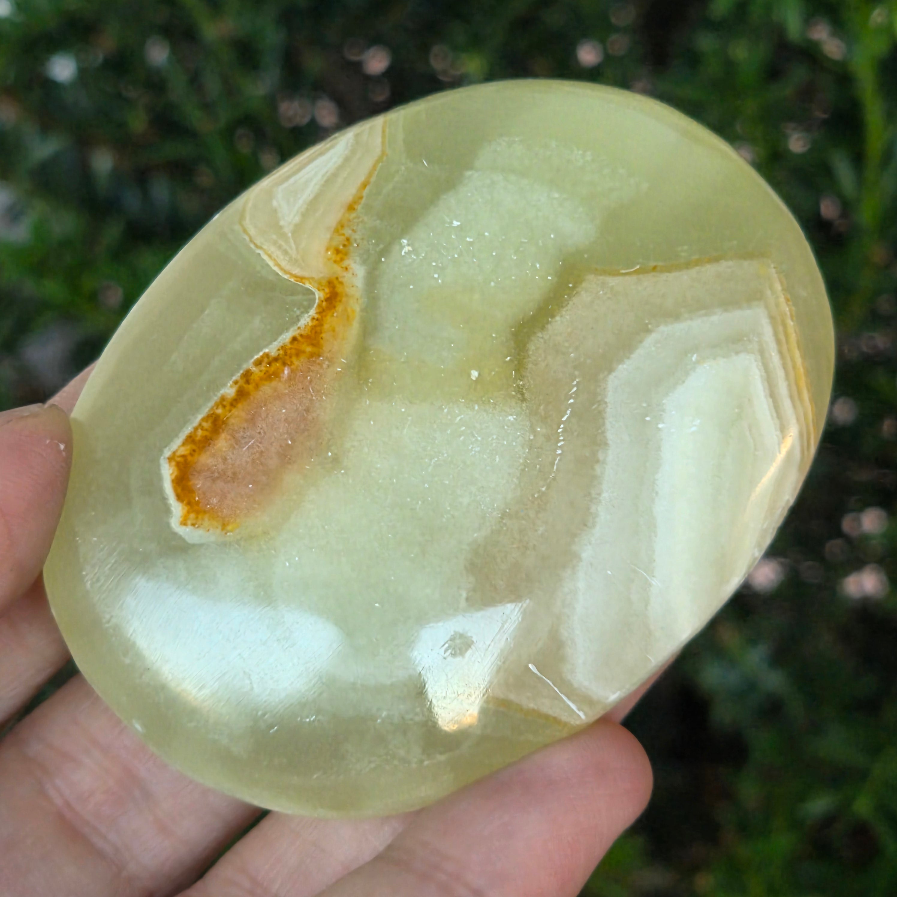 Ținut între palme, acest palmstone din onix verde natural devine un aliat al echilibrului, un memento tăcut al armoniei dintre trup și spirit. Este ideal pentru meditație, relaxare sau pur și simplu ca obiect decorativ cu energie blândă și rafinată.