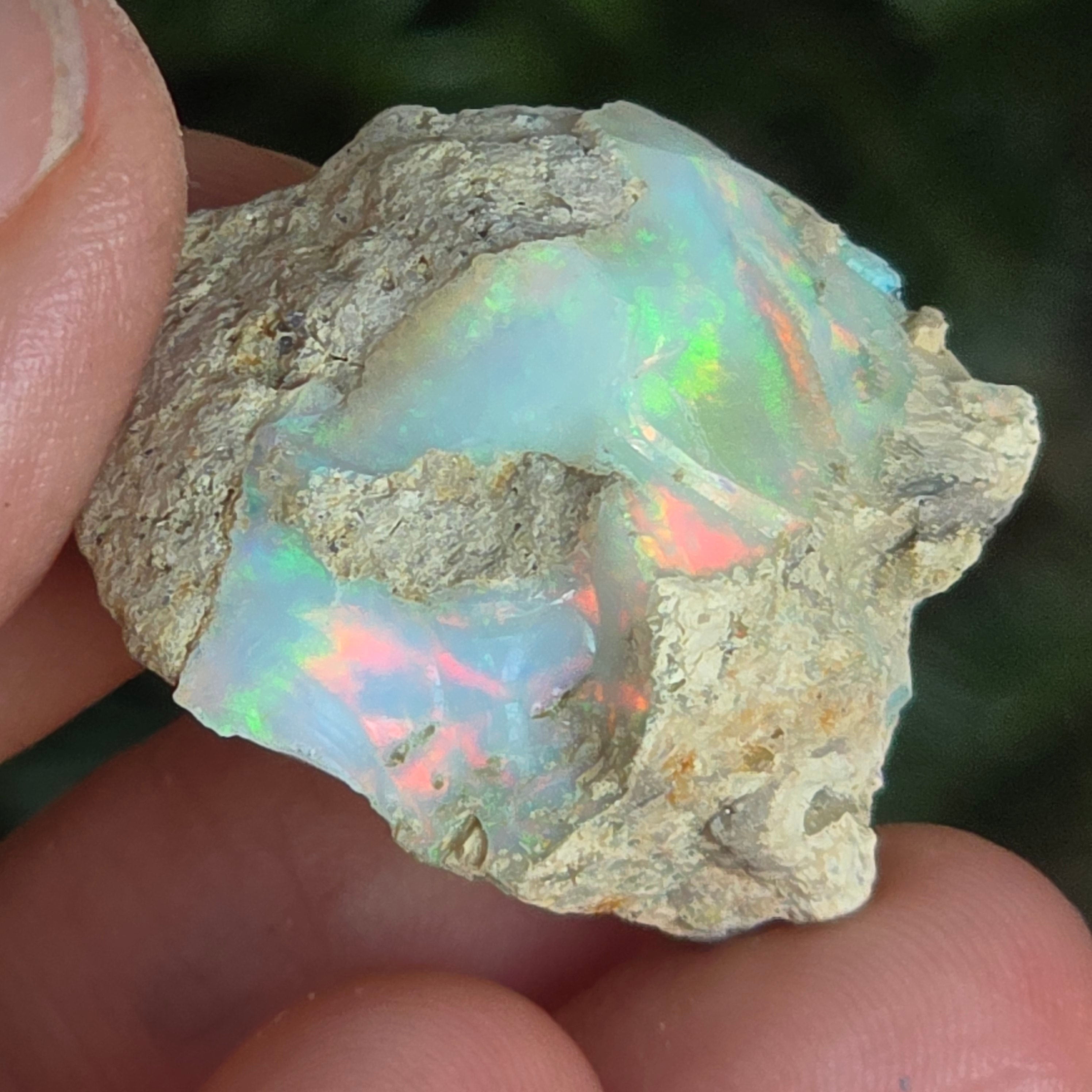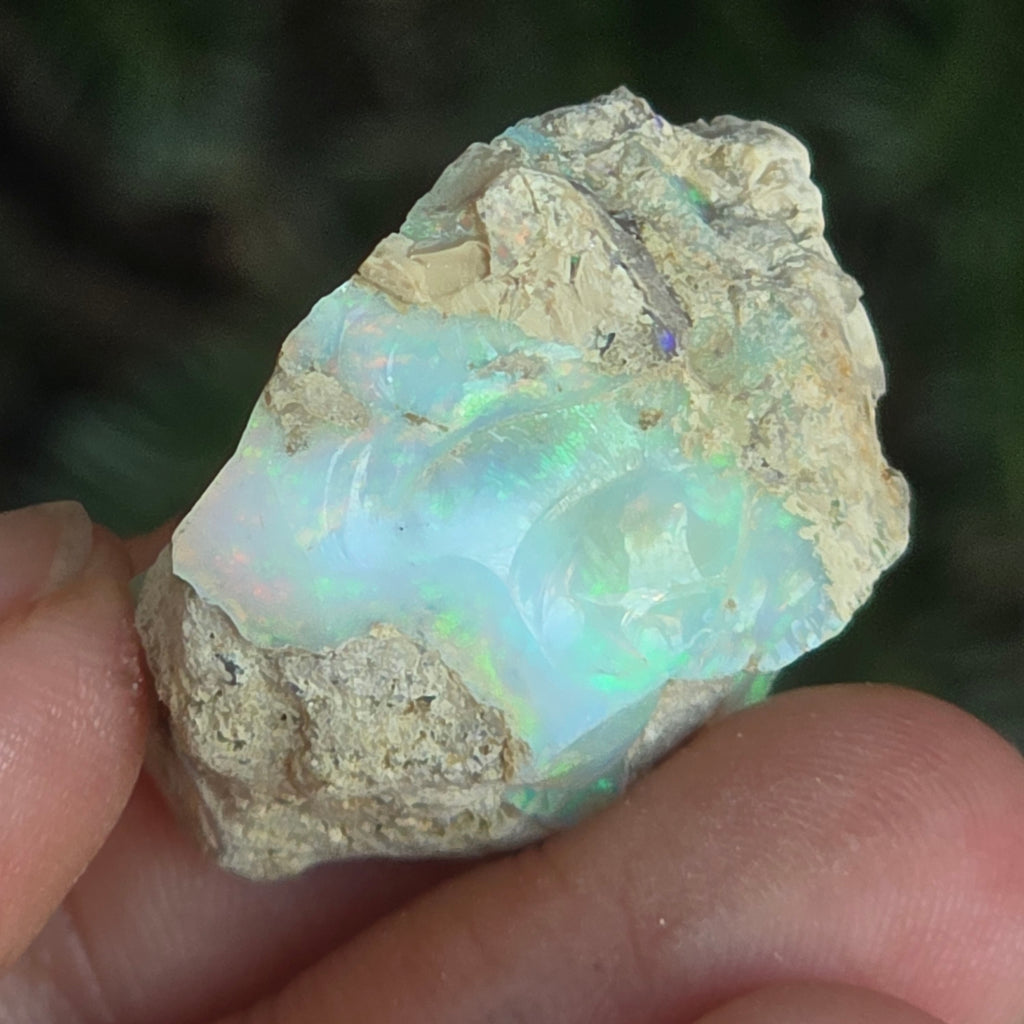 Când este privit în lumină, fiecare reflex devine un dans de culori — roșu aprins, verde electric, auriu topit — o manifestare naturală a fenomenului optic numit joc de culoare, specific doar celor mai valoroase opale.