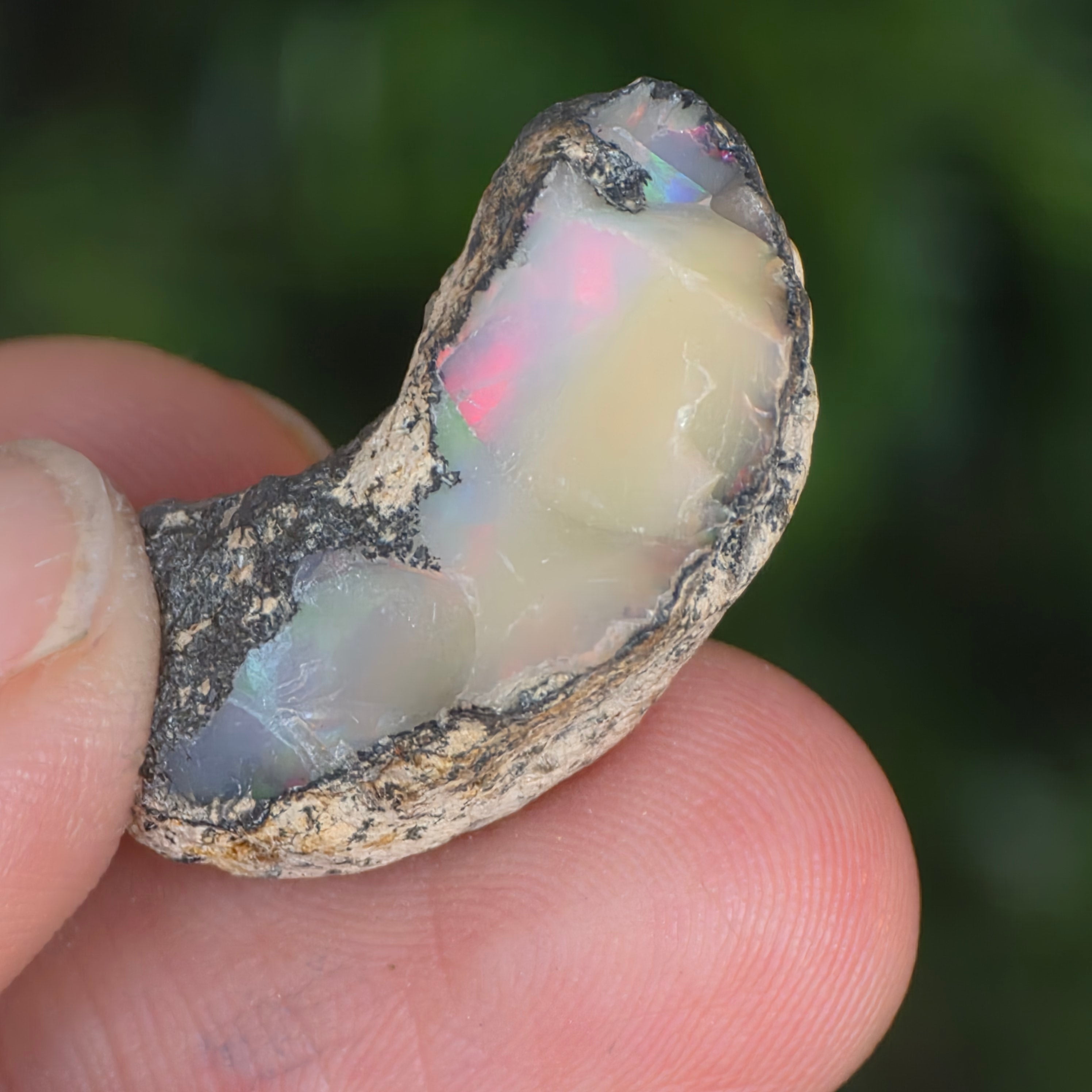 Când este privit în lumină, fiecare reflex devine un dans de culori — roșu aprins, verde electric, auriu topit — o manifestare naturală a fenomenului optic numit joc de culoare, specific doar celor mai valoroase opale.