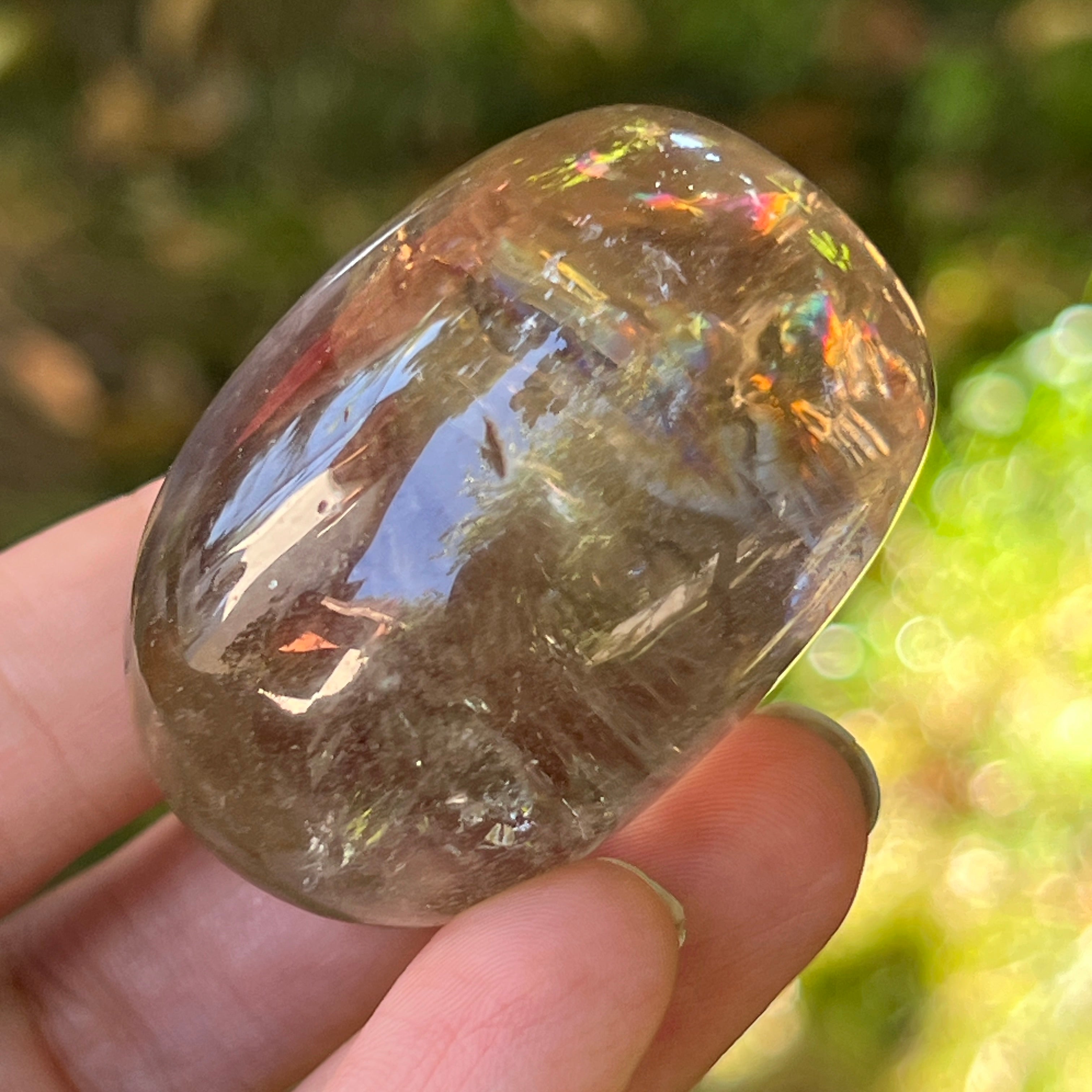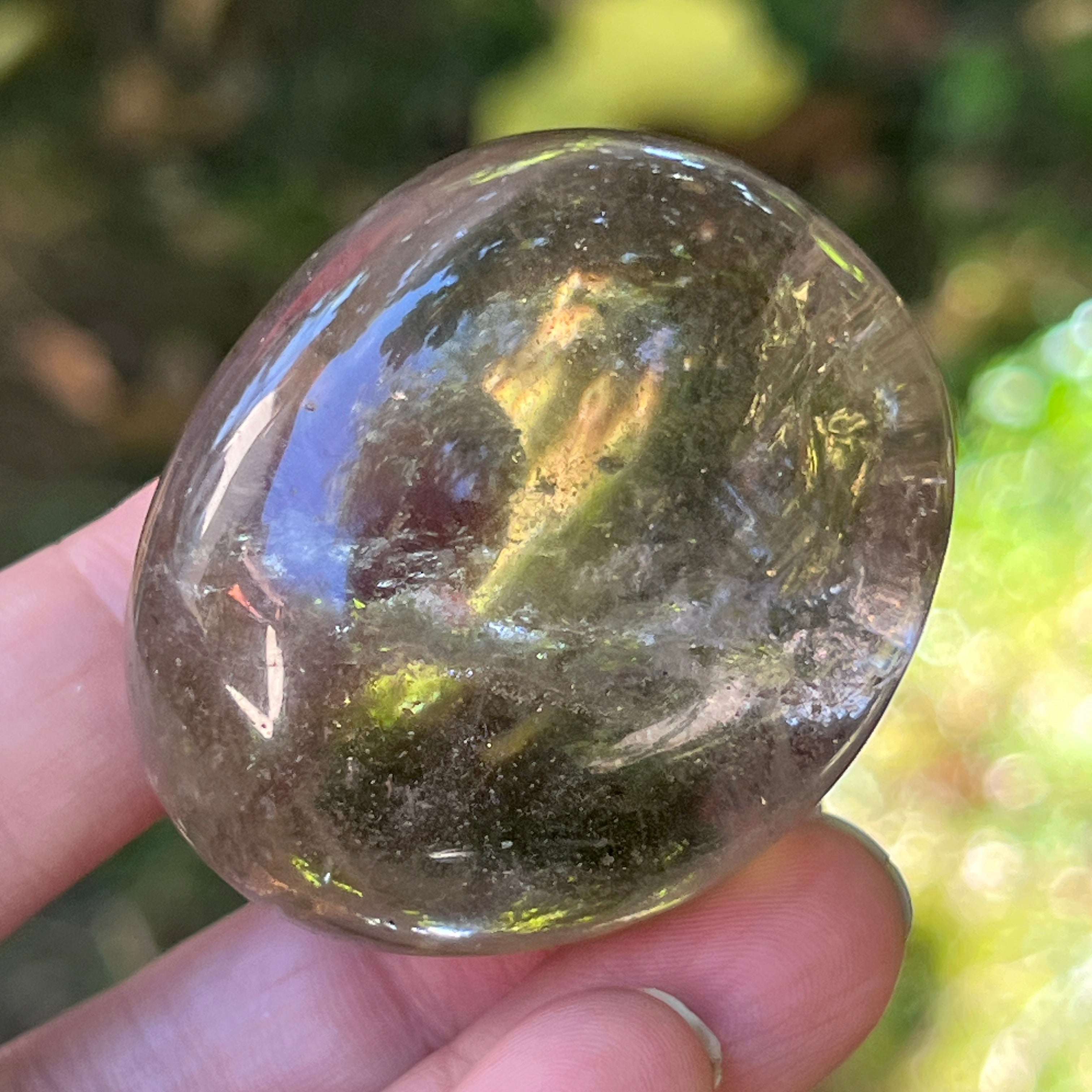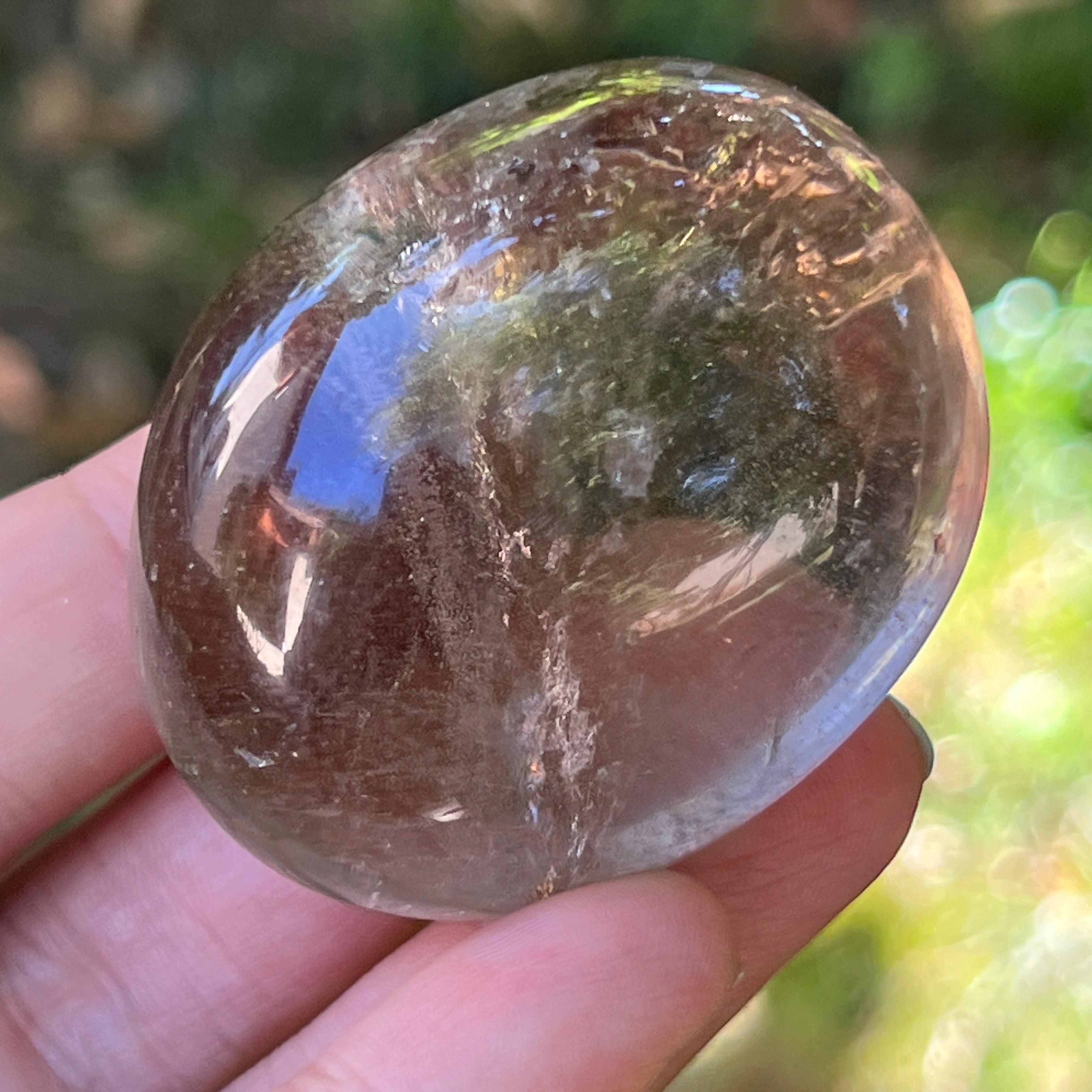 Modelat cu grijă pentru a se potrivi perfect în palmă, acest palmstone din cuarț fumuriu nu este doar o piatră – este un punct de sprijin în mijlocul agitației cotidiene. Cu nuanțele sale pământii, de la translucid brun până la tonuri mai adânci, cuarțul fumuriu poartă în el liniștea stâncilor vechi și răbdarea munților.
