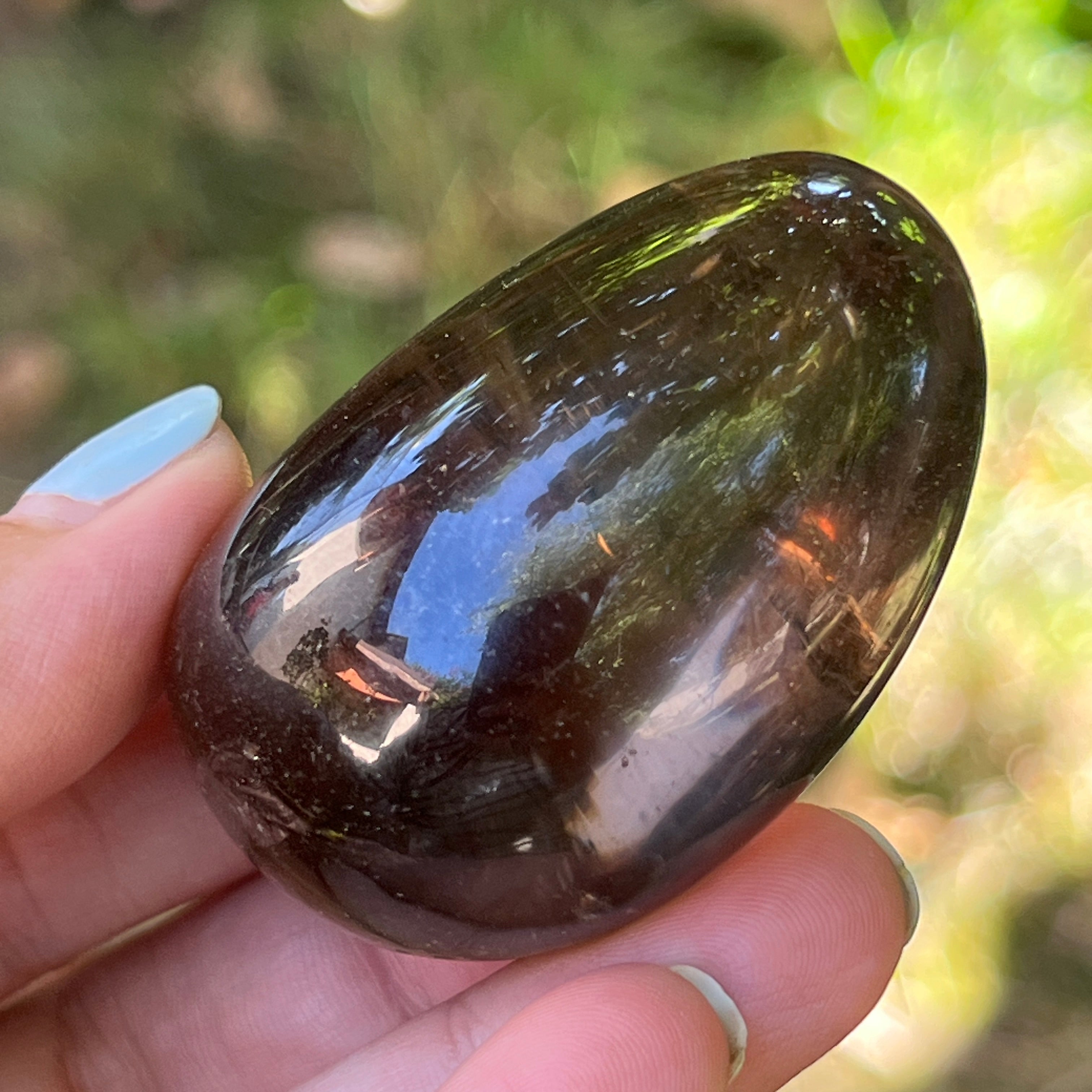 Modelat cu grijă pentru a se potrivi perfect în palmă, acest palmstone din cuarț fumuriu nu este doar o piatră – este un punct de sprijin în mijlocul agitației cotidiene. Cu nuanțele sale pământii, de la translucid brun până la tonuri mai adânci, cuarțul fumuriu poartă în el liniștea stâncilor vechi și răbdarea munților.
