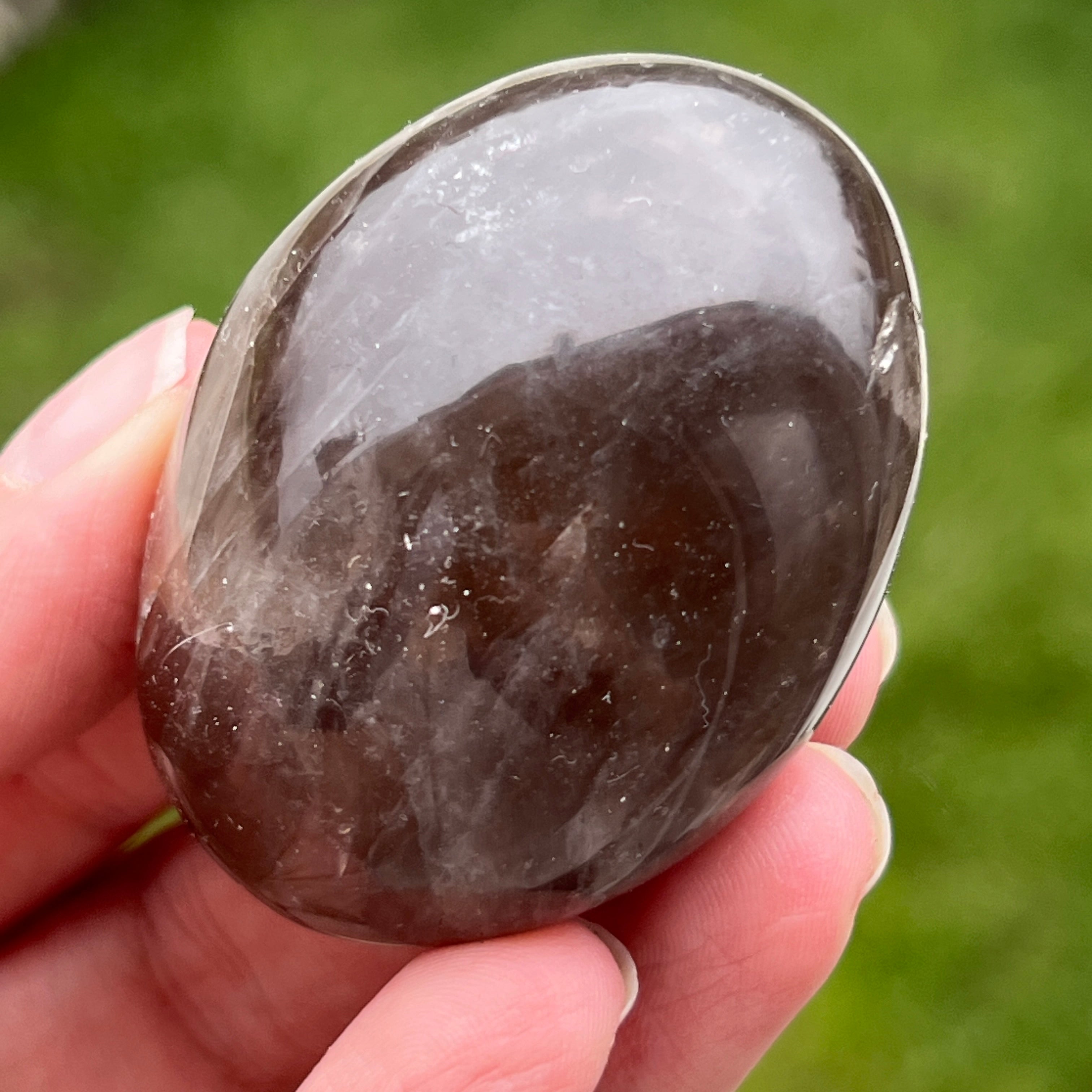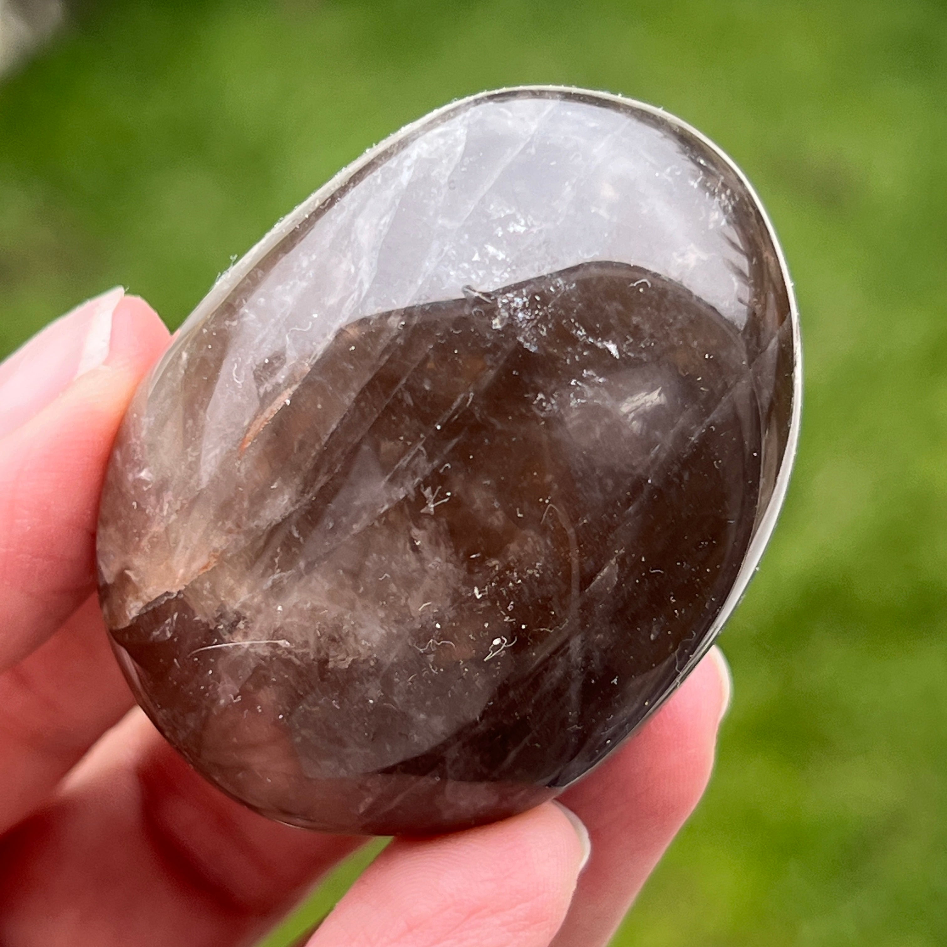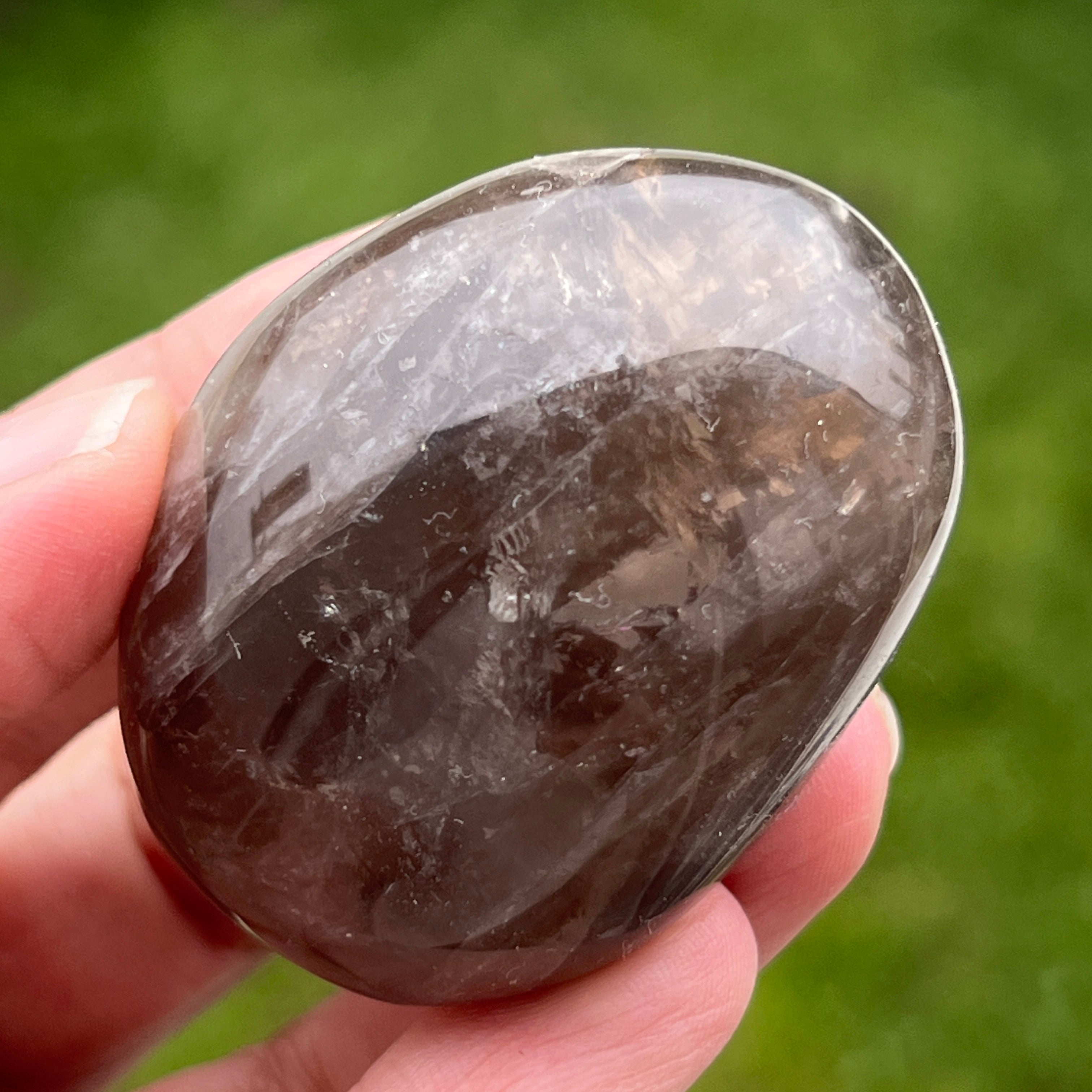 Modelat cu grijă pentru a se potrivi perfect în palmă, acest palmstone din cuarț fumuriu nu este doar o piatră – este un punct de sprijin în mijlocul agitației cotidiene. Cu nuanțele sale pământii, de la translucid brun până la tonuri mai adânci, cuarțul fumuriu poartă în el liniștea stâncilor vechi și răbdarea munților.