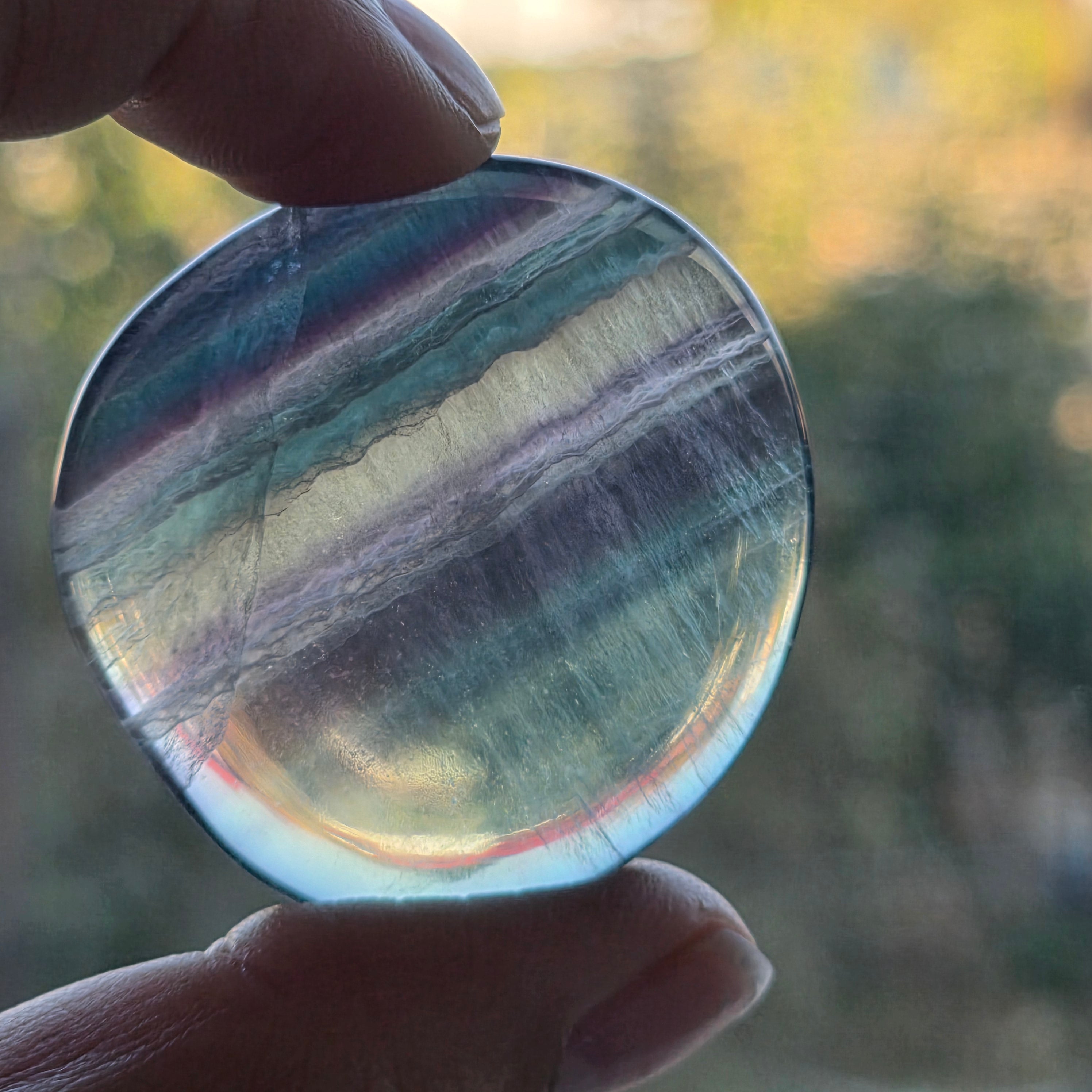 Fluoritul curcubeu este cunoscut ca o piatră de armonie și echilibru, deoarece combină energiile diferitelor culori într-o singură piatră. Fiecare culoare din structura fluoritului curcubeu aduce beneficii distincte: