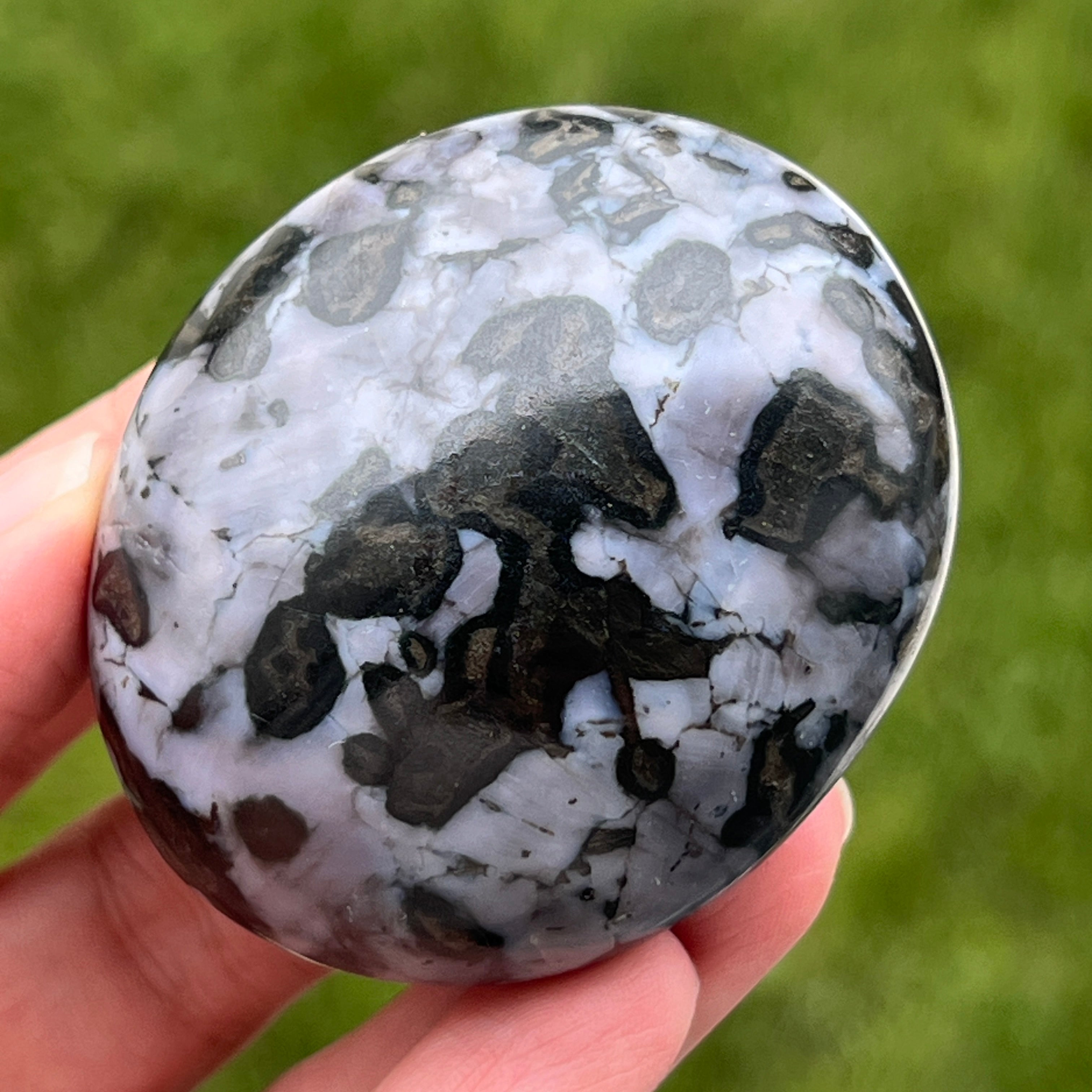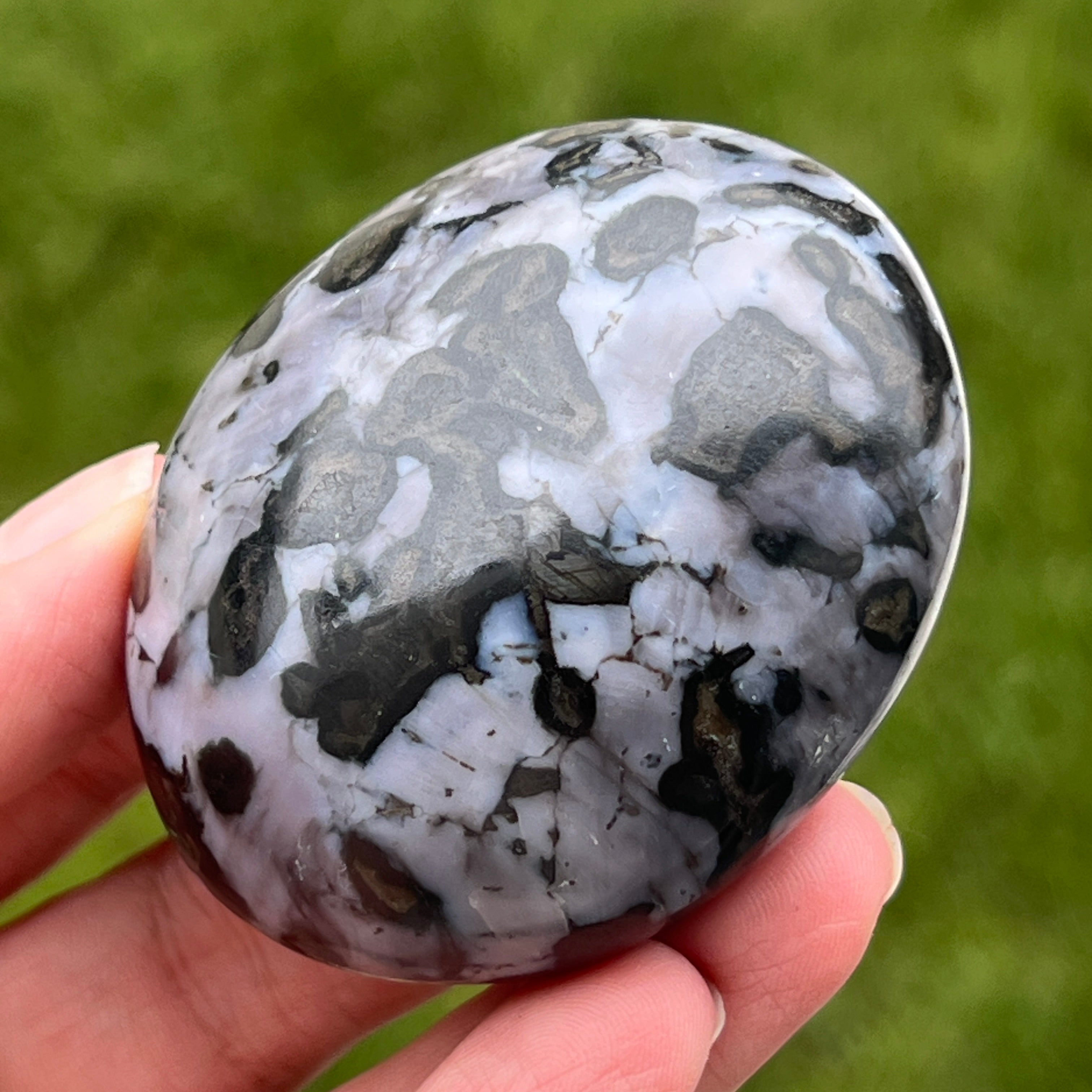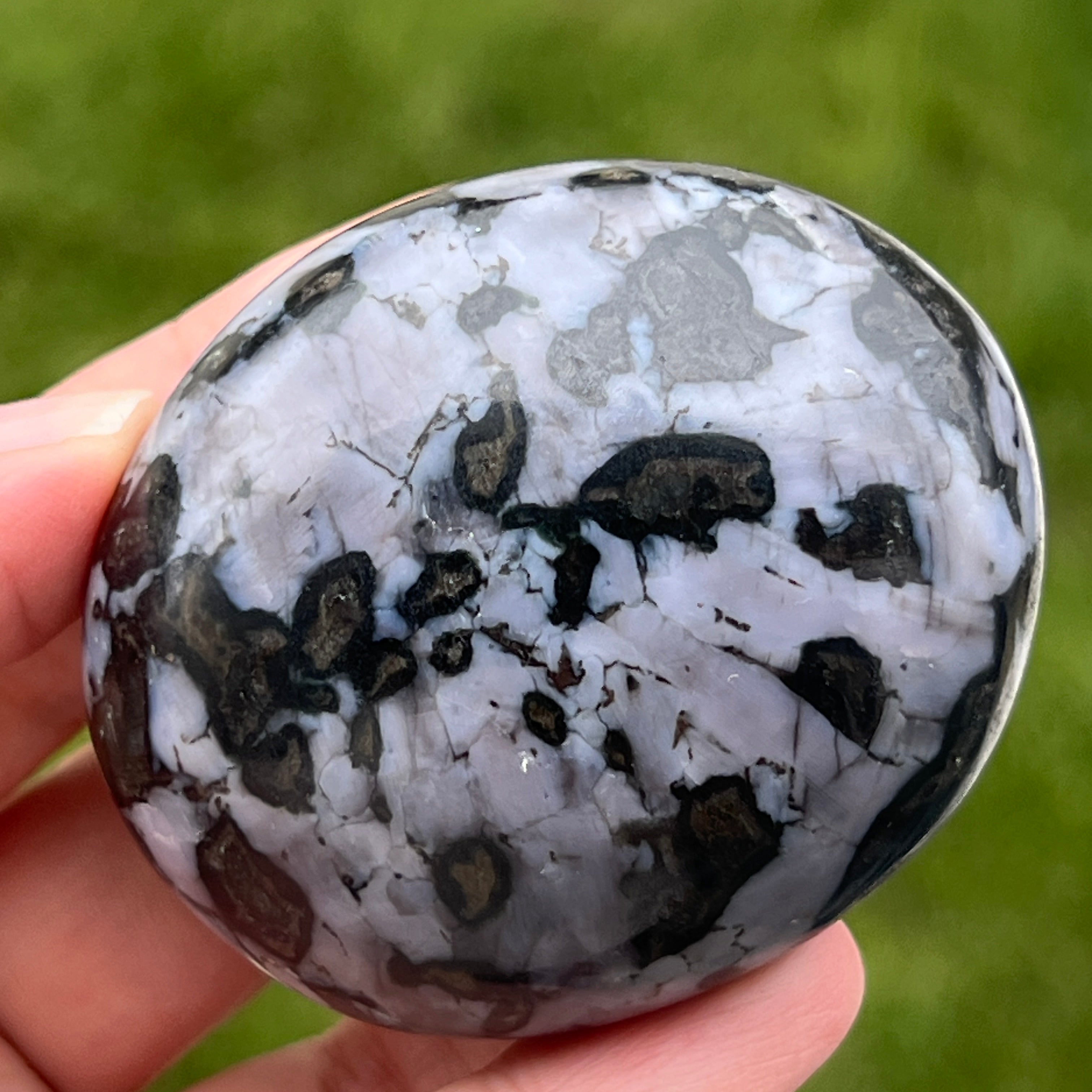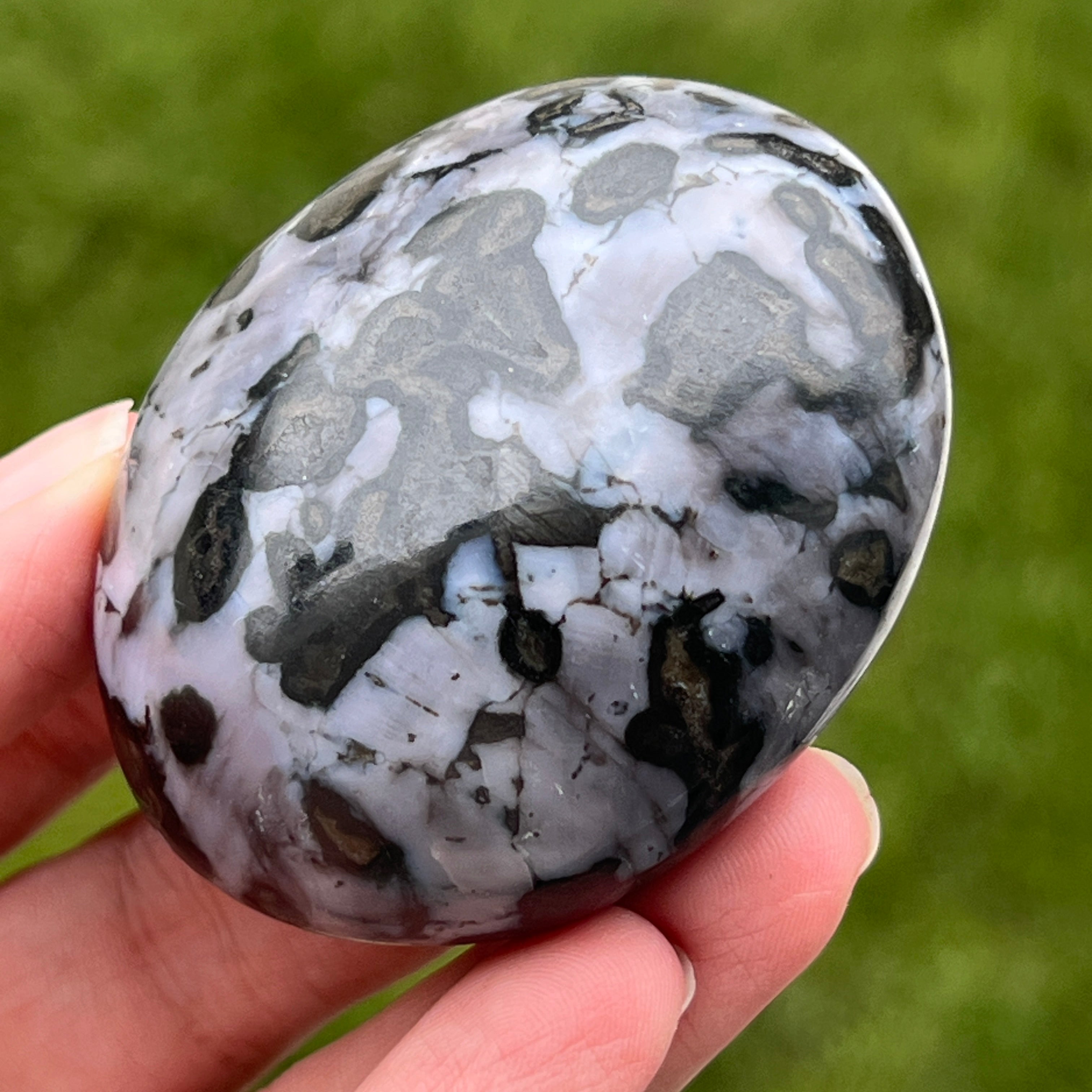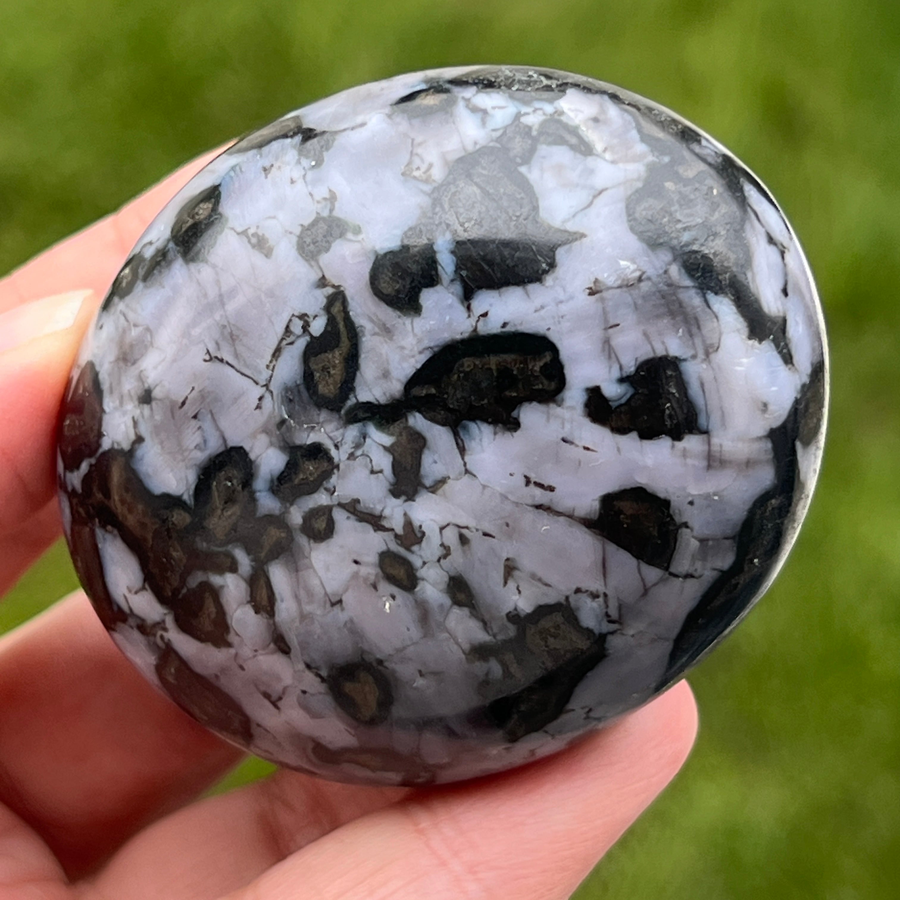 Merlinitul este o piatră semiprețioasă rară și fascinantă, recunoscută pentru combinația sa de culori contrastante, alb și negru, care îi oferă un aspect unic. Este considerată o varietate de opal dendritic sau o combinație de cuarț și alte minerale, iar structura sa complexă îl face să fie apreciat atât pentru frumusețea sa, cât și pentru presupusele proprietăți energetice. Merlinitul este cunoscut în lumea cristaloterapiei pentru energiile sale mistice și asocierea cu intuiția, clarviziunea și cunoașterea spirituală.