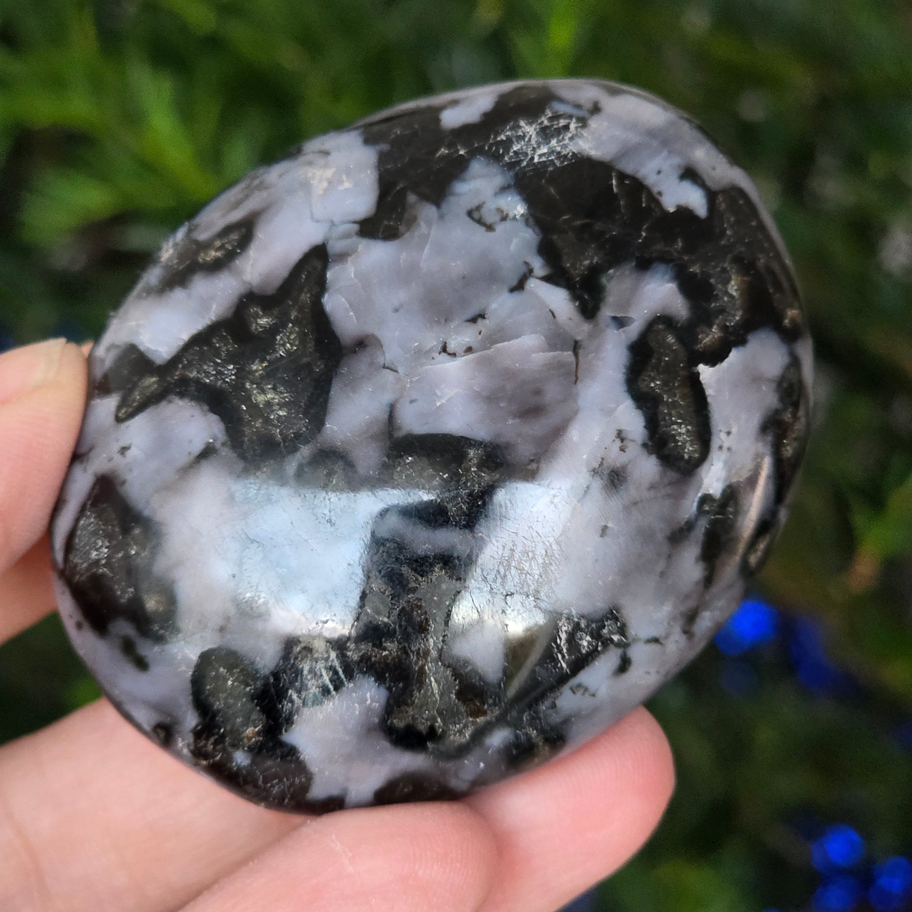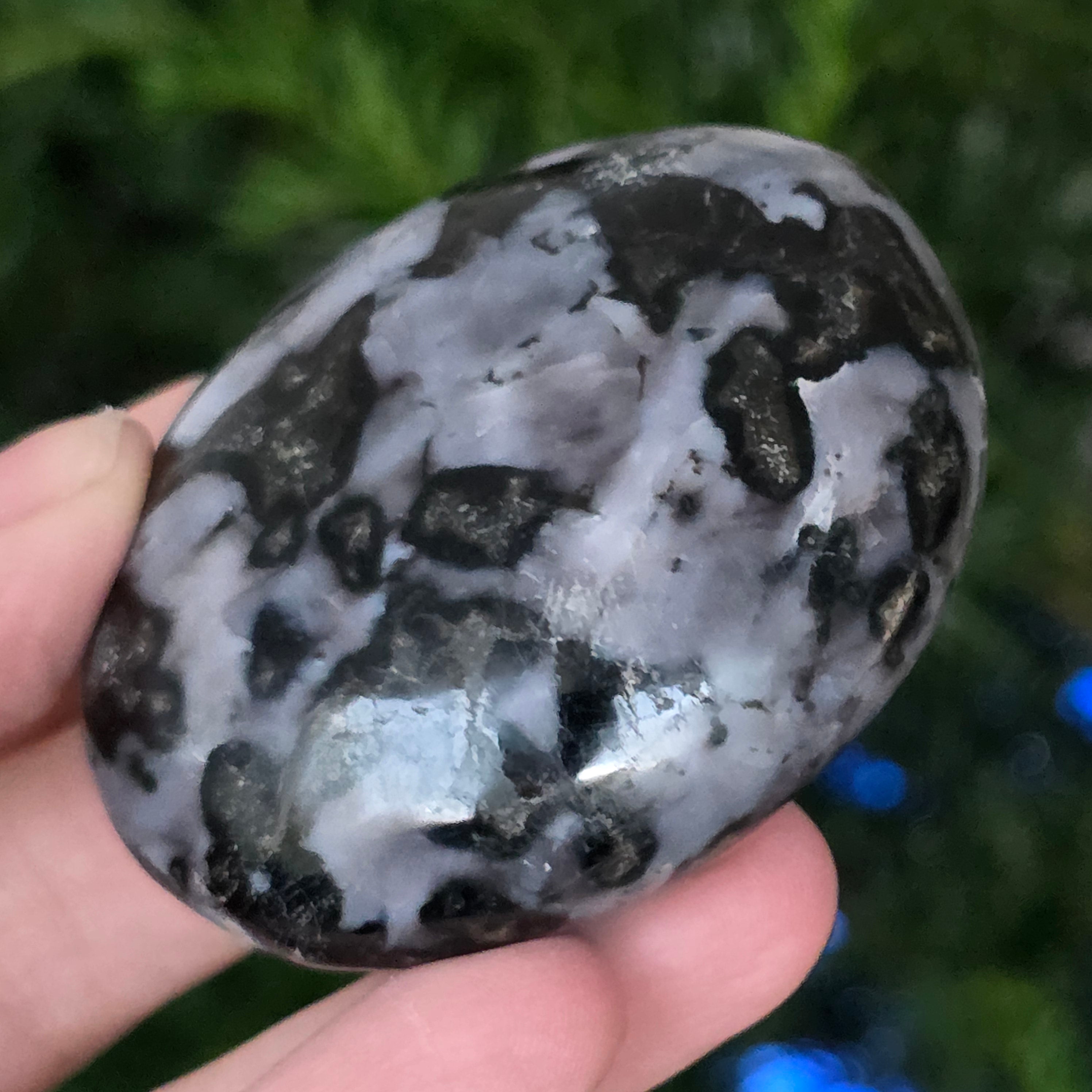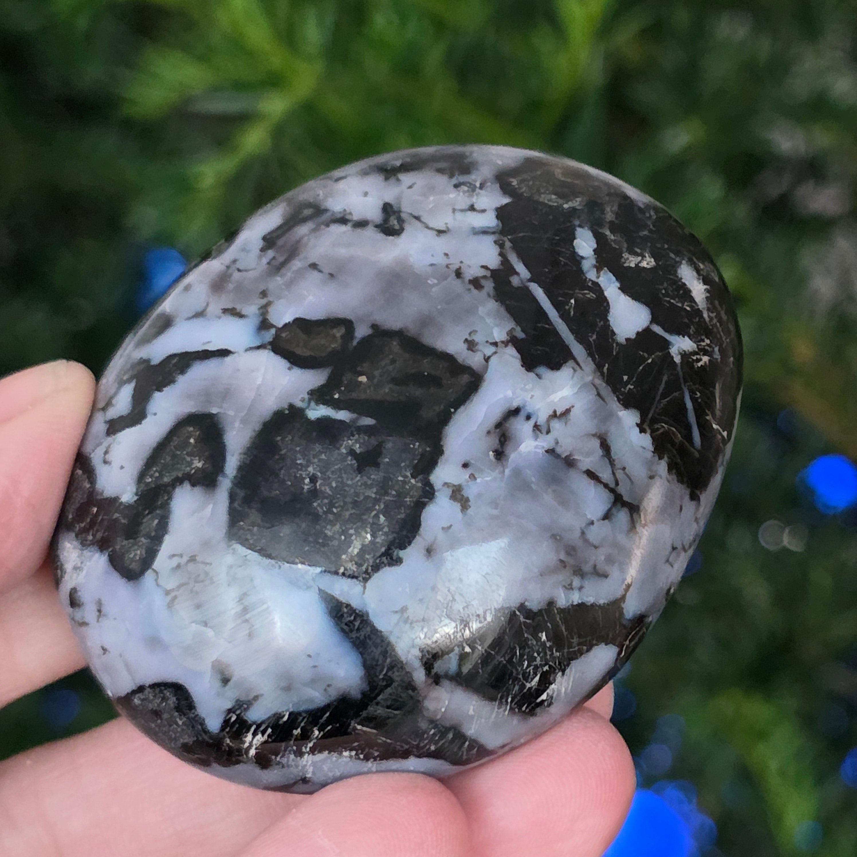 Merlinitul este o piatră semiprețioasă rară și fascinantă, recunoscută pentru combinația sa de culori contrastante, alb și negru, care îi oferă un aspect unic. Este considerată o varietate de opal dendritic sau o combinație de cuarț și alte minerale, iar structura sa complexă îl face să fie apreciat atât pentru frumusețea sa, cât și pentru presupusele proprietăți energetice. Merlinitul este cunoscut în lumea cristaloterapiei pentru energiile sale mistice și asocierea cu intuiția, clarviziunea și cunoașterea spirituală.