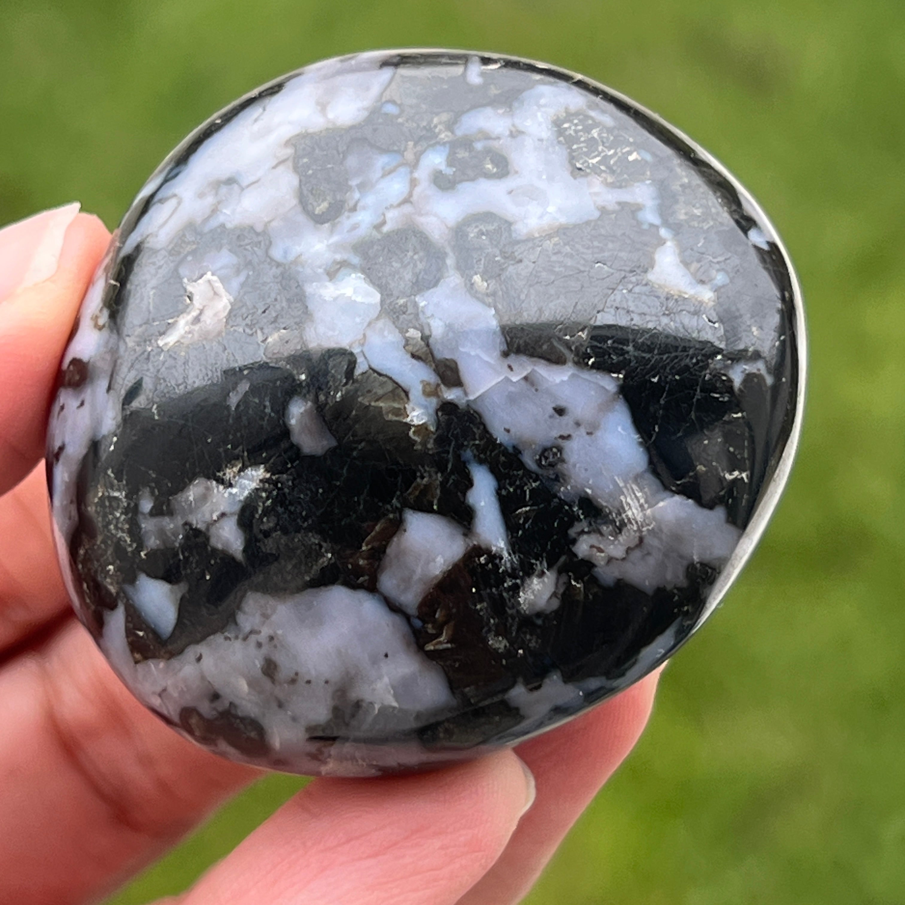 Merlinitul este o piatră semiprețioasă rară și fascinantă, recunoscută pentru combinația sa de culori contrastante, alb și negru, care îi oferă un aspect unic. Este considerată o varietate de opal dendritic sau o combinație de cuarț și alte minerale, iar structura sa complexă îl face să fie apreciat atât pentru frumusețea sa, cât și pentru presupusele proprietăți energetice. Merlinitul este cunoscut în lumea cristaloterapiei pentru energiile sale mistice și asocierea cu intuiția, clarviziunea și cunoașterea spirituală.