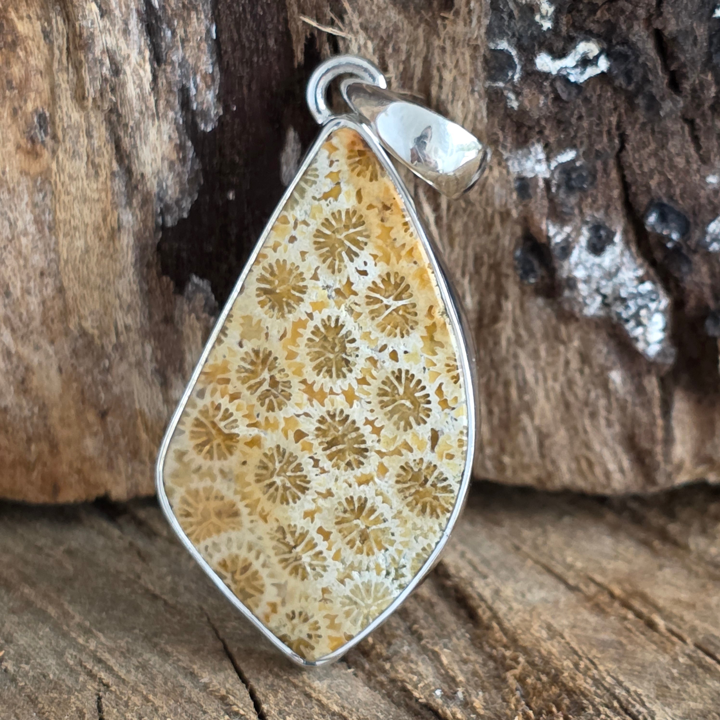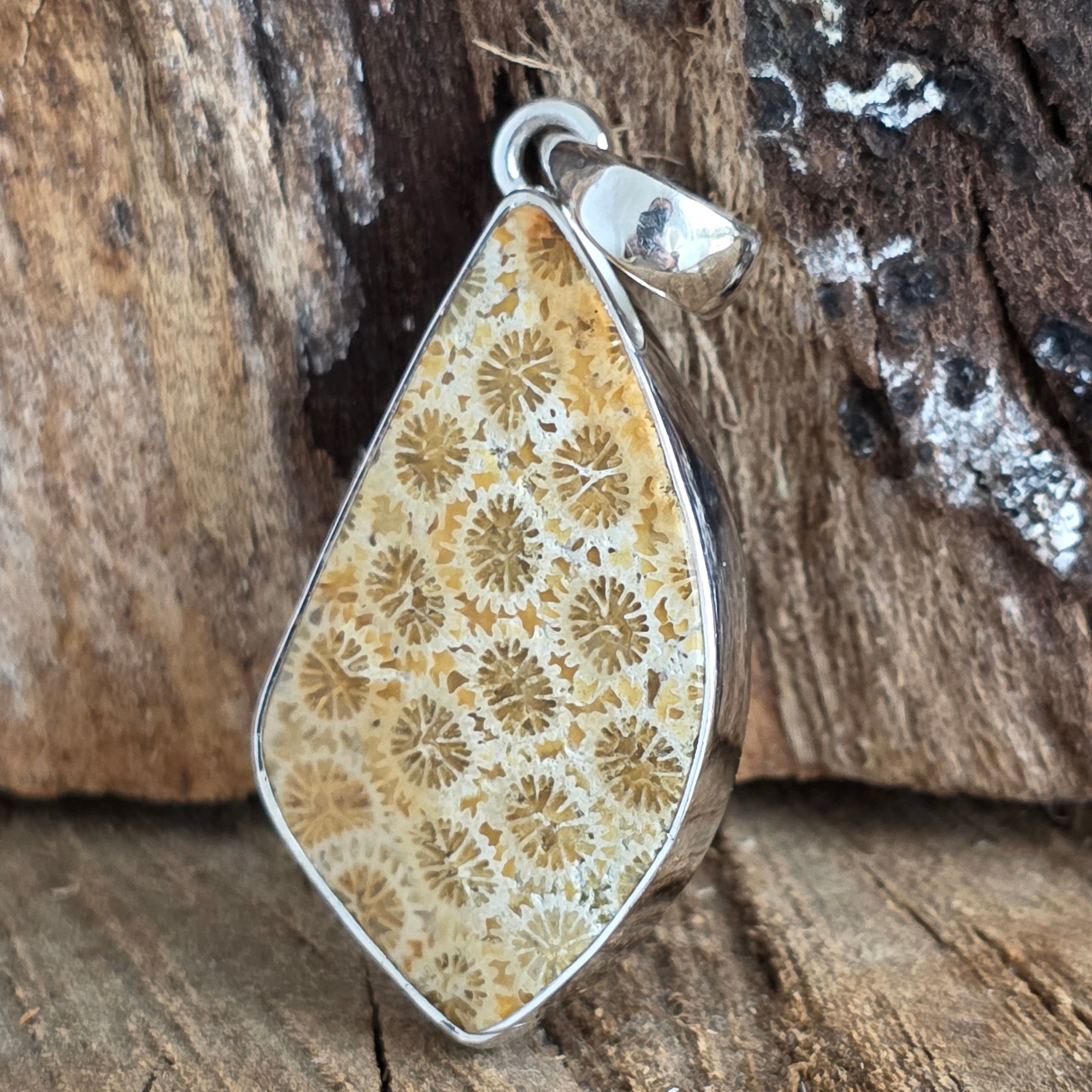 Descriere - Pandantiv coral fosilizat din argint | Model 2